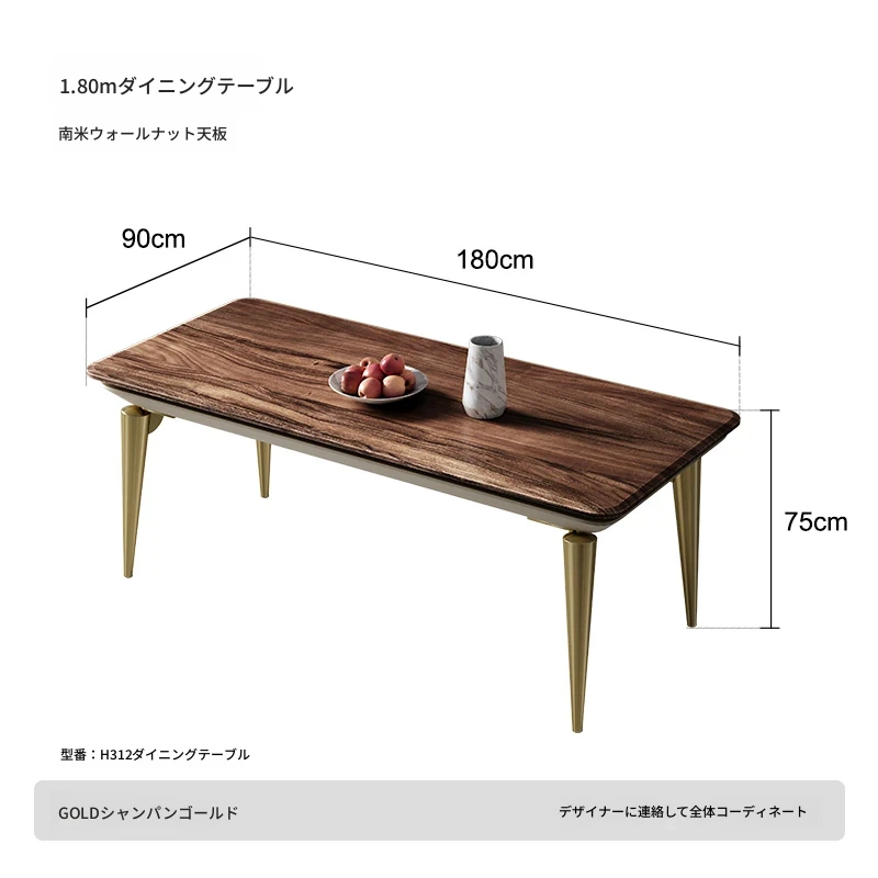ダイニングテーブル/1.8M/南米クルミの木/シャンパンゴールド