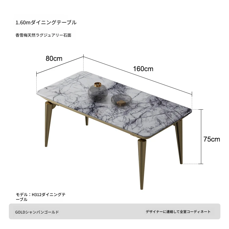 ダイニングテーブル/1.6M/香雪梅天然石/シャンパンゴールド