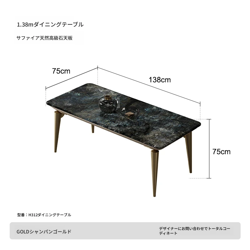 ダイニングテーブル/1.38M/サファイア天然豪石/シャンパンゴールド