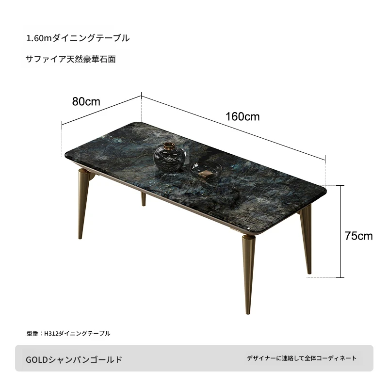 ダイニングテーブル/1.6M/サファイア天然豪石/シャンパンゴールド