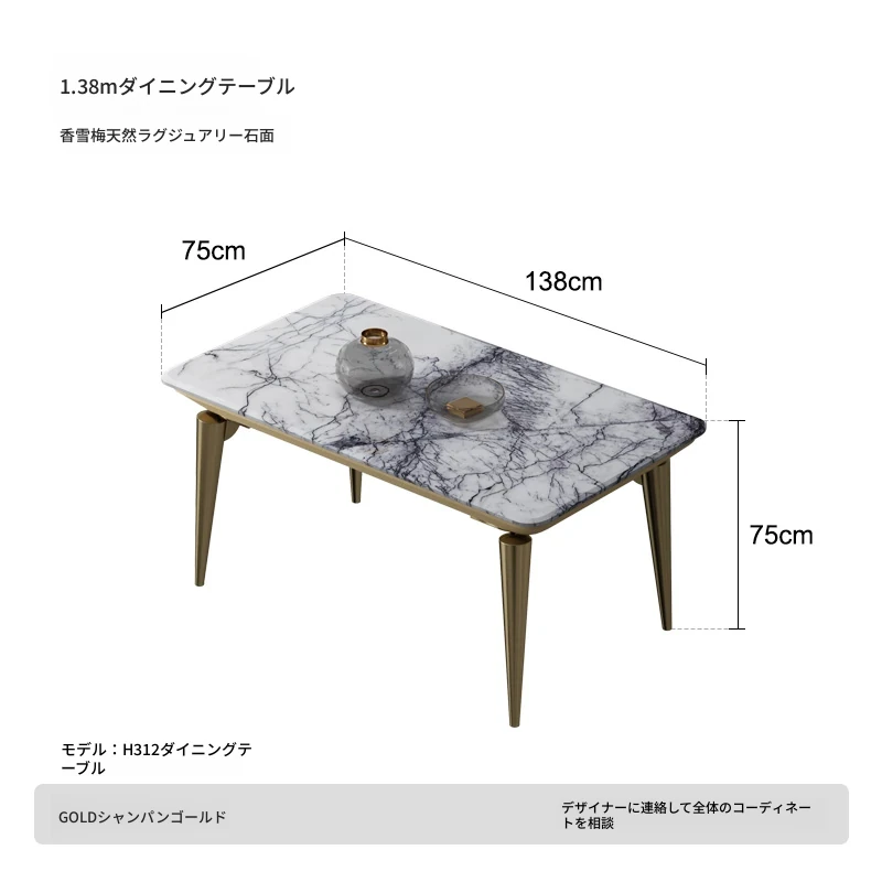 ダイニングテーブル/1.38M/香雪梅天然石/シャンパンゴールド