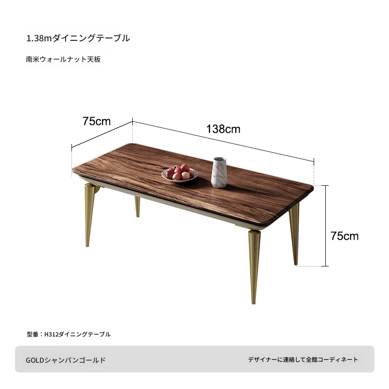 ダイニングテーブル/1.38M/南米クルミの木/シャンパンゴールド