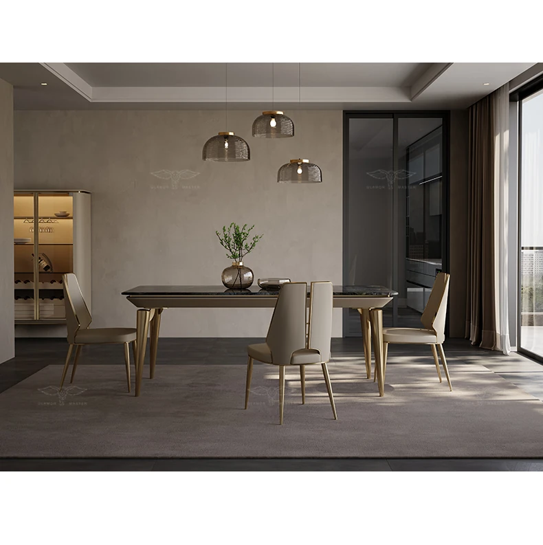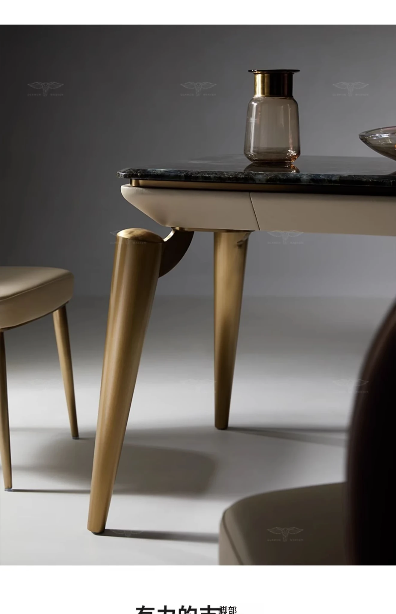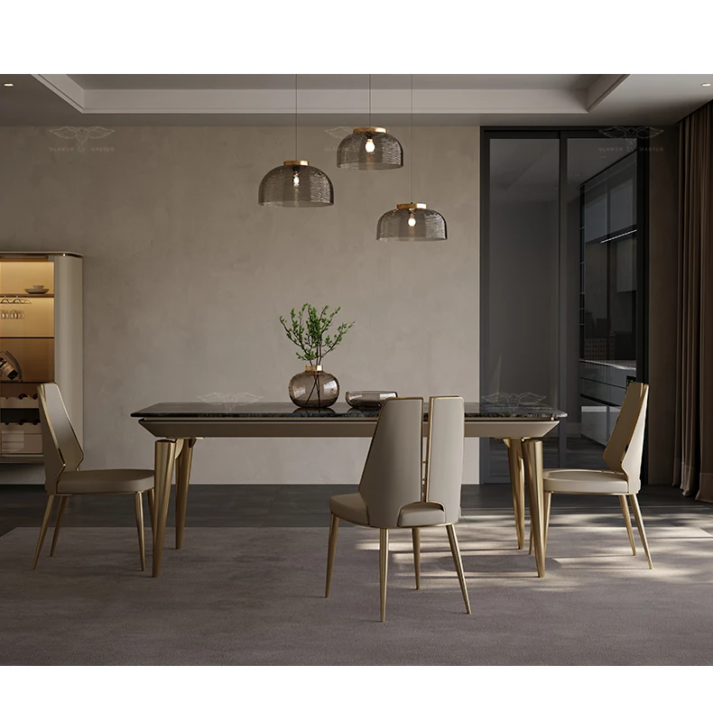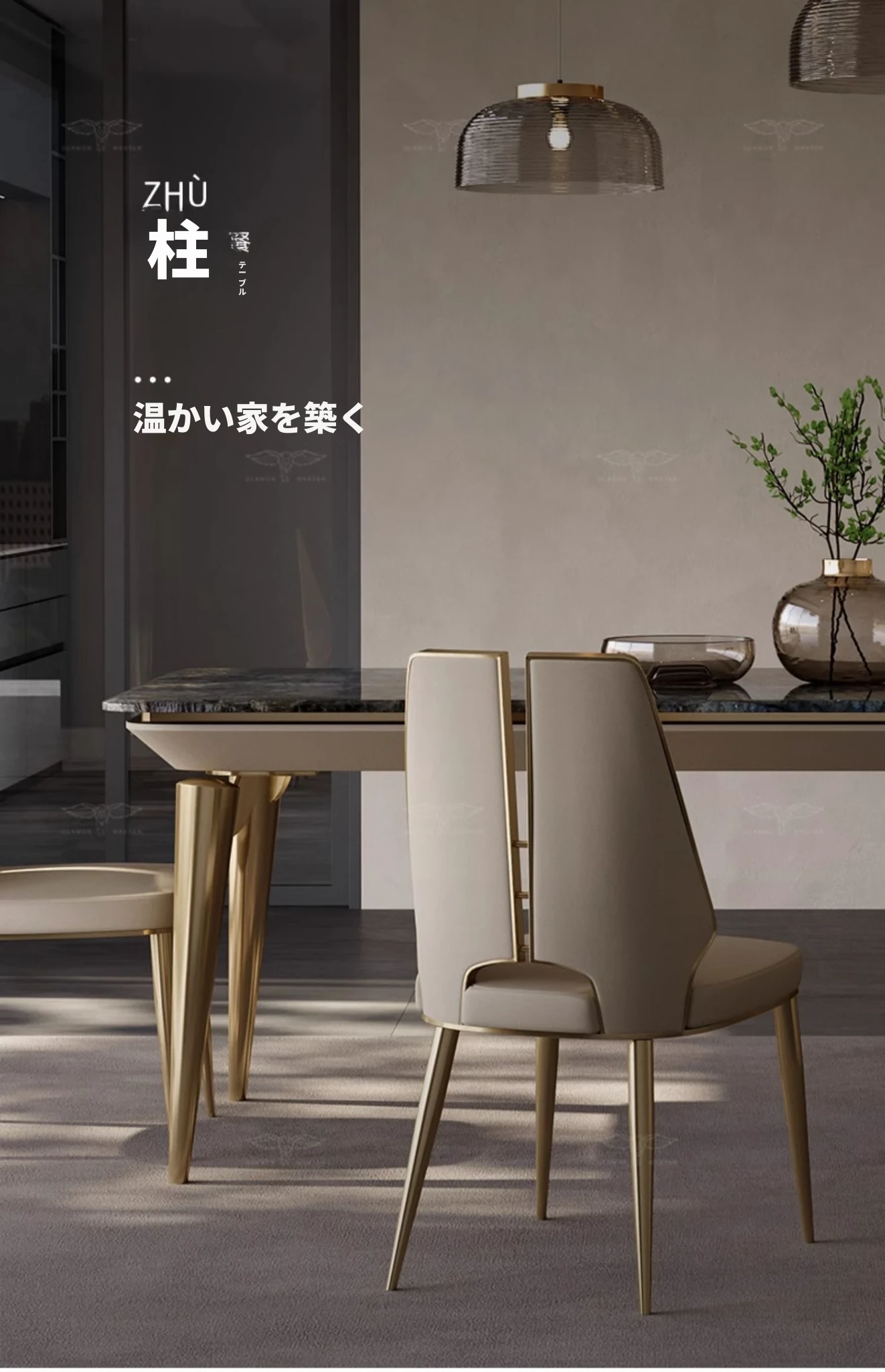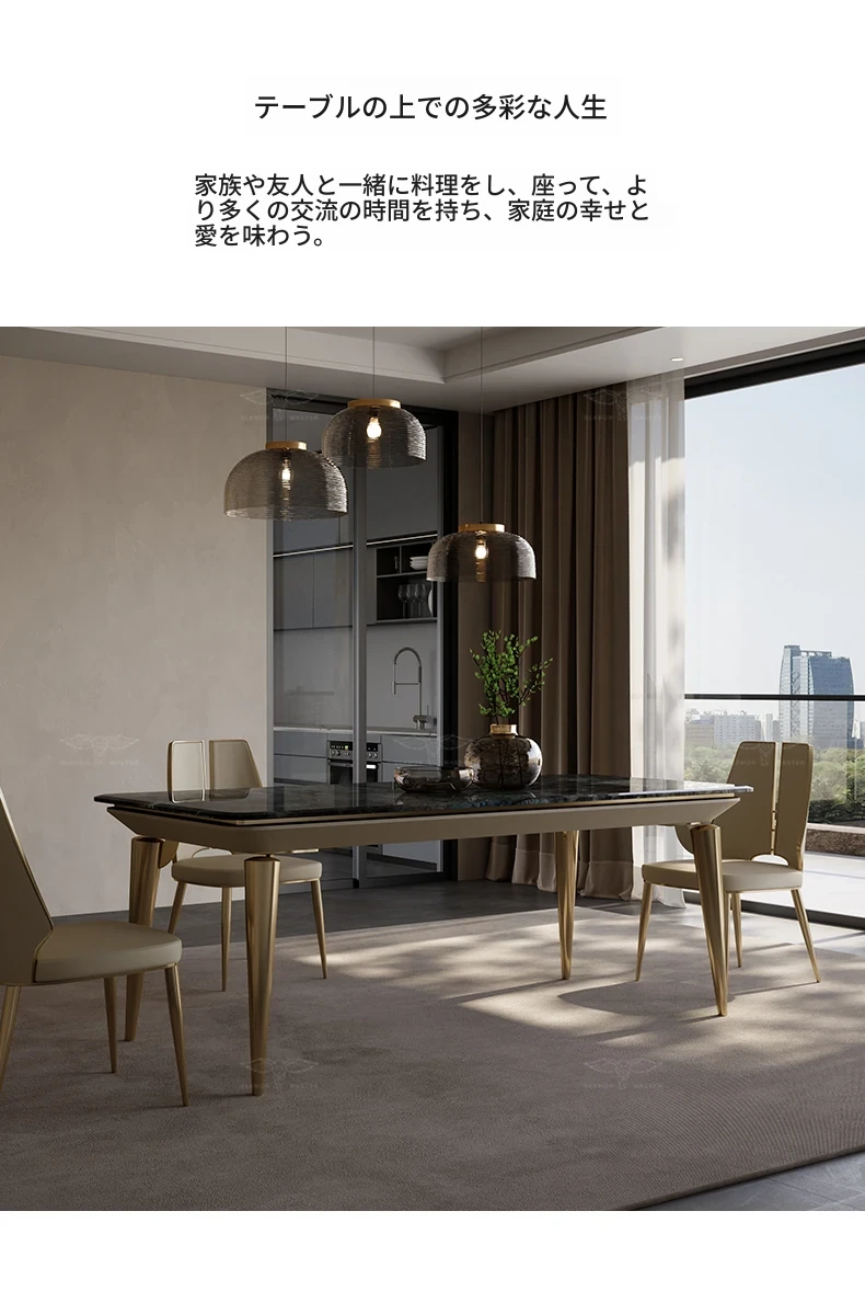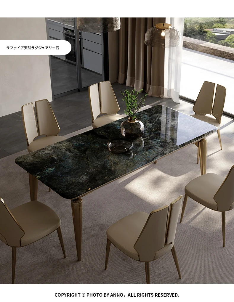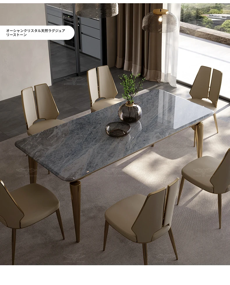 ダイニングテーブル/1.8M+H132超繊維レザーのダイニングチェア*6/サファイア天然豪石/シャンパンゴールド