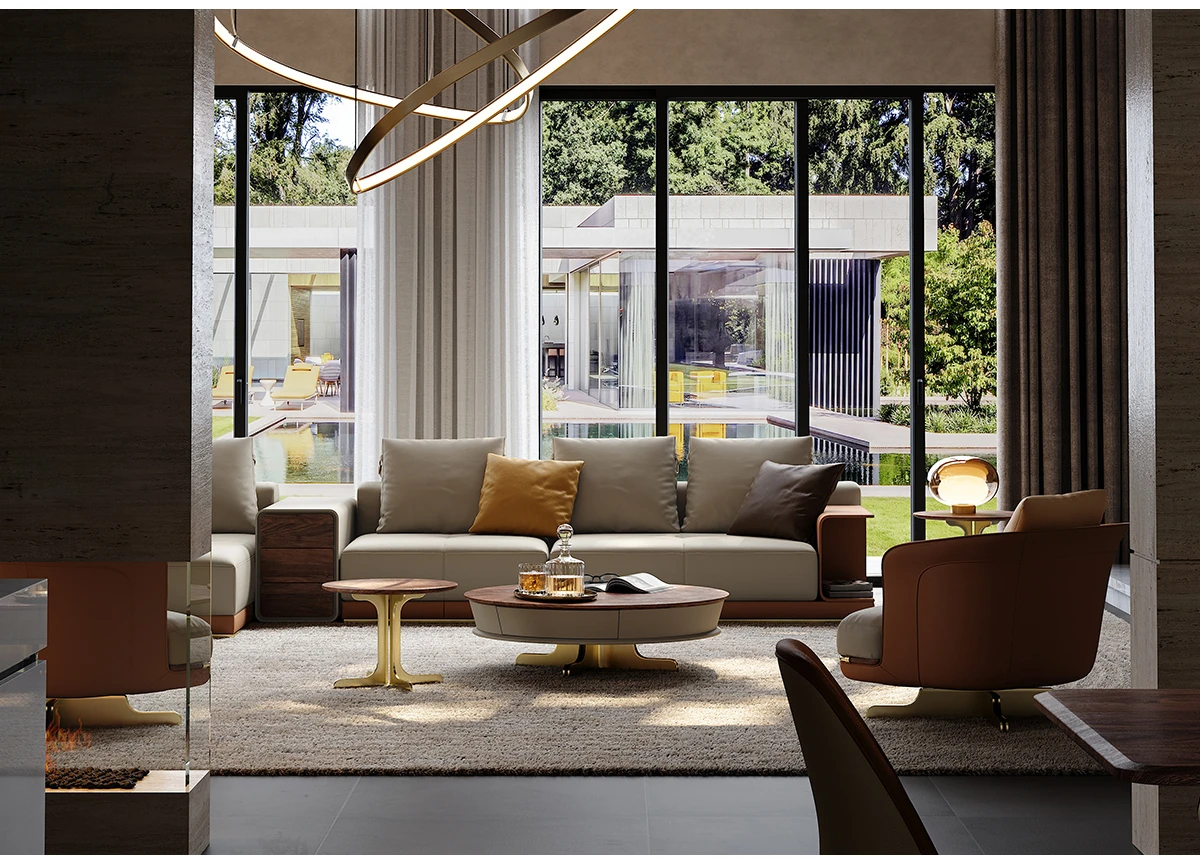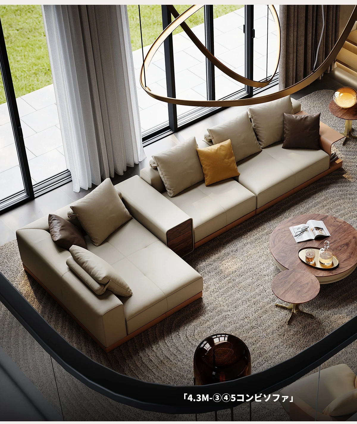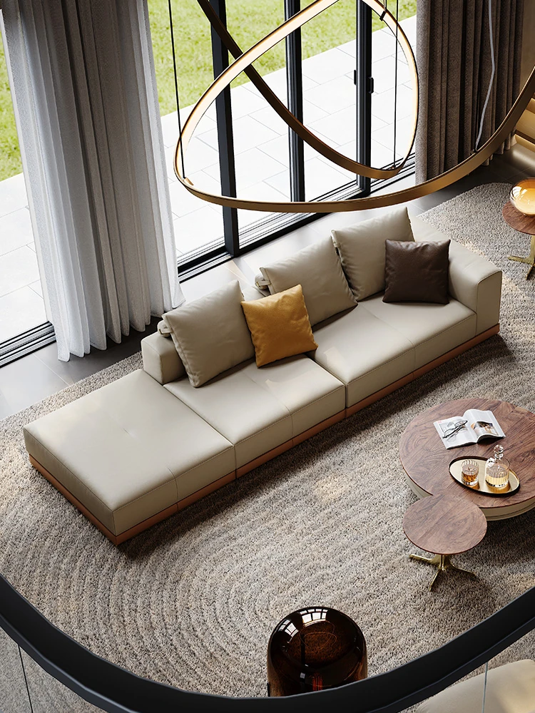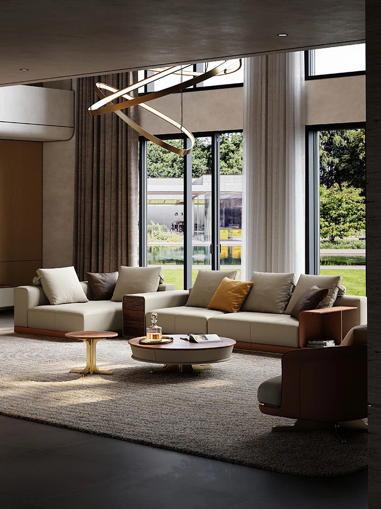 魅力溢れるイタリアンレザーソファ 豪華な別荘のリビングにぴったり!デザイナーによる現代的なラグジュアリーL字型ソファで、あなたの空間を一新します。