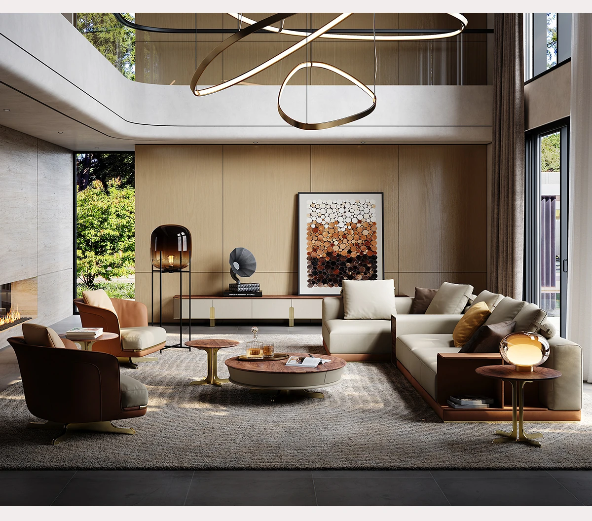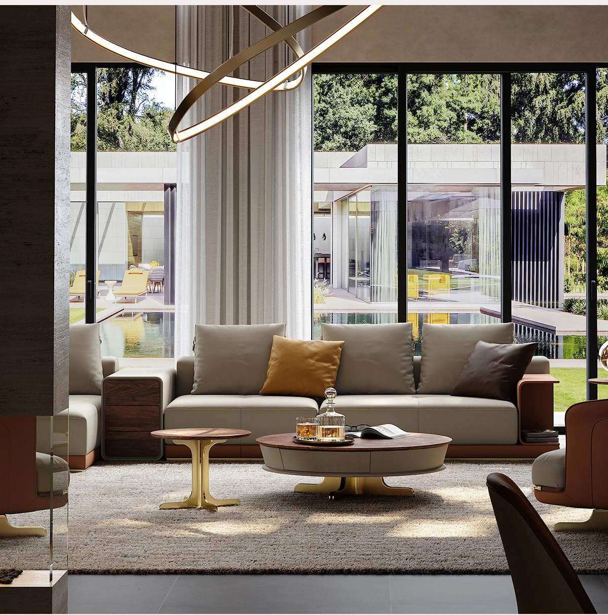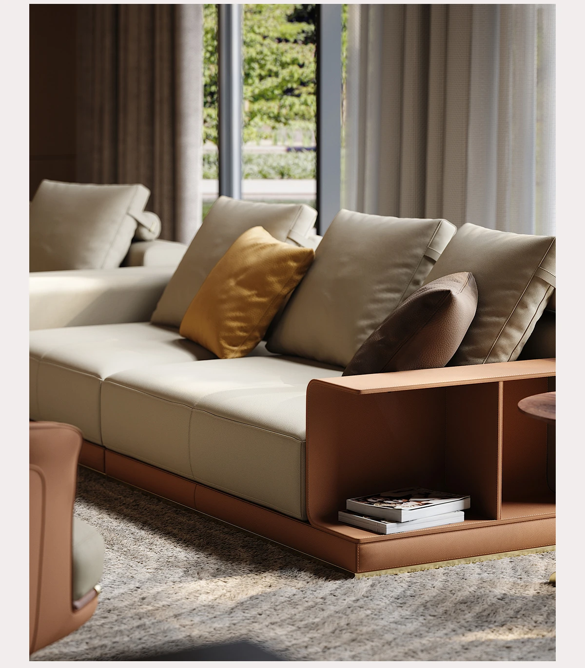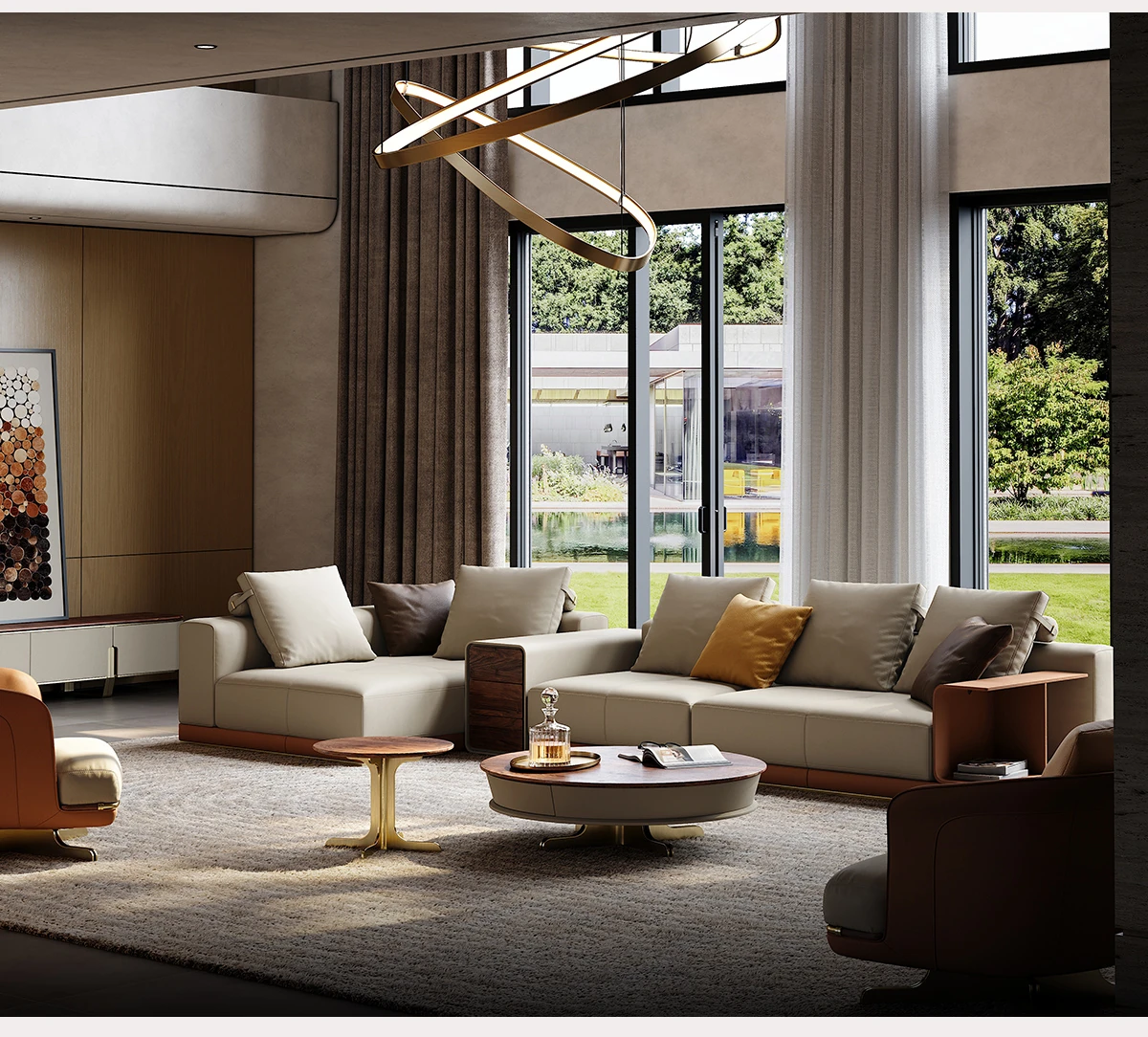 魅力溢れるイタリアンレザーソファ 豪華な別荘のリビングにぴったり!デザイナーによる現代的なラグジュアリーL字型ソファで、あなたの空間を一新します。