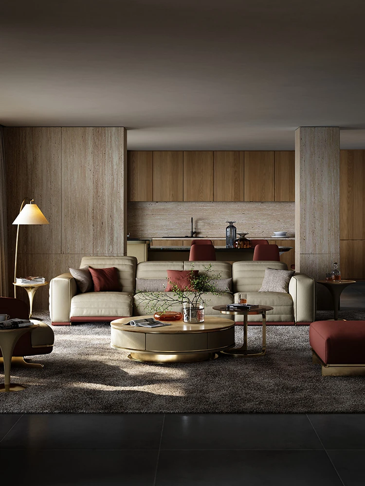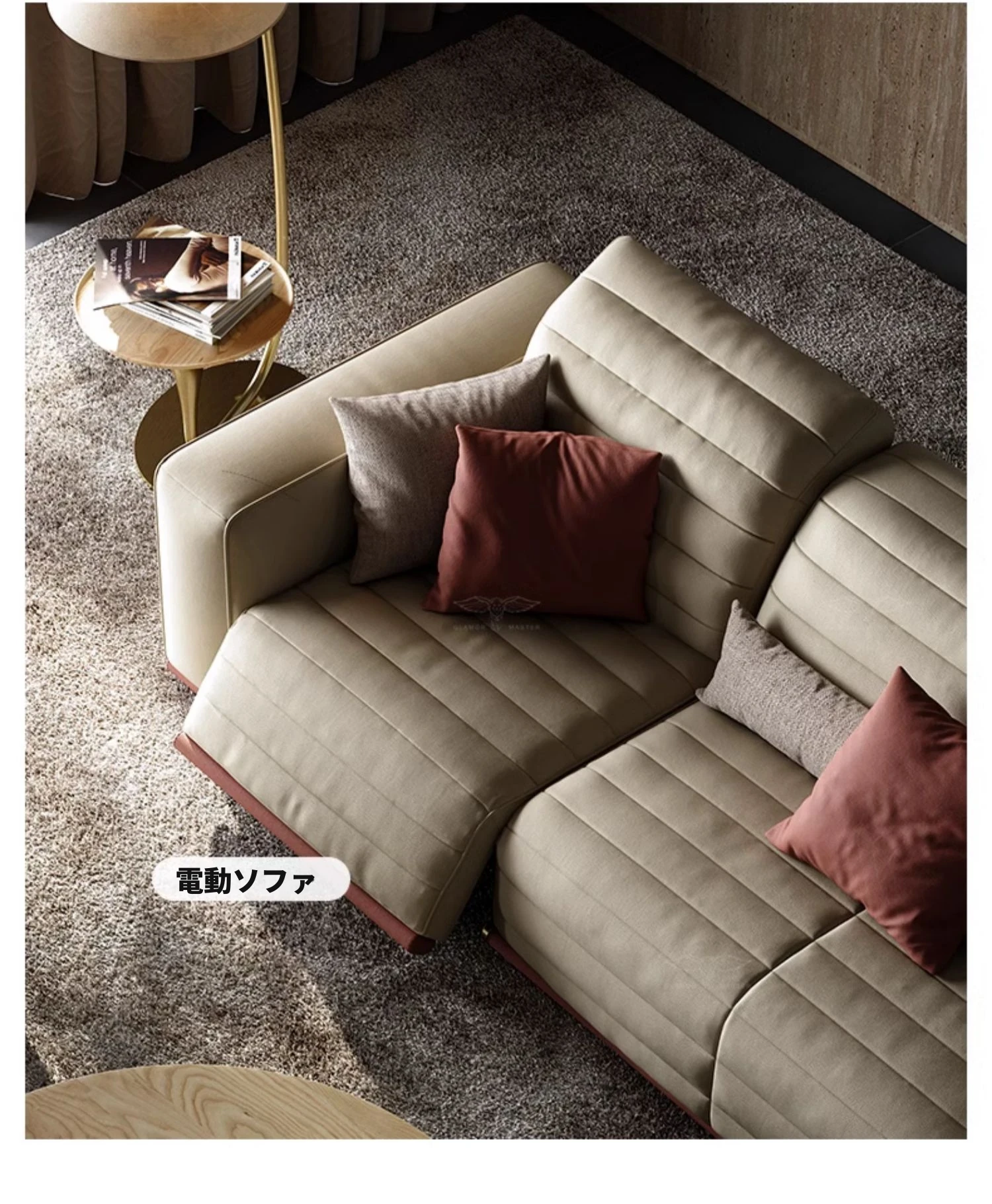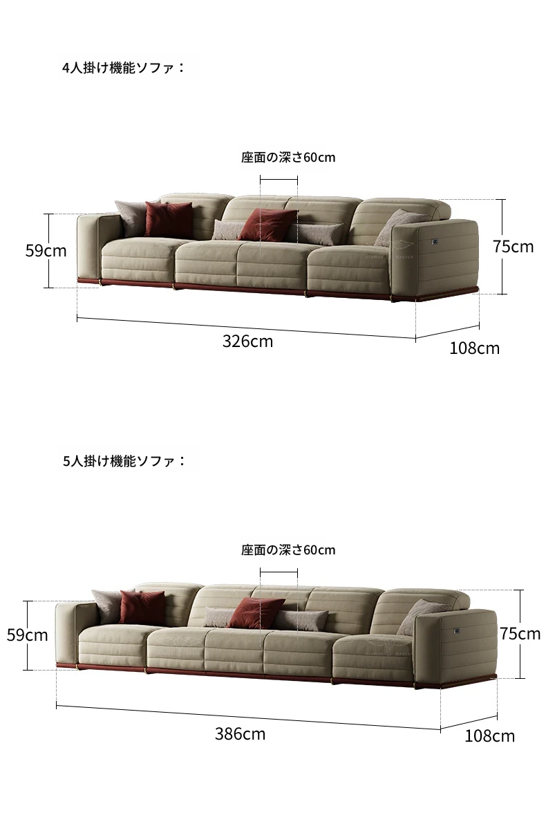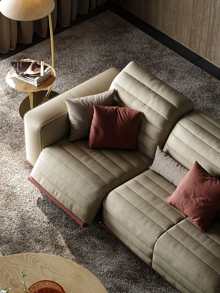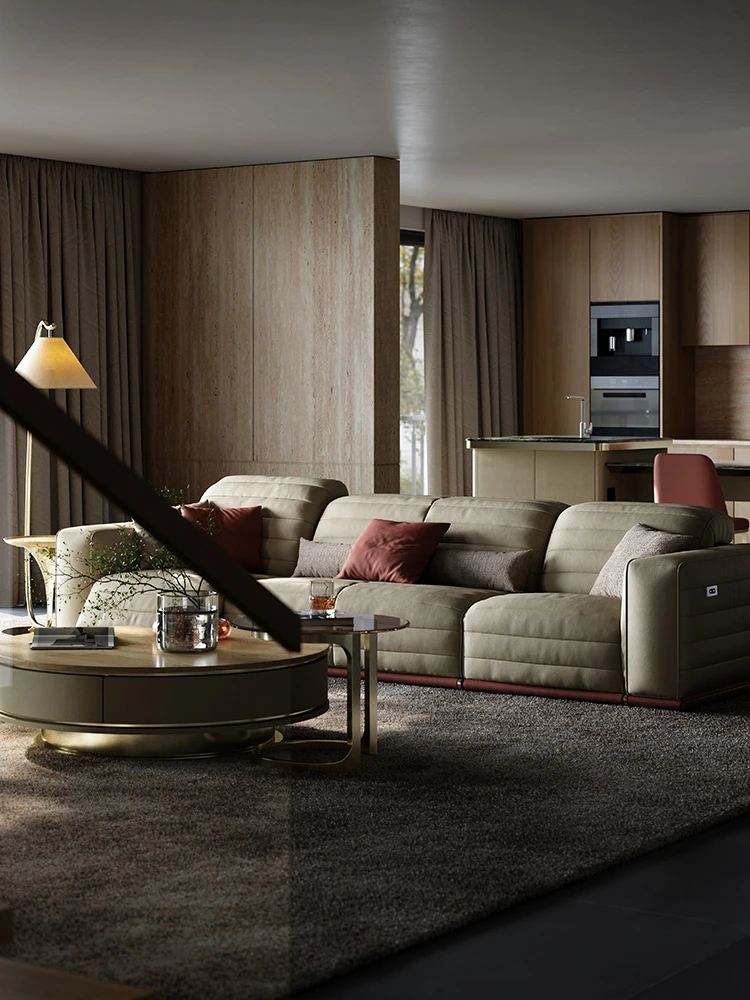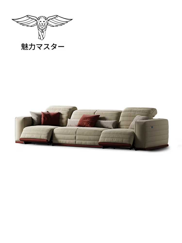 魅力のマスターホーム イタリアンラグジュアリー機能ソファ 豪華な別荘リビングにぴったりなミニマルデザインの電動機能付き本革ソファ