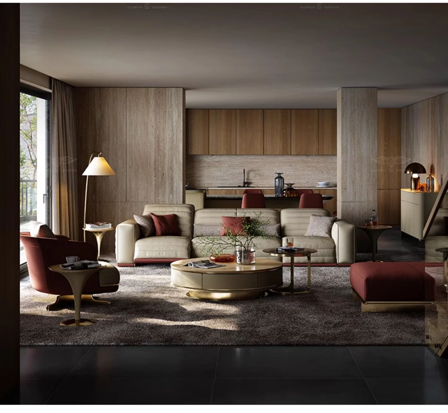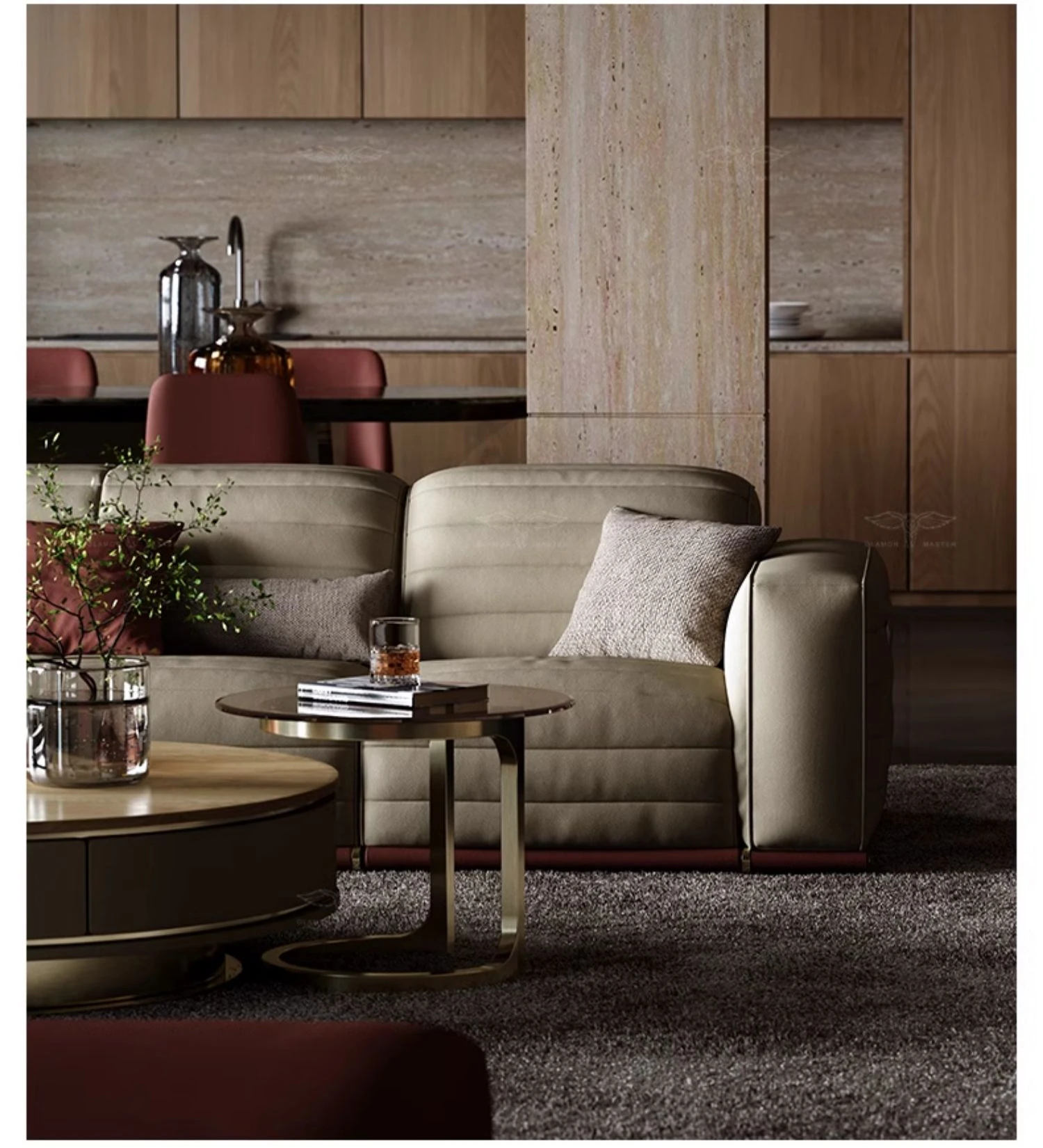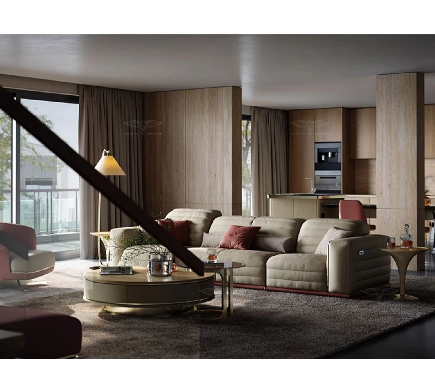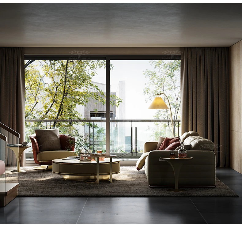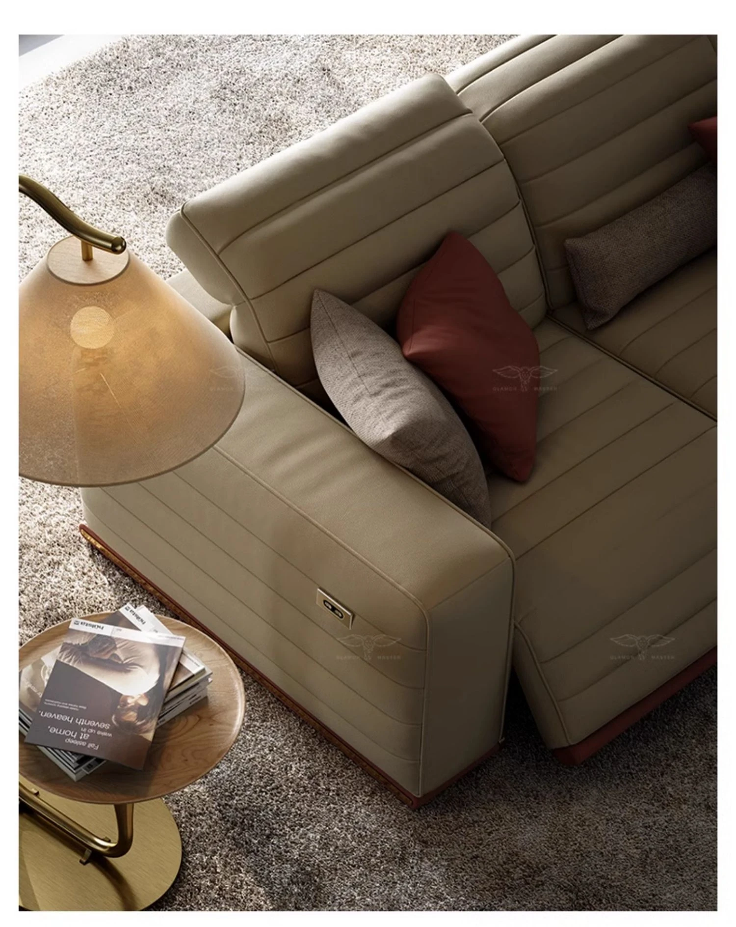 魅力のマスターホーム イタリアンラグジュアリー機能ソファ 豪華な別荘リビングにぴったりなミニマルデザインの電動機能付き本革ソファ