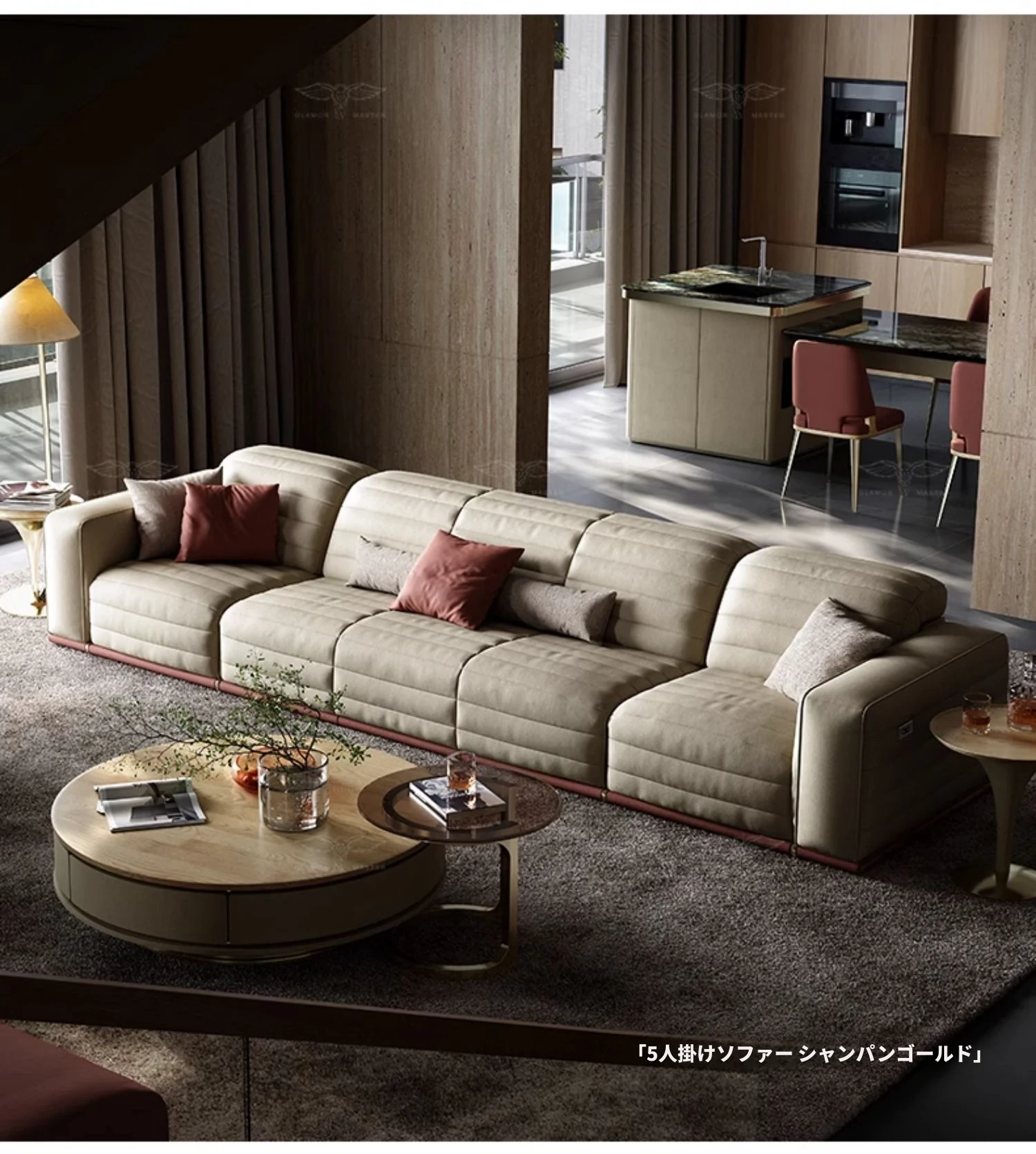 機能ソファ/五人掛け/S級本革/シャンパンゴールド