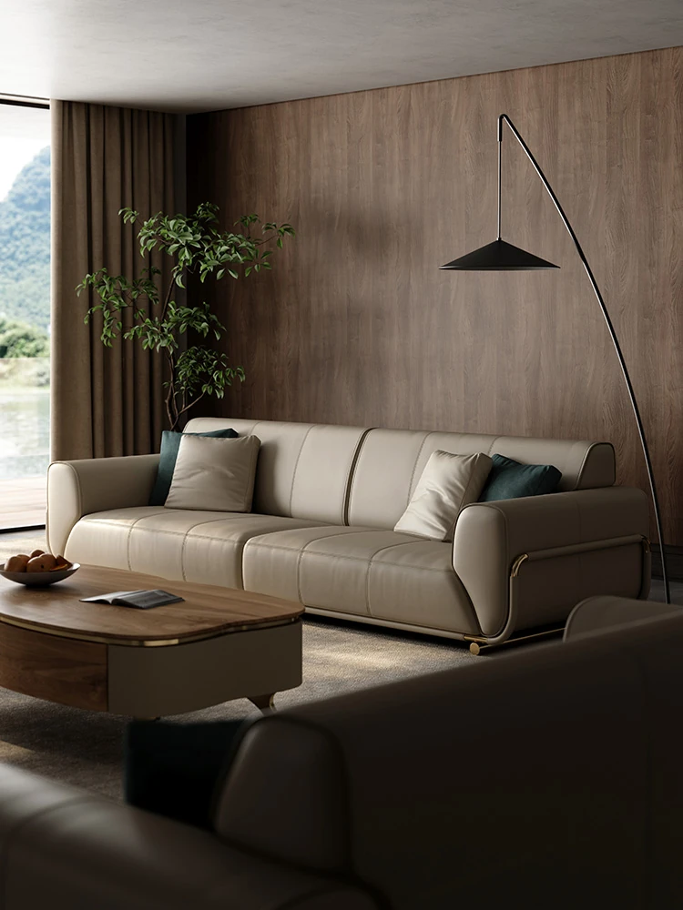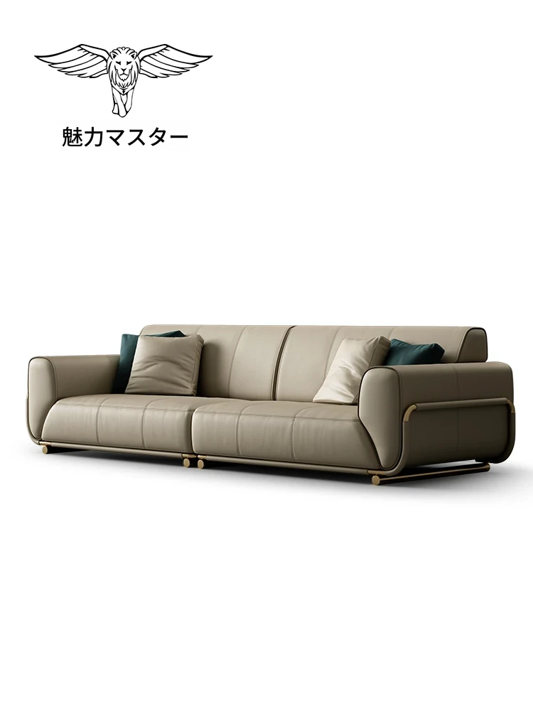 魅力マスター イタリアン本革ラグジュアリーリビング用直置きソファ4人掛け モダンなライトラグジュアリーグレースソファで、上質なひとときをお楽しみください!