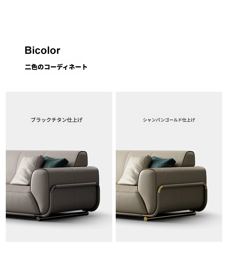Graceソファ2人掛け190cm/Sランク半革ソファ/シャンパンゴールド