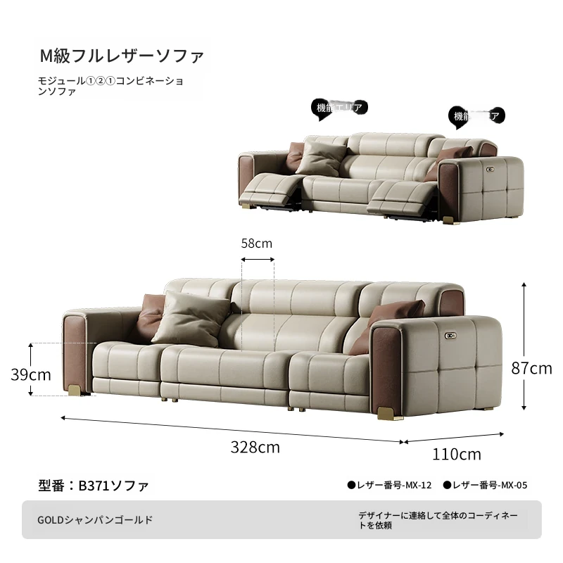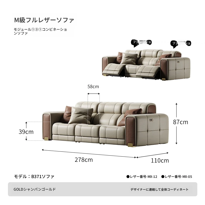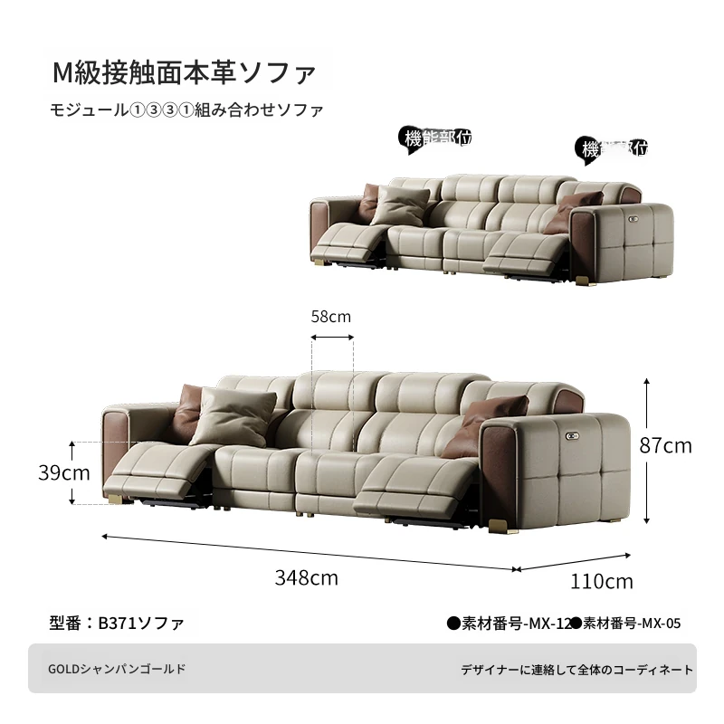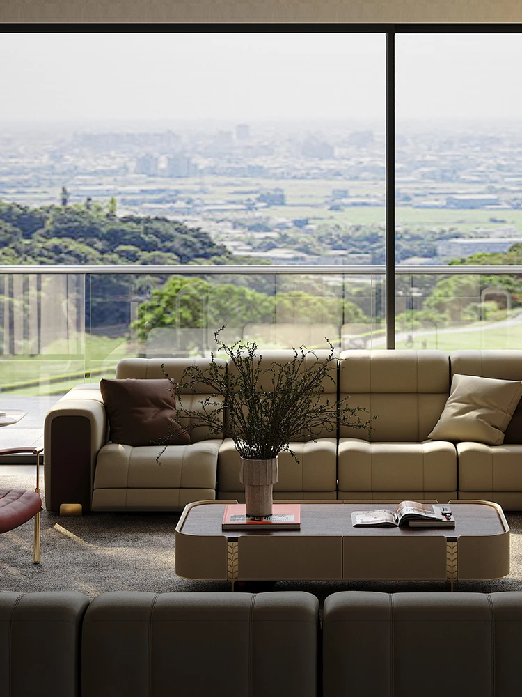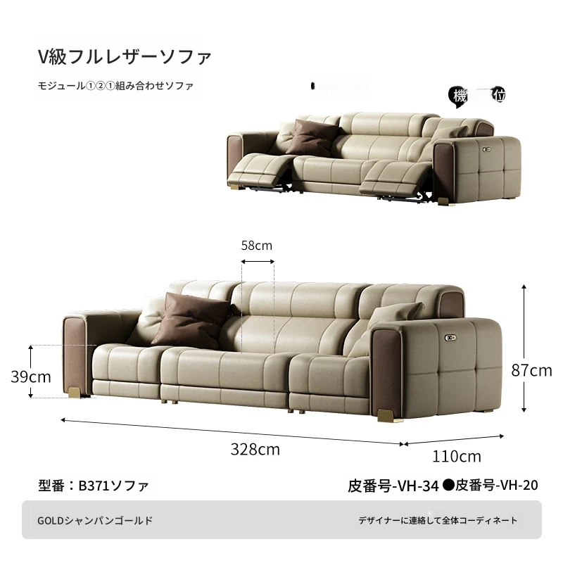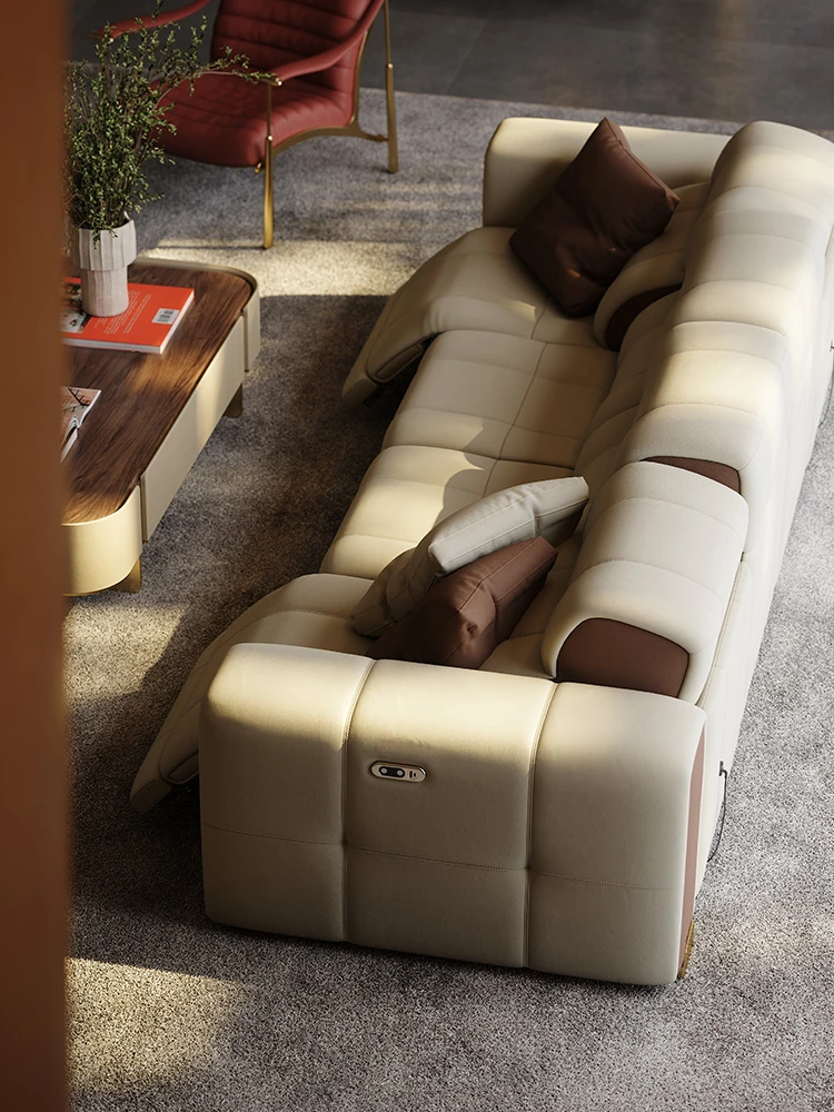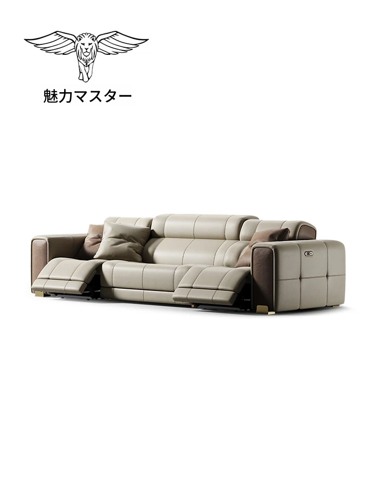 魅力のマスタースターインタースペースソファー!壁に寄せない豪華なヴィラのリビングルームにぴったりの本革ソファ。ラグジュアリーな直排電動ソファで、心地よいひとときをお楽しみください!