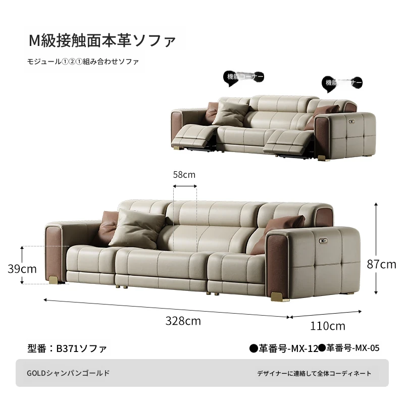 機能ソファ/①②①コンビネーション328cm/M級全真皮