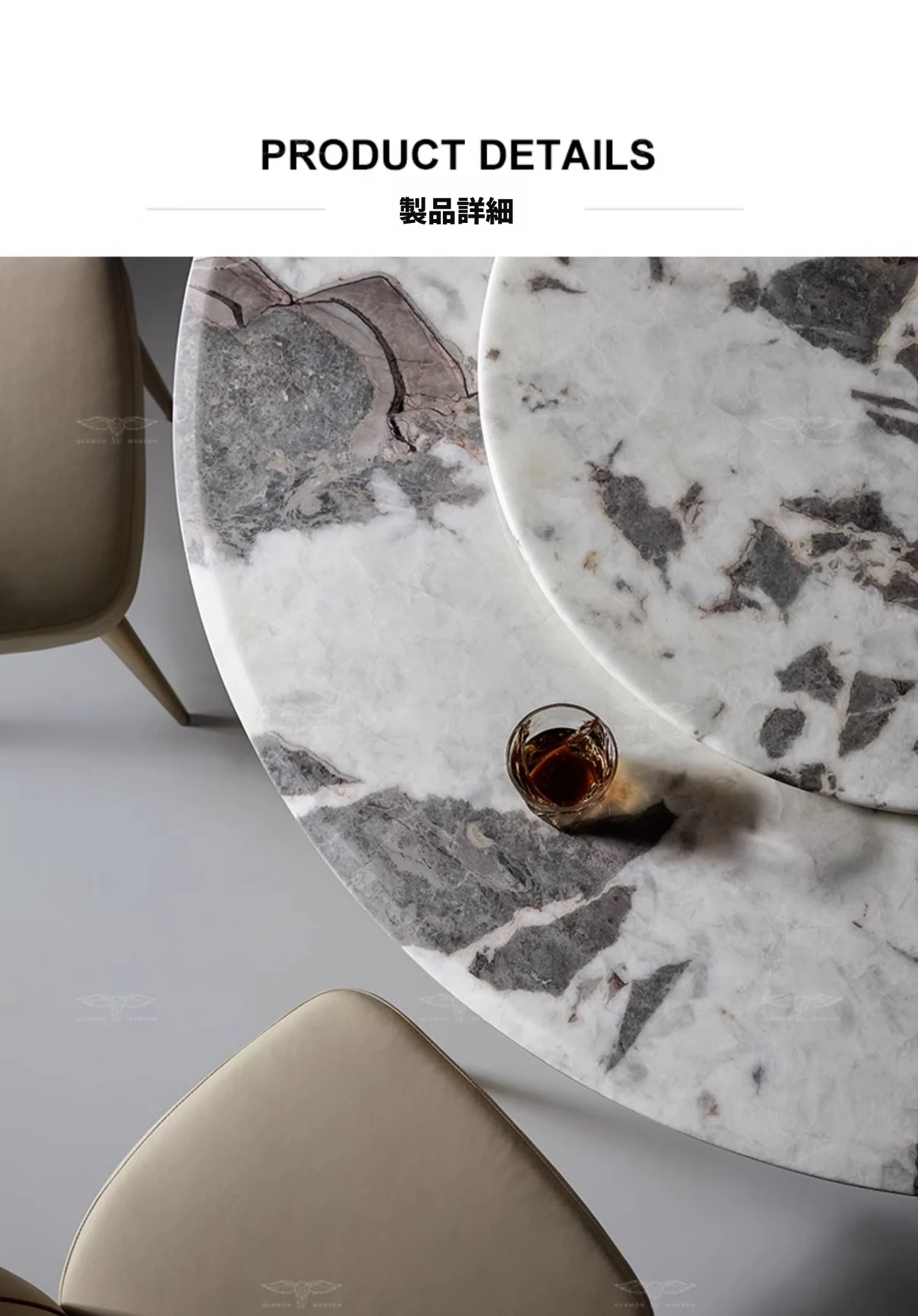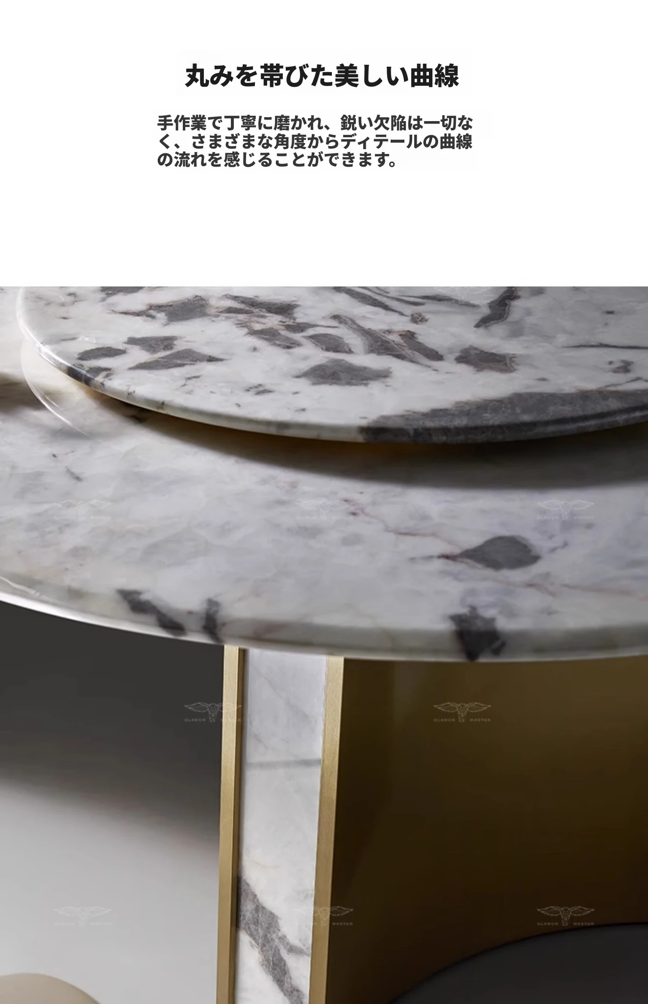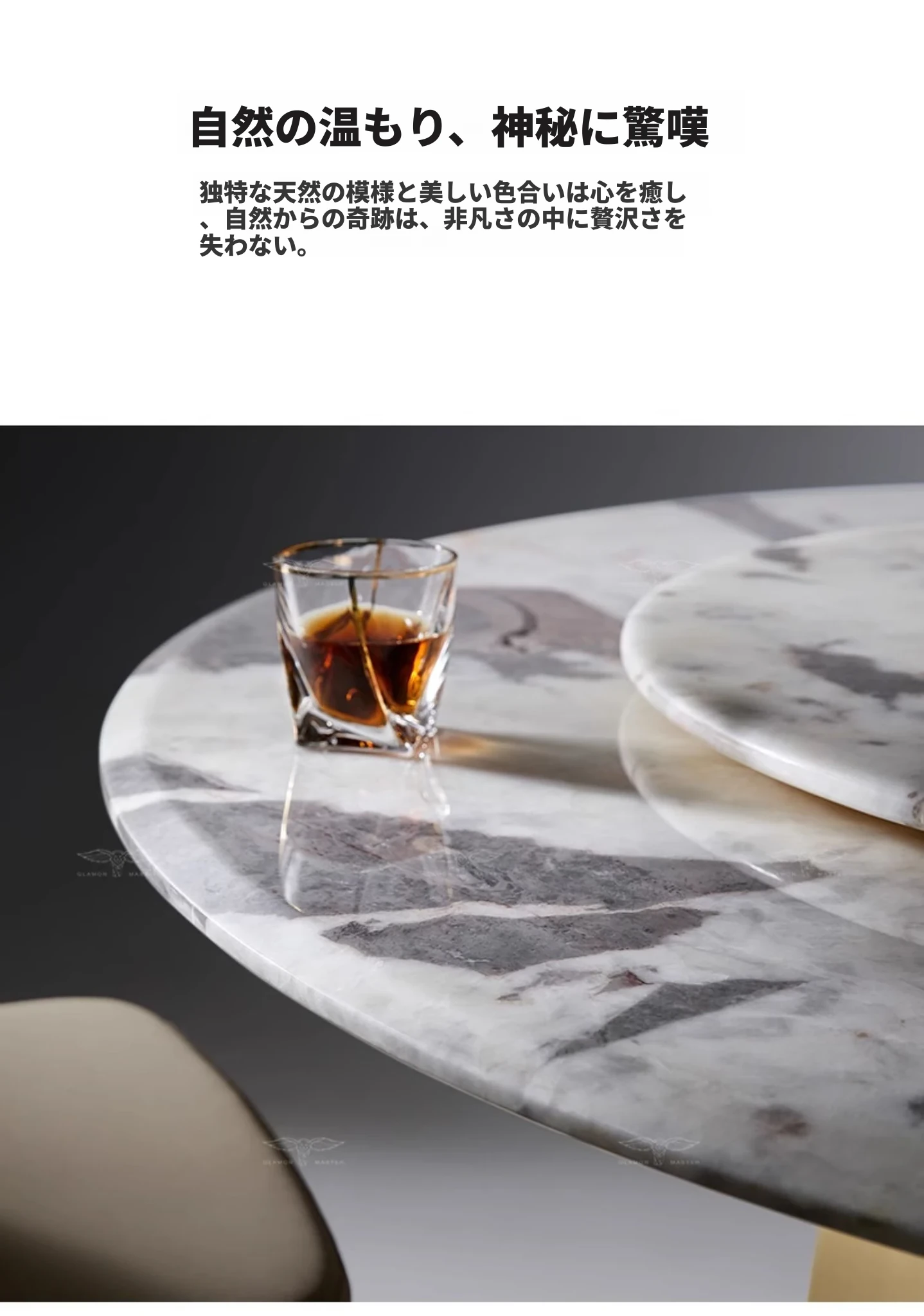魅力のマスター大理石ラウンドテーブル - モダンなフラットハウスに最適な高級天然石のイタリアンミニマリストダイニングテーブル。おしゃれで洗練された空間を演出し、特別な食事のひとときを提供します。