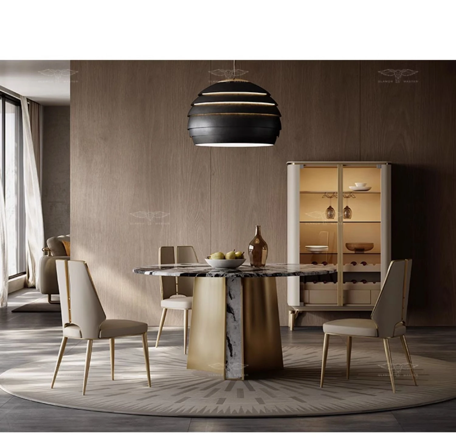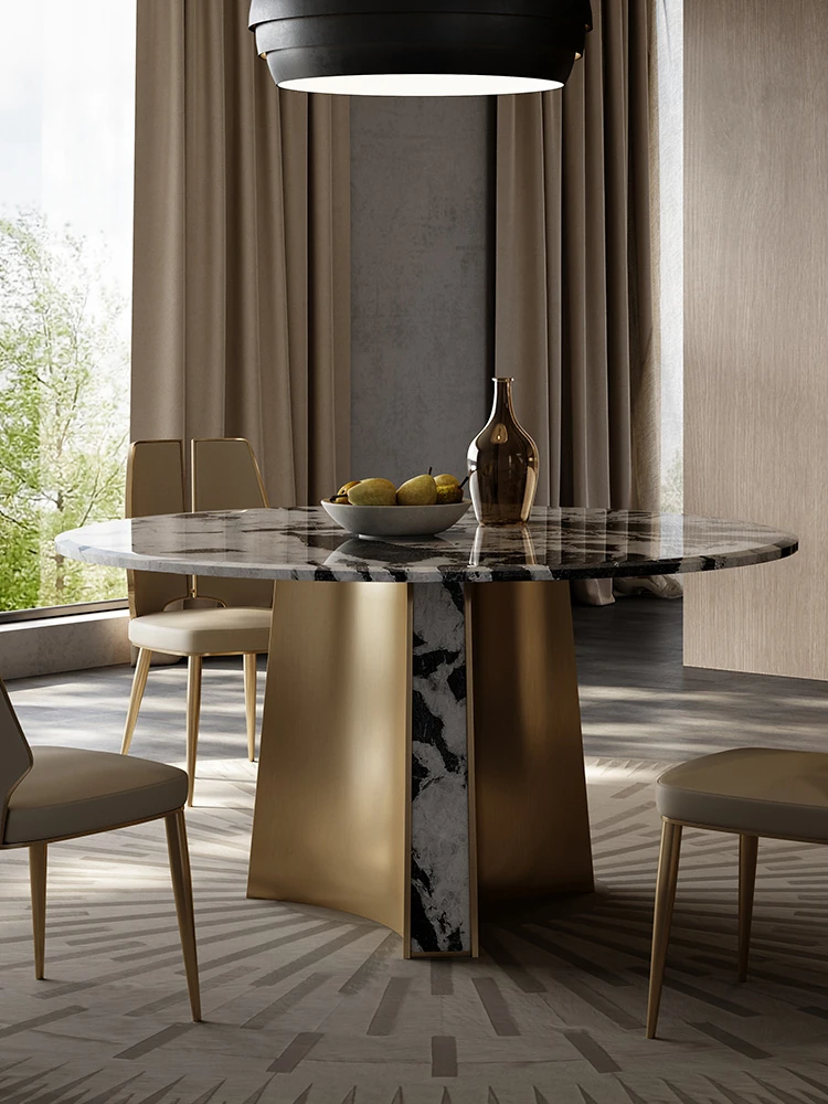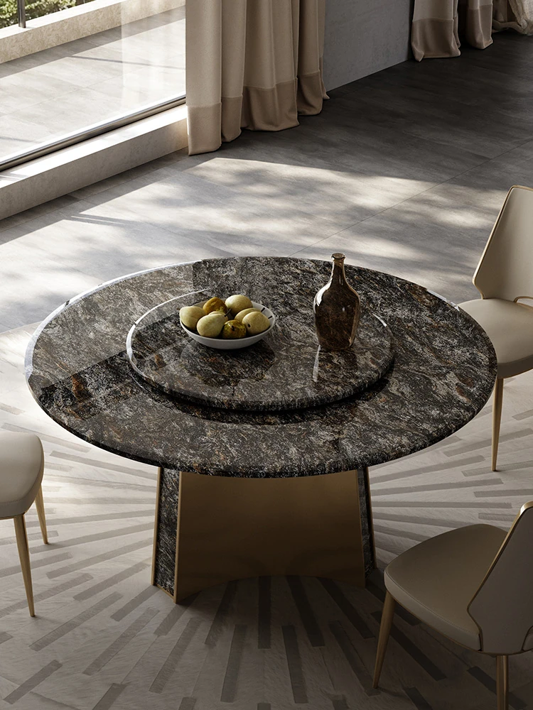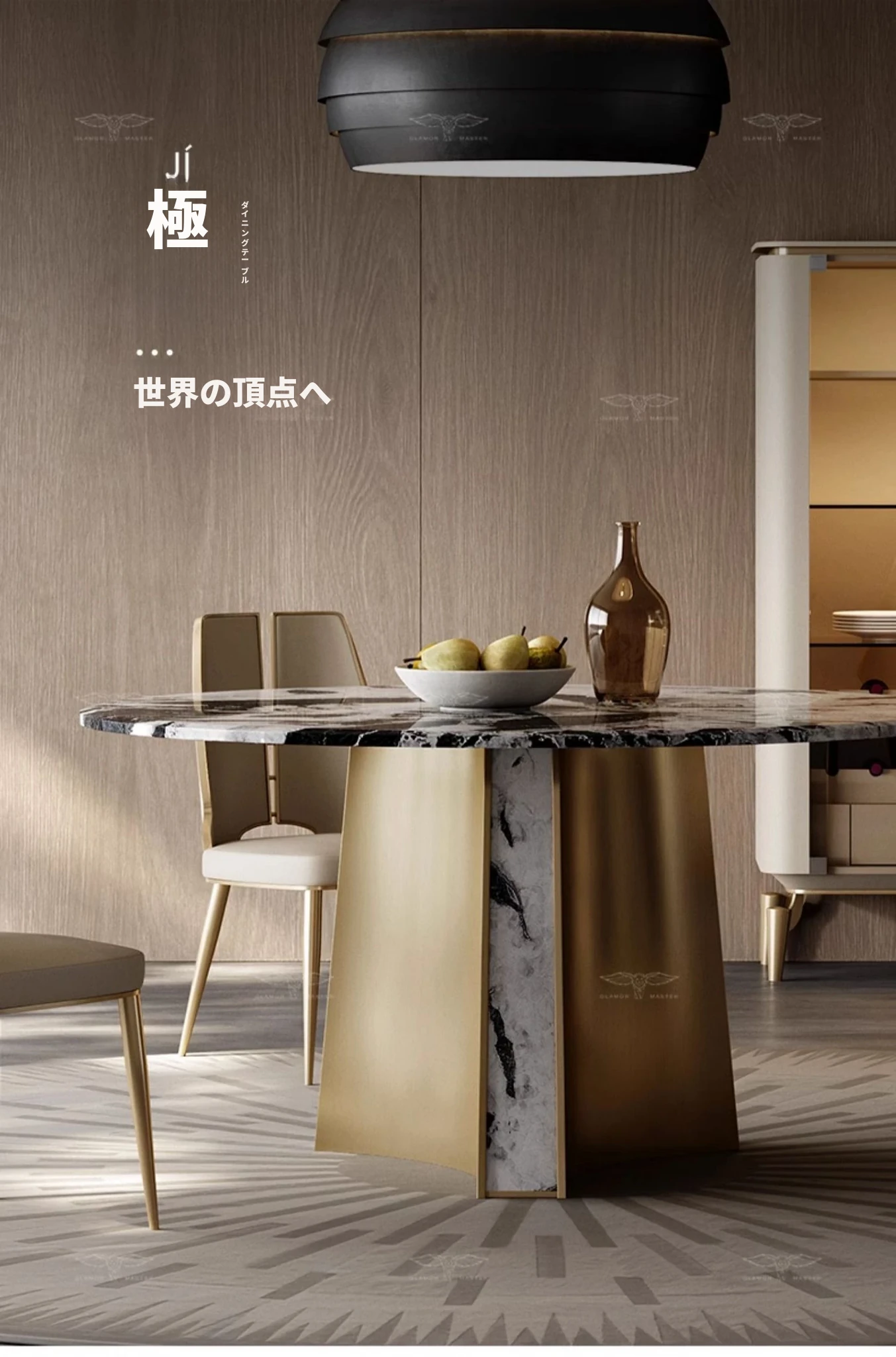 魅力のマスター大理石ラウンドテーブル - モダンなフラットハウスに最適な高級天然石のイタリアンミニマリストダイニングテーブル。おしゃれで洗練された空間を演出し、特別な食事のひとときを提供します。