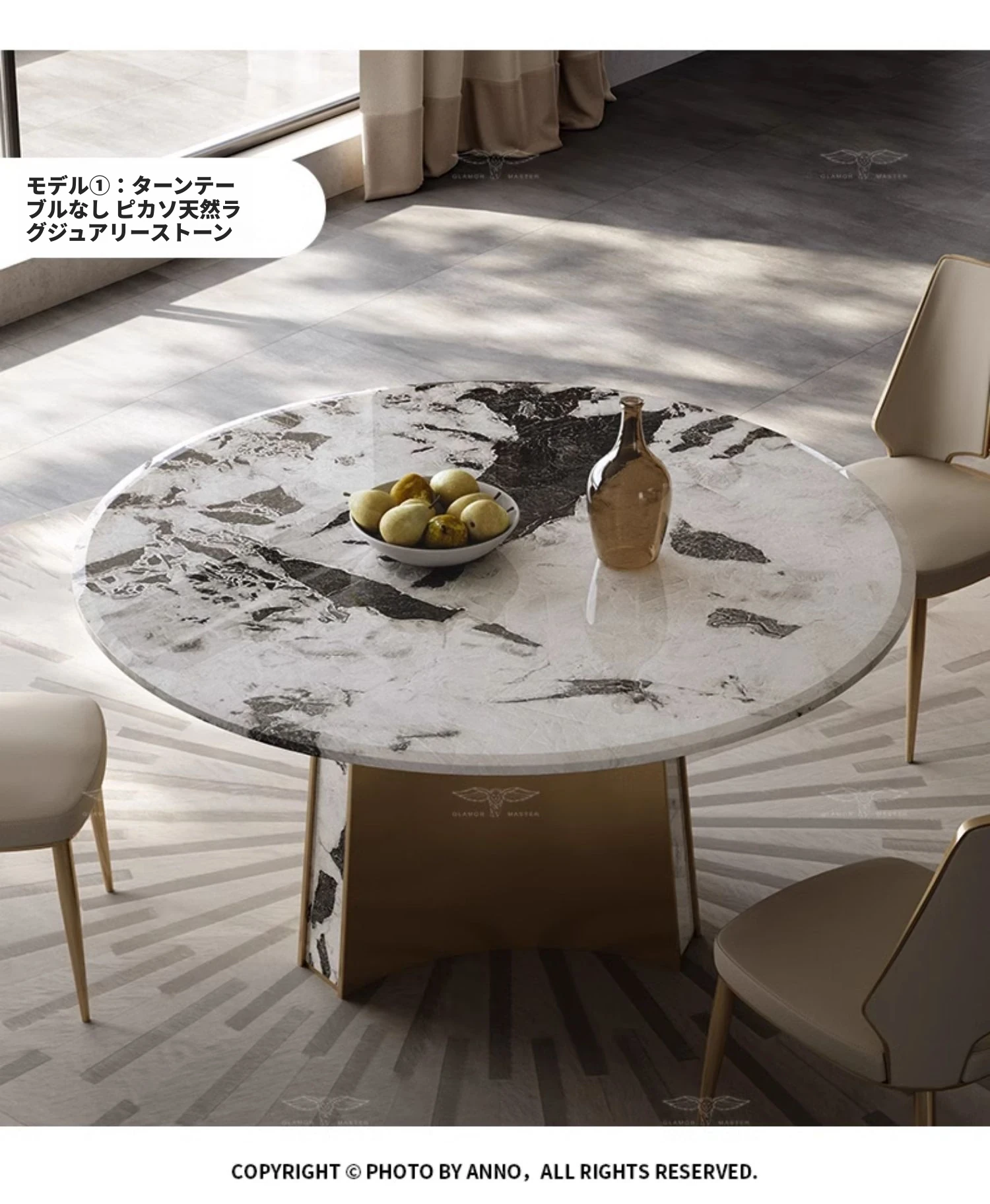ダイニングテーブル/1.3M/ピカソ天然大理石/回転盤付き