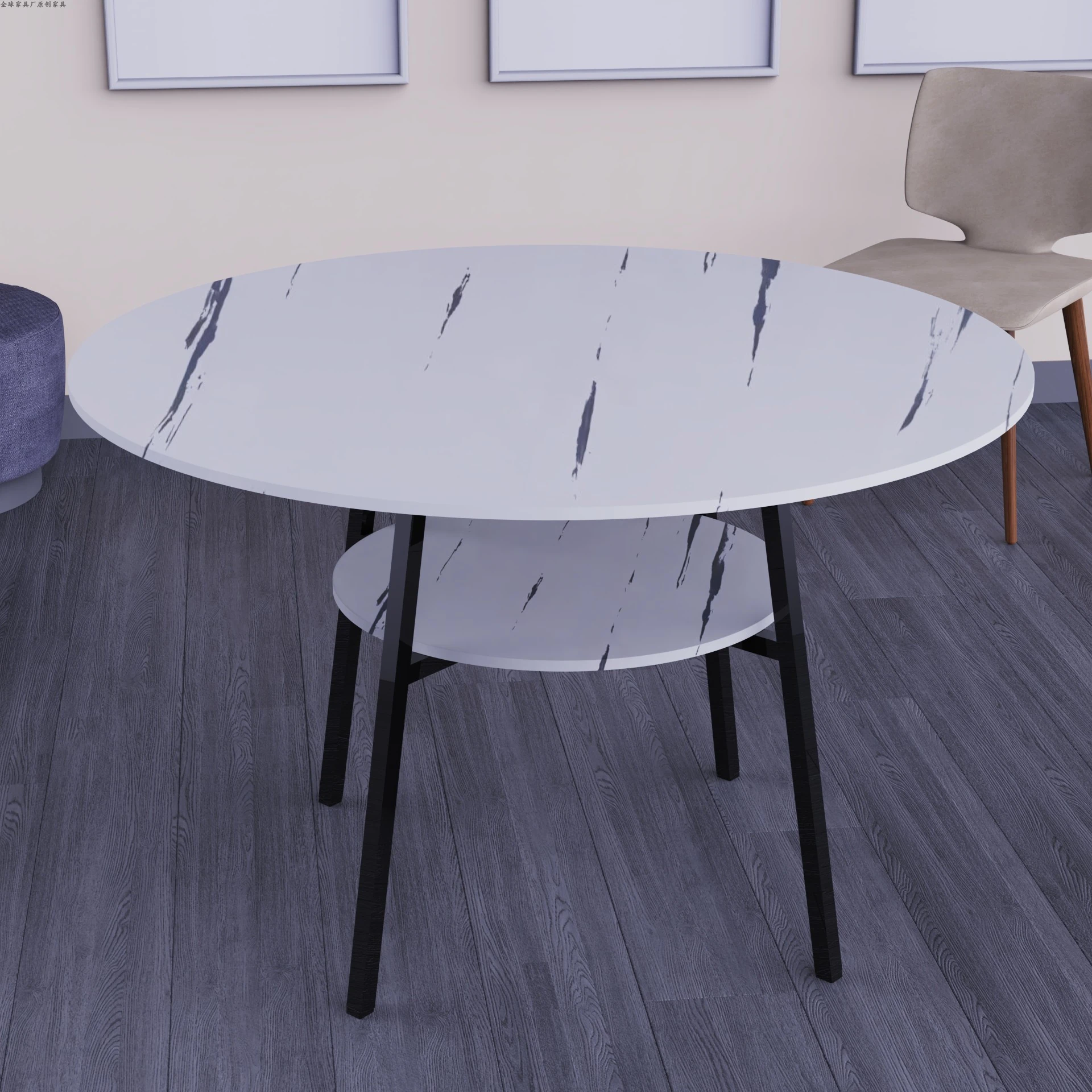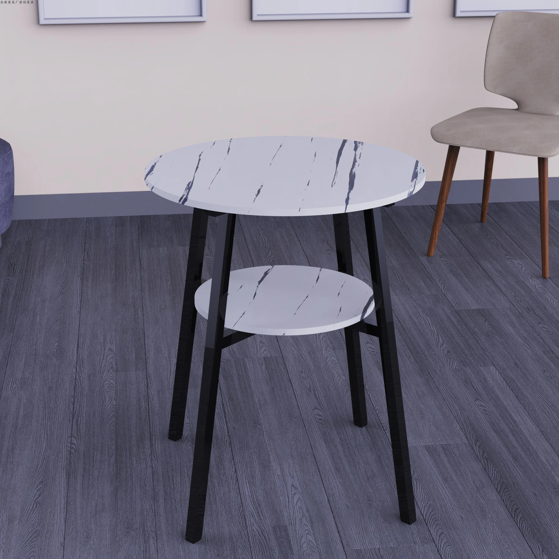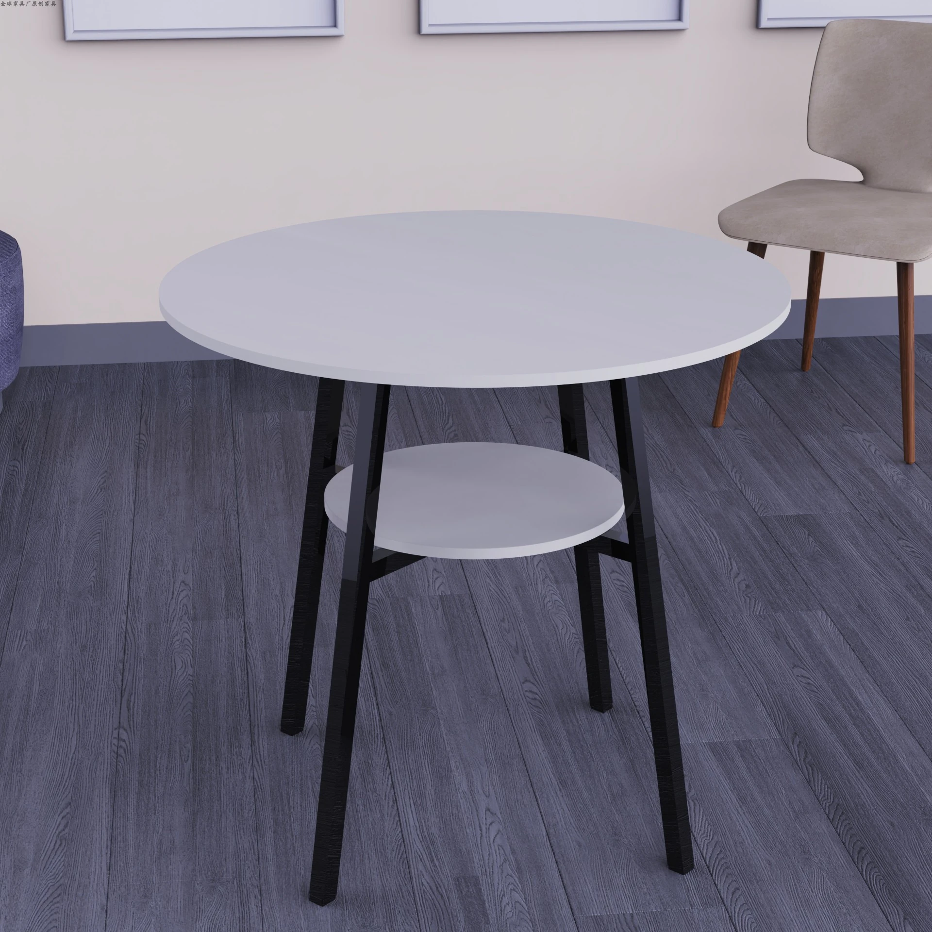 おしゃれな小型円形テーブルセット|ダイニングやバルコニーに最適!|2段デザインのテーブルと椅子2脚付き|省スペースで使いやすい、家族や友人とのくつろぎの時間を演出!