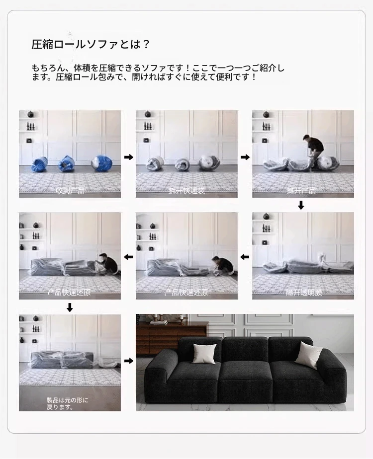 圧縮ソファー|クロスボーダー輸出用の真空圧縮モジュール|骨組みなしの大黒牛ウレタンソファ|スペースを有効活用して、快適なリラックスタイムを実現!