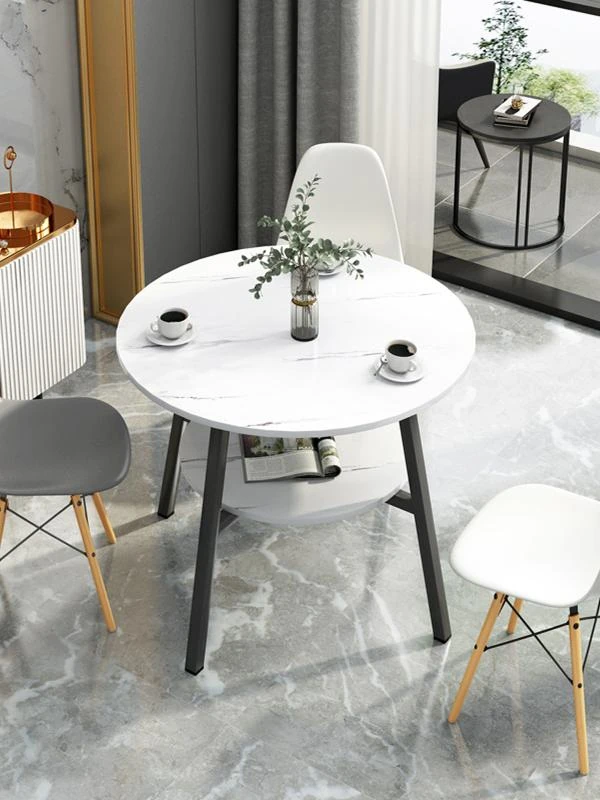 ダブルレイヤー会議用円卓|リビング・カフェテーブル|バルコニー用コーヒーテーブル60|シンプルな2人用|寝室でのティータイムに最適!