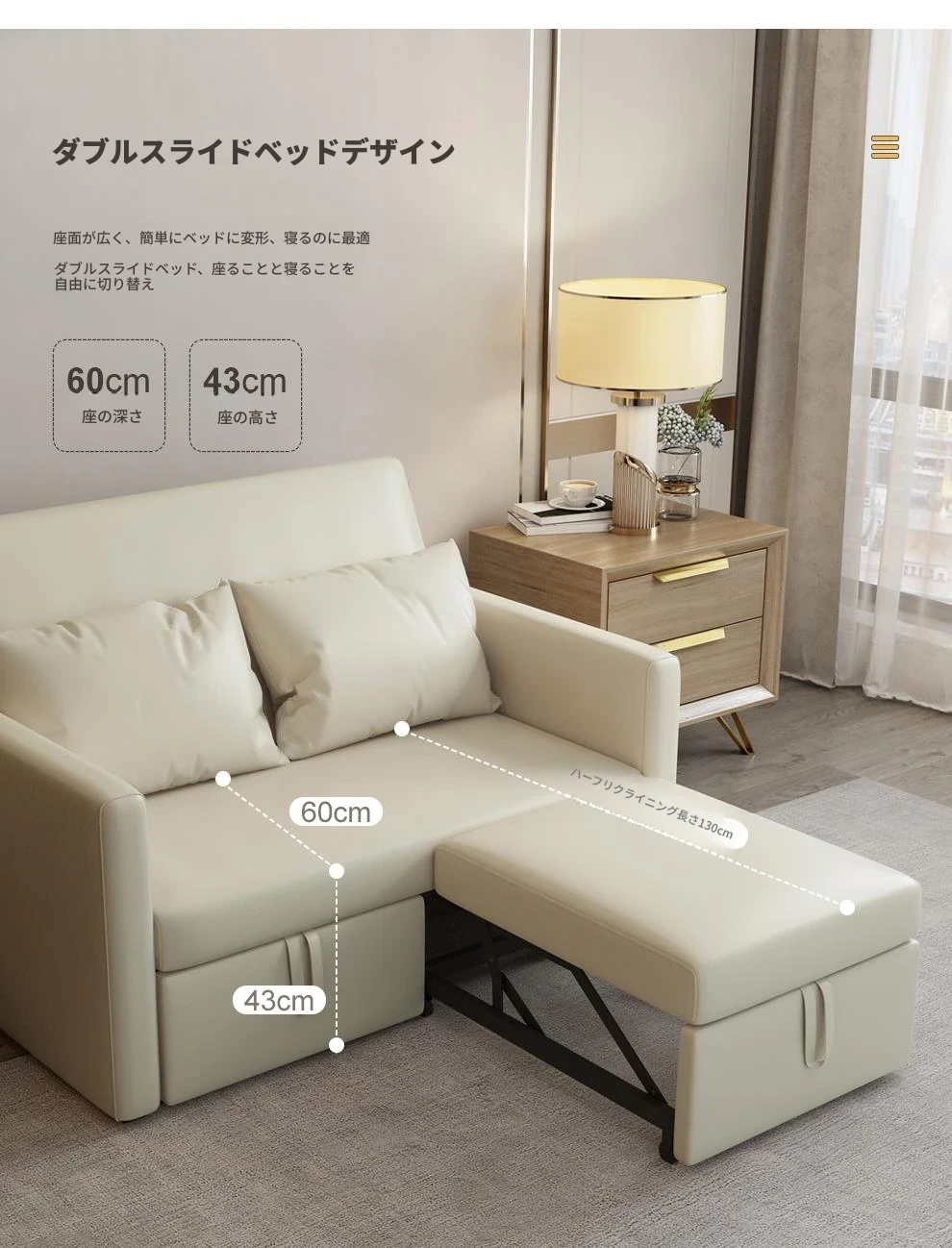 【香港送料無料】省スペース折りたたみソファベッド!二人用の座り心地抜群、寝心地も完璧!ベッドとしてもソファとしても使える、スタイリッシュで機能的な一品!