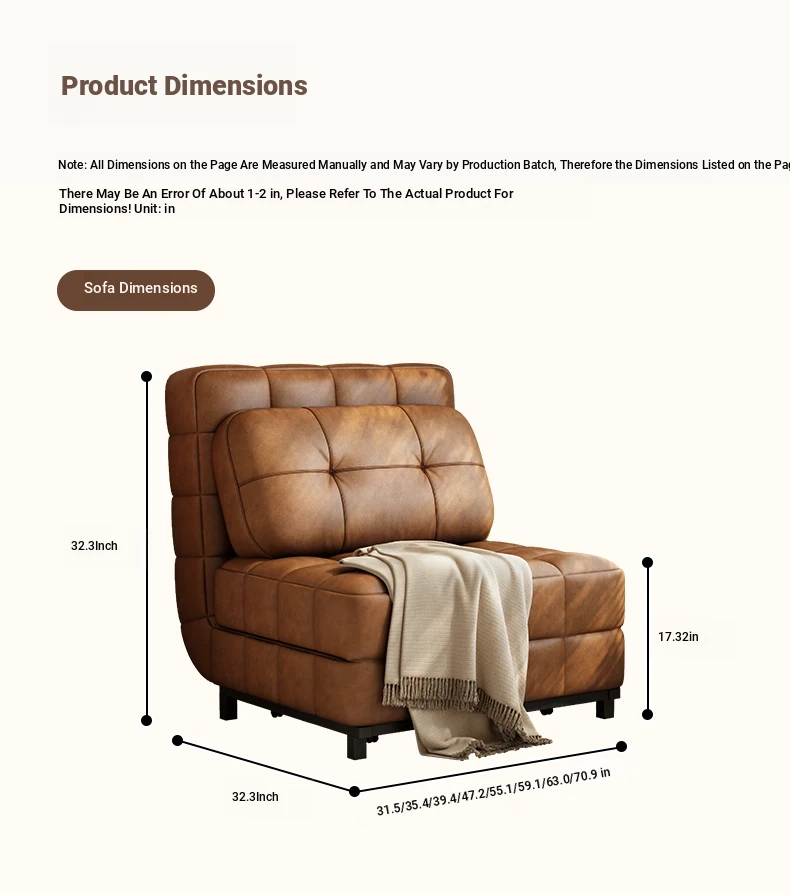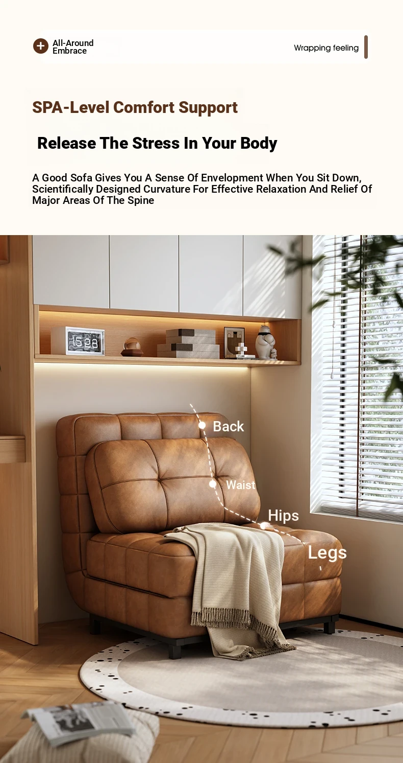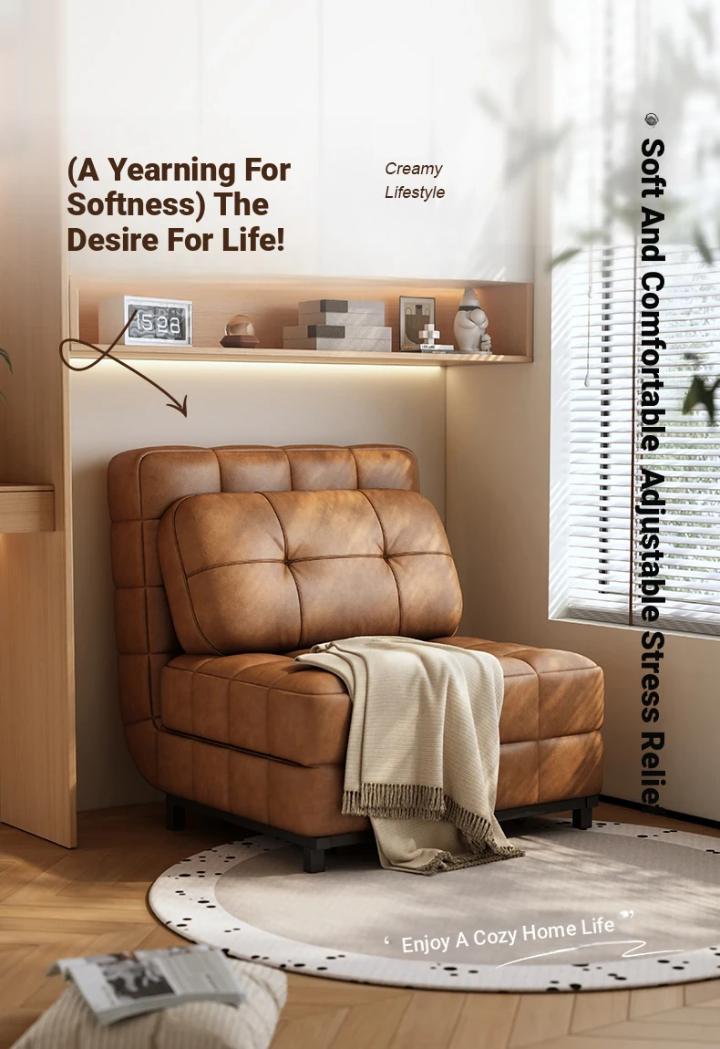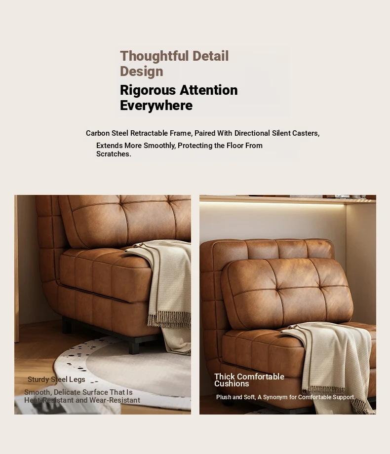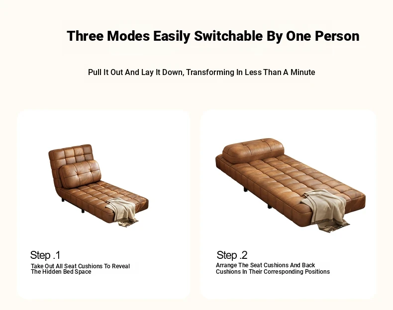 French-style Fendi Convertible Sofa Bed - 2025 New Vintage Design for Small Spaces, Perfect for Single Use and Easy to Expand!
