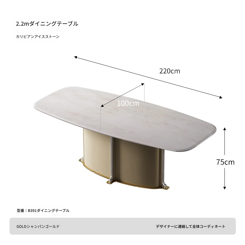 ダイニングテーブル/2.2M/カリアイスジェード/シャンパンゴールド