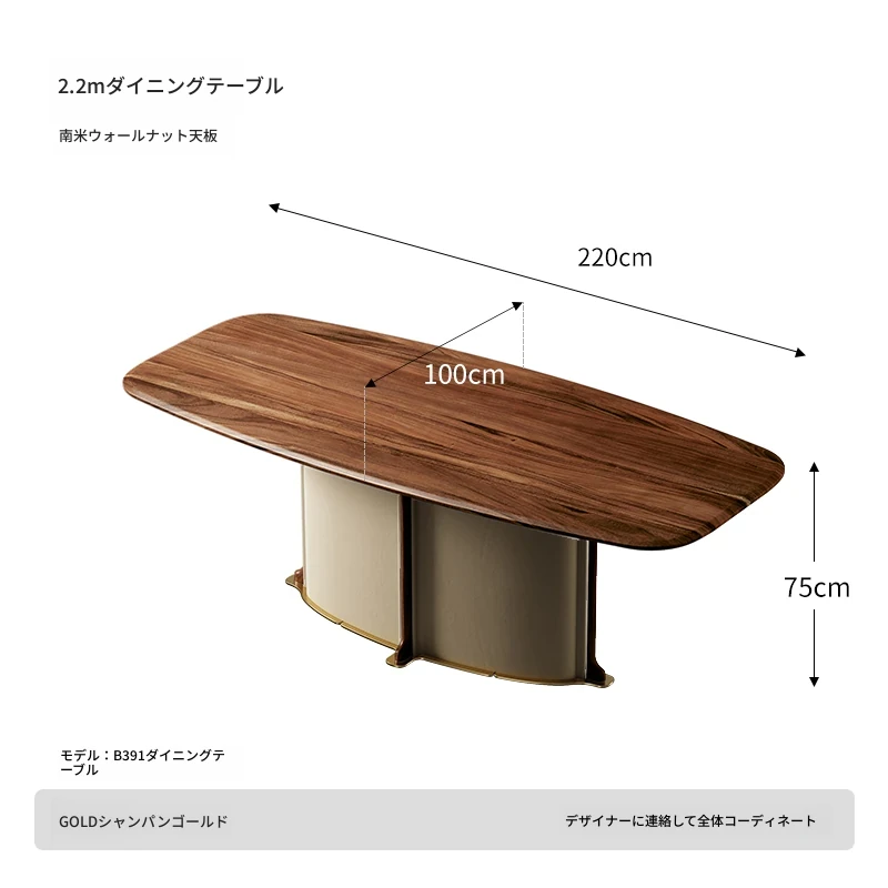 ダイニングテーブル/2.2M/南米ウォールナット/シャンパンゴールド