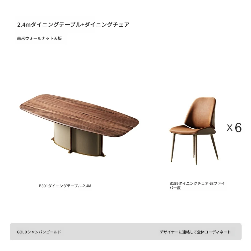 ダイニングテーブル/2.4M/南米ウォールナット/B159ダイニングチェア超ファイバー皮*6/シャンパンゴールド