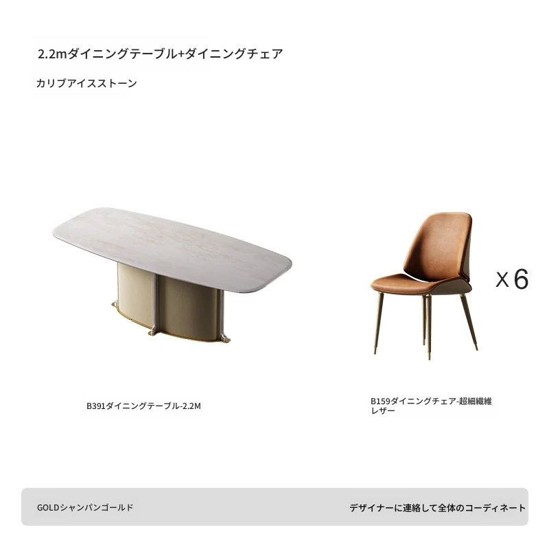 ダイニングテーブル/2.2M/カリアイスジェード/B159ダイニングチェア超ファイバー皮*6/シャンパンゴールド