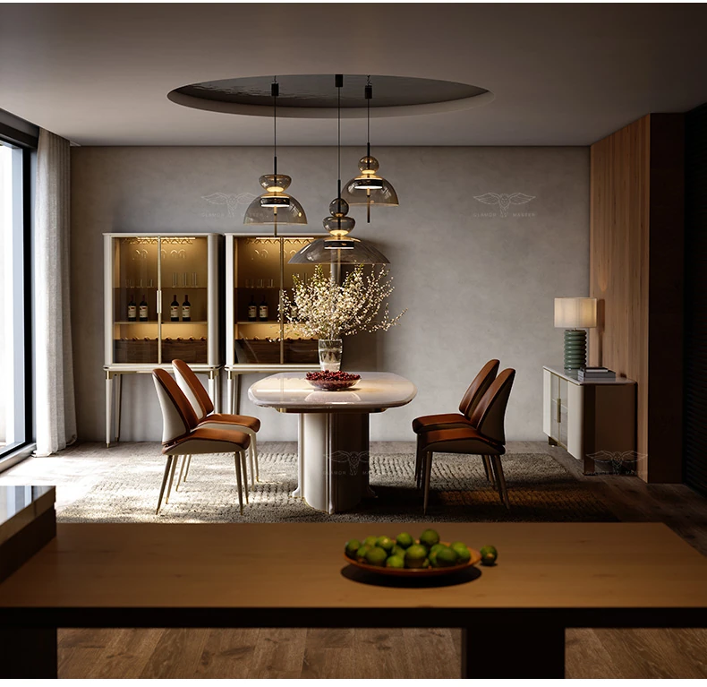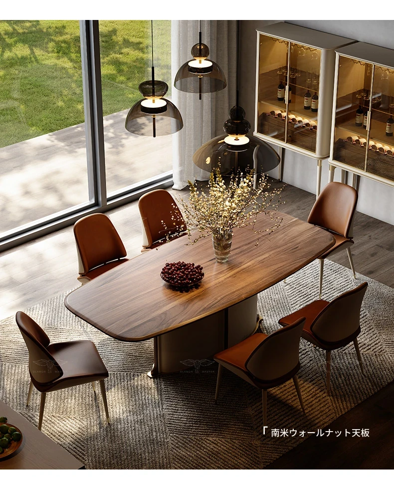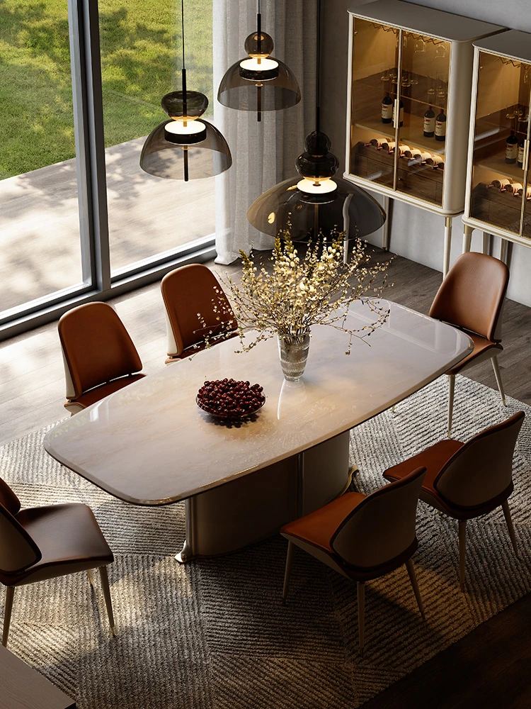 魅力あふれるマスターレベルの天然大理石豪華ダイニングテーブルセット - 自宅で楽しむラグジュアリーな食卓!長方形のテーブルと椅子の完璧な組み合わせで、特別なひとときを演出します。