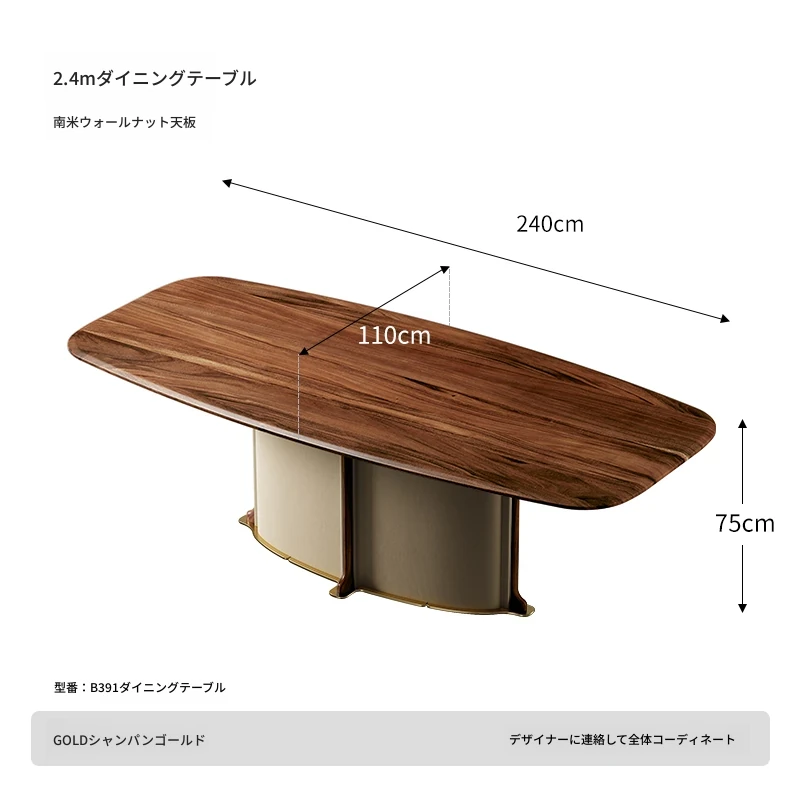 ダイニングテーブル/2.4M/南米ウォールナット/シャンパンゴールド