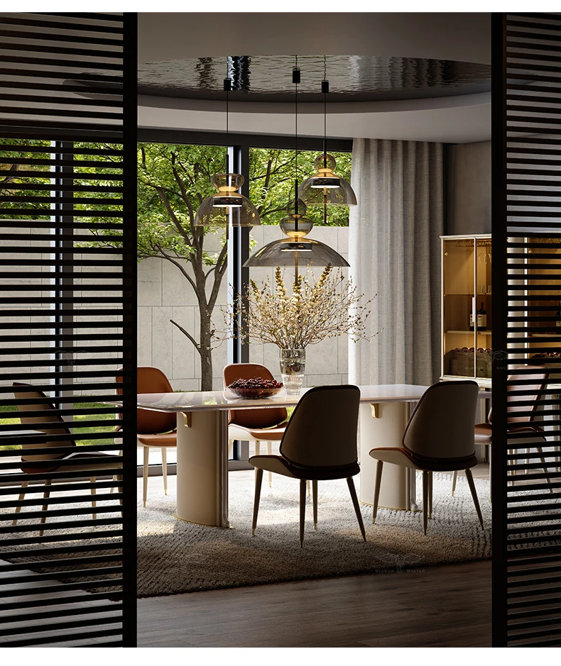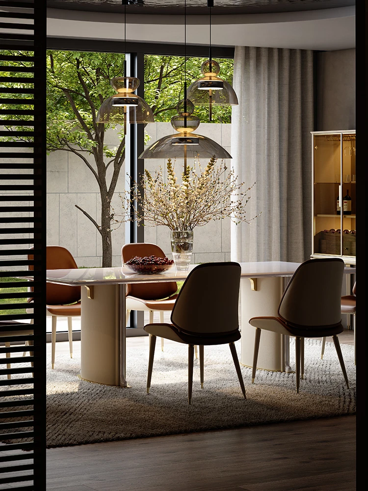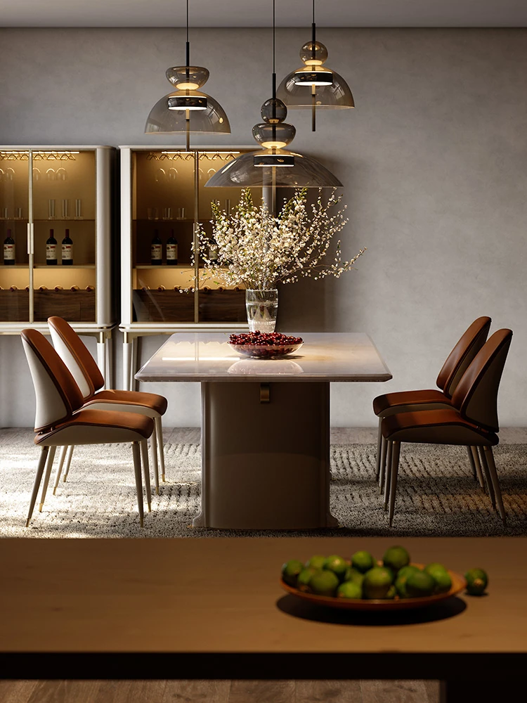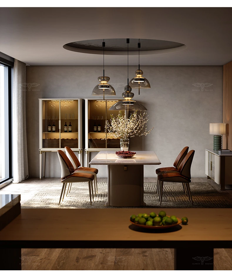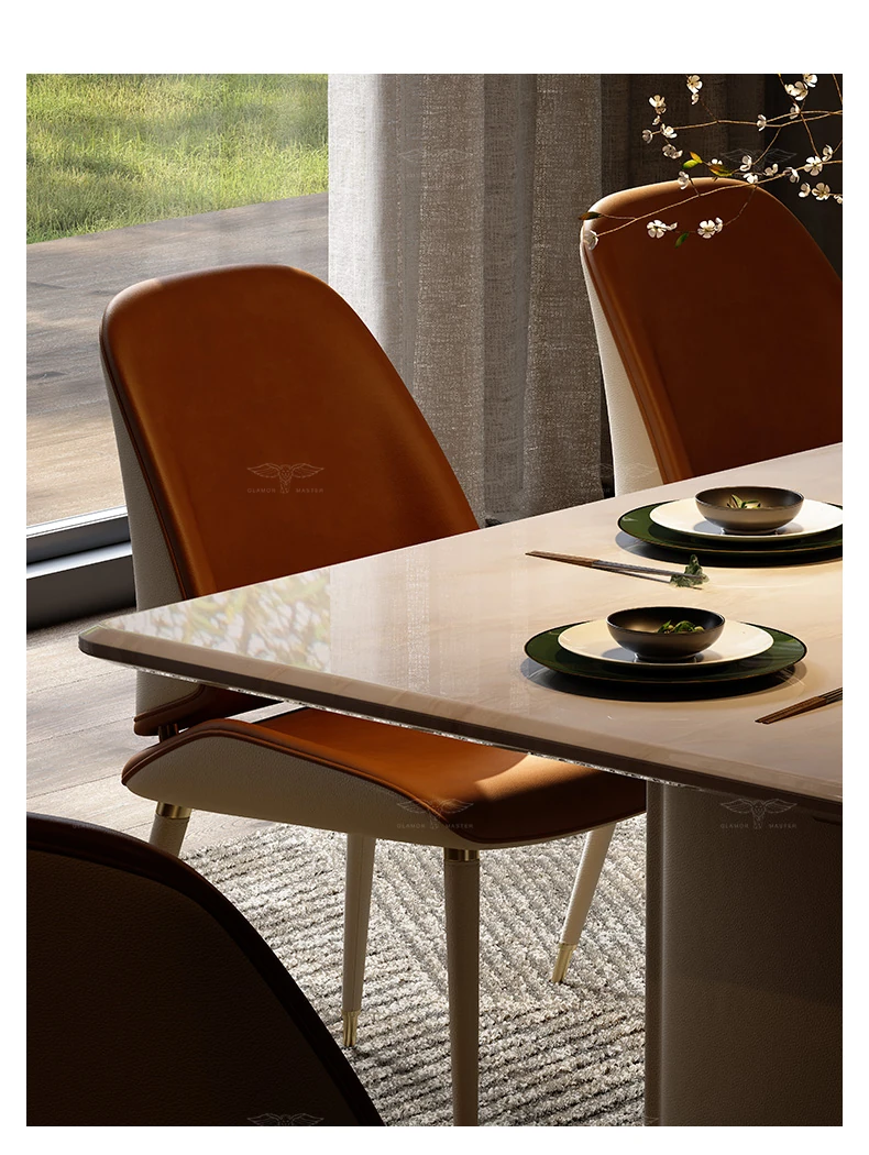 魅力あふれるマスター級の天然石ダイニングテーブル - 別荘のリビングにぴったりな大理石製の長方形テーブルで、家族や友人との特別なひとときを演出します。