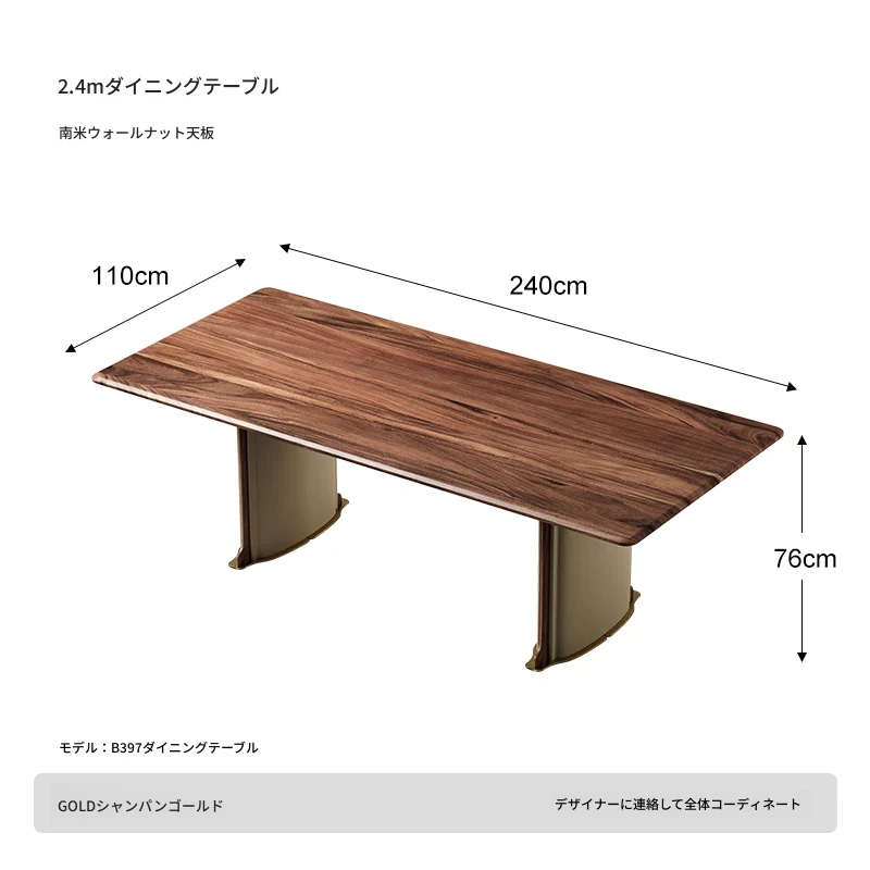長テーブル2.4M/南米ウォールナット/シャンパンゴールド