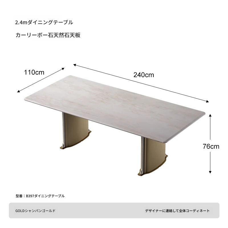 長テーブル2.4M/カリビアンアイス/シャンパンゴールド