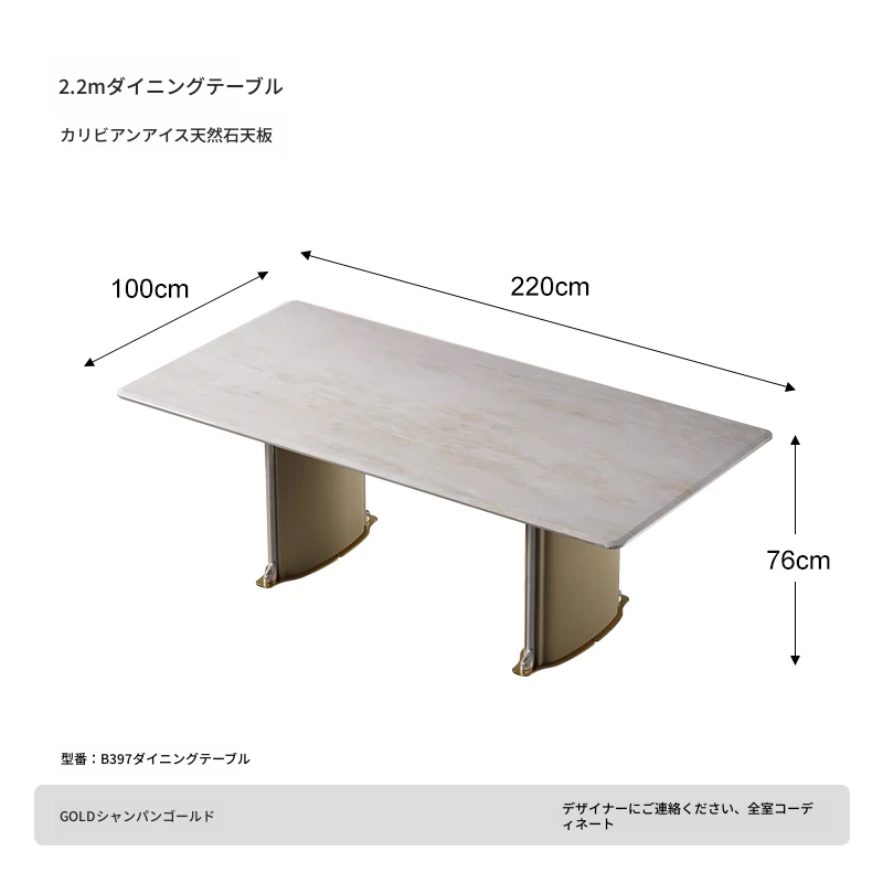 長テーブル2.2M/カリビアンアイス/シャンパンゴールド