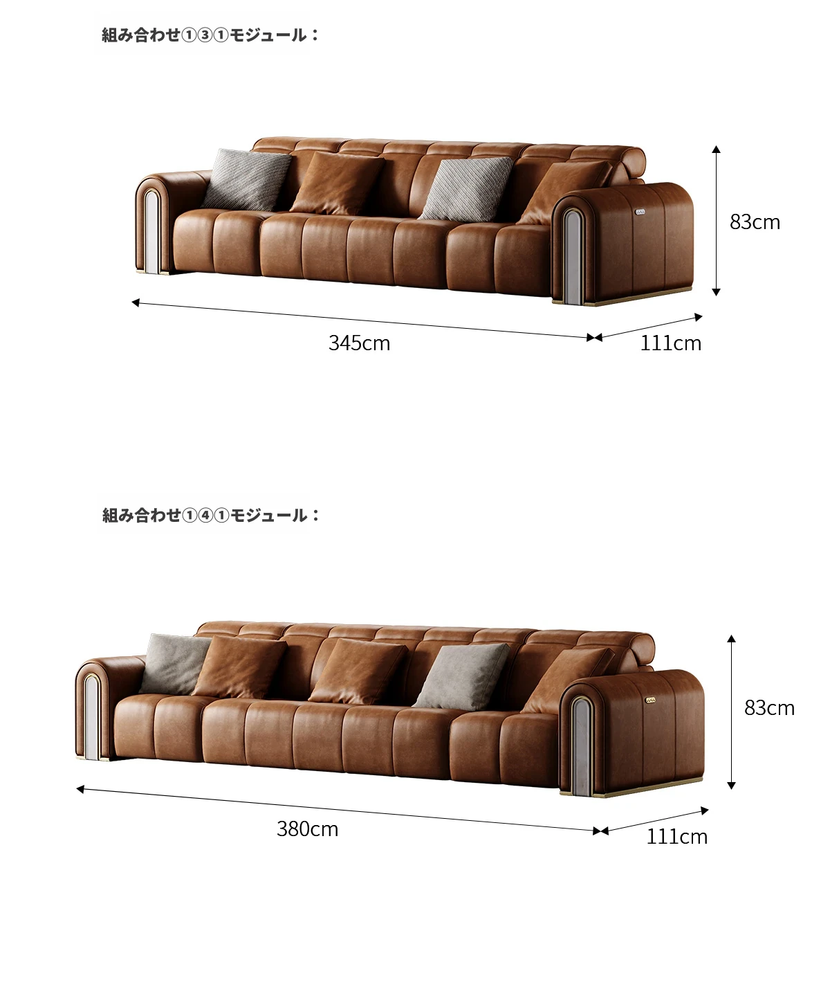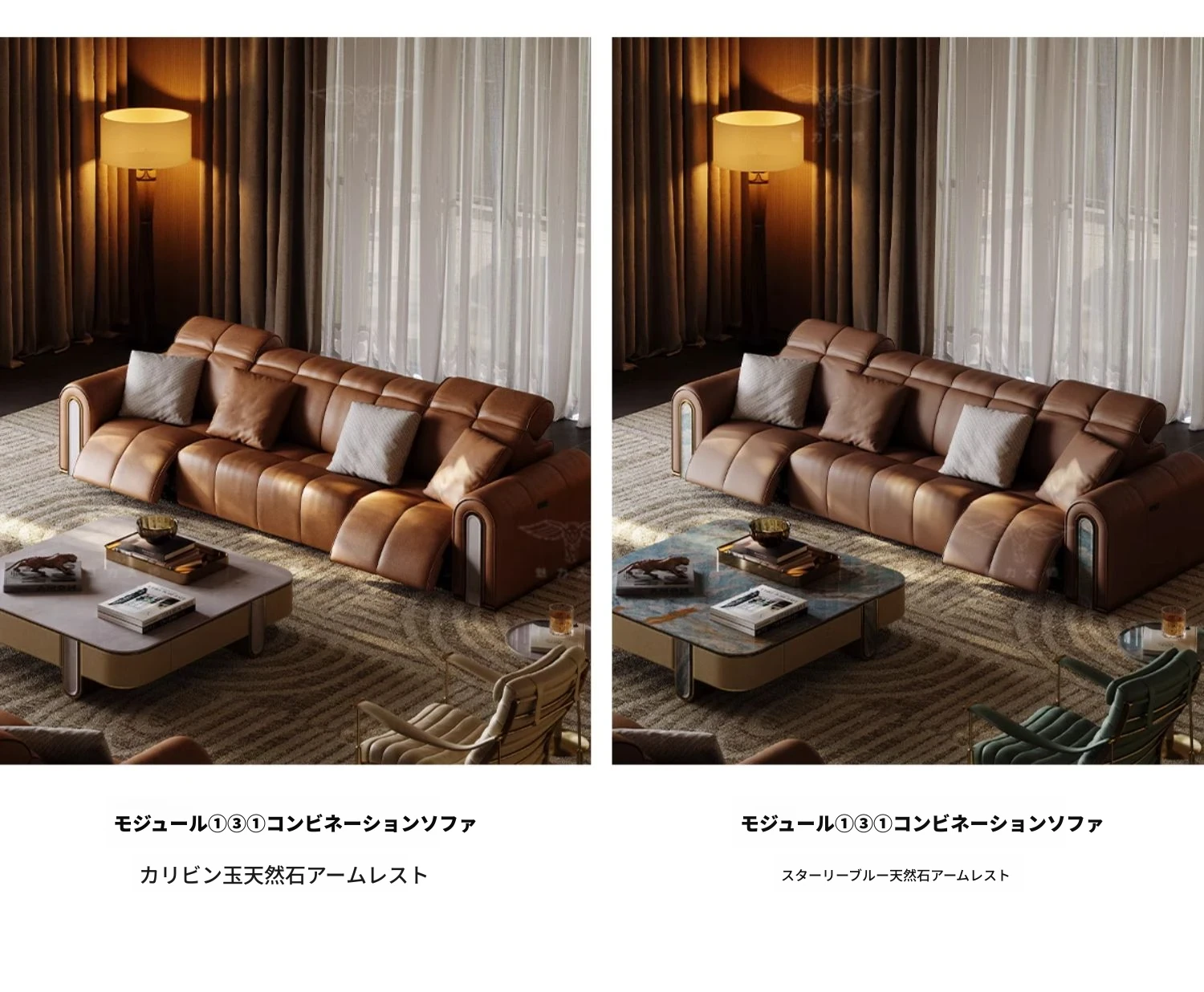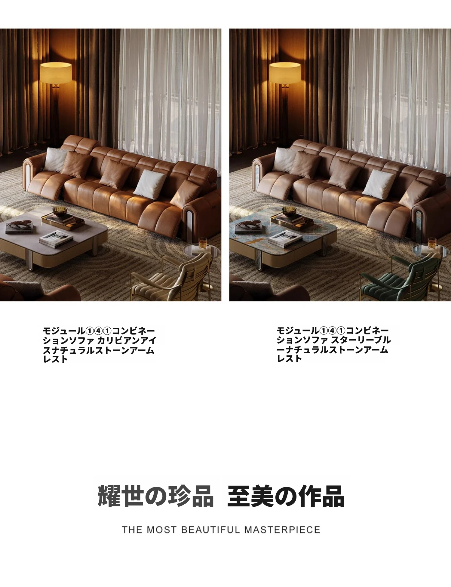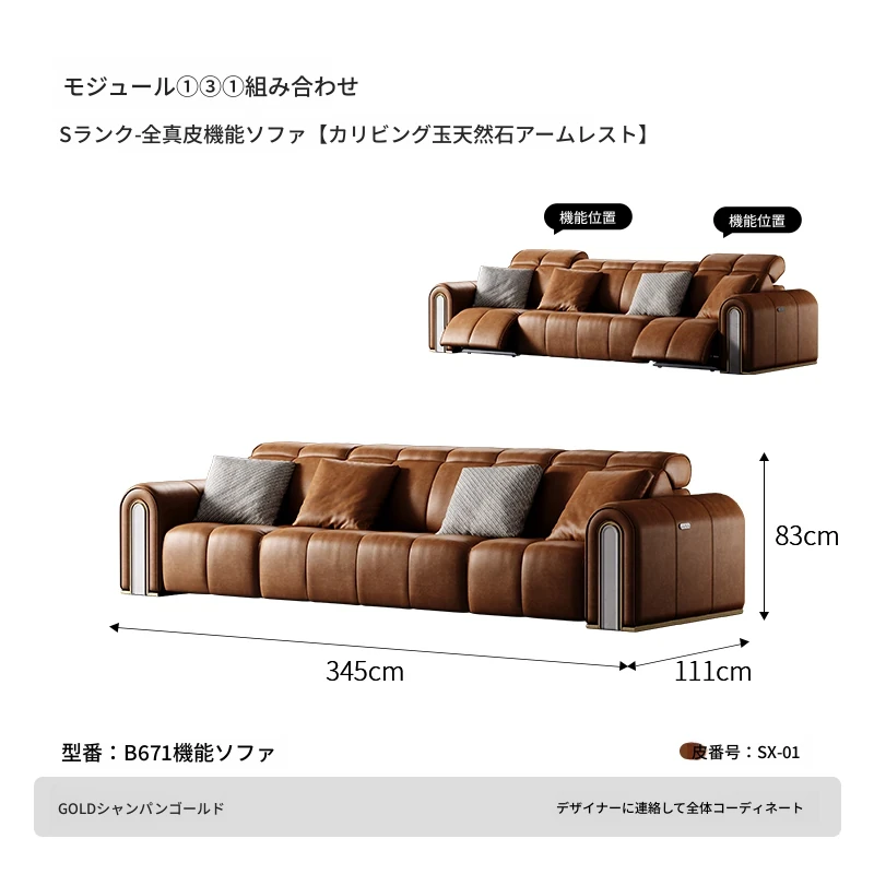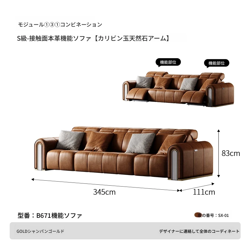 ケイソウ機能ソファ/モジュール①③①/S級全真皮/カリアイスオニキス