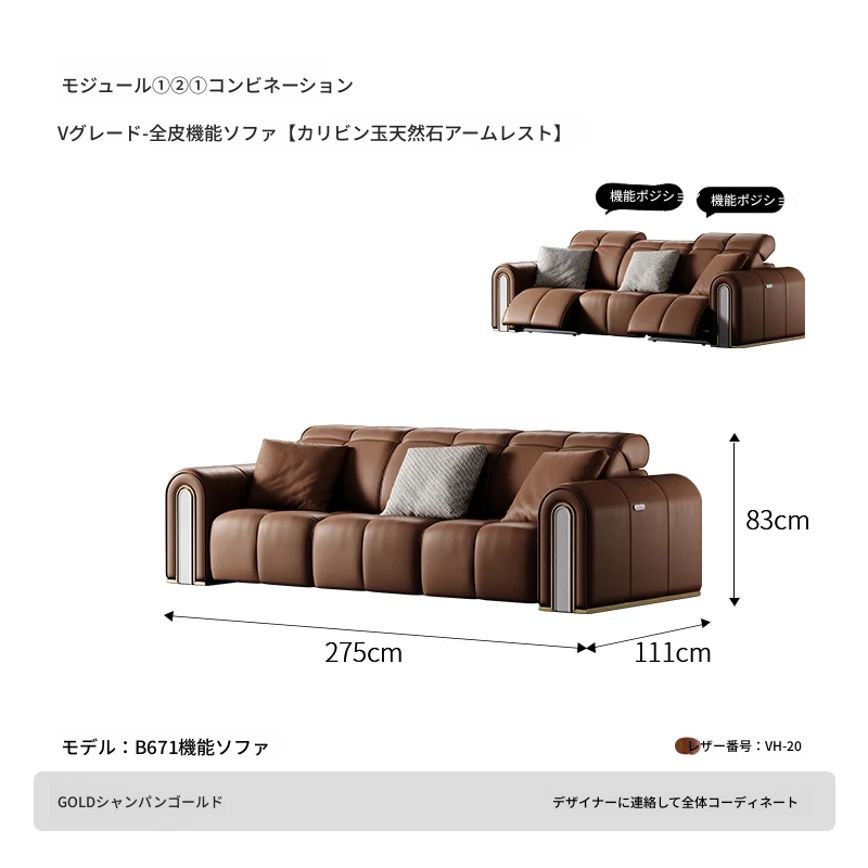 ケイソウ機能ソファ/モジュール①②①/S級半皮/カリアイスオニキス