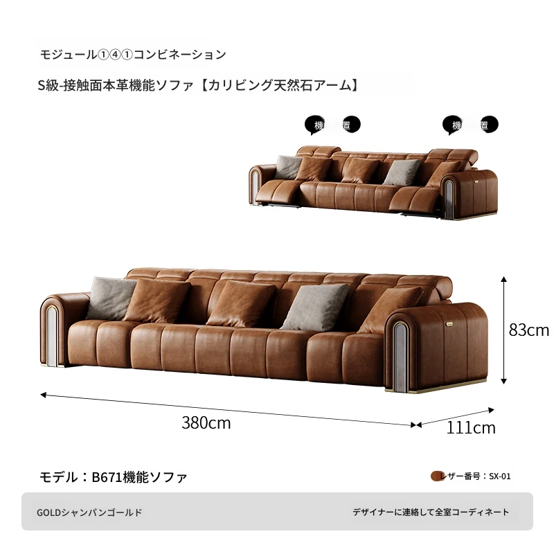 ケイソウ機能ソファ/モジュール①④①/S級全真皮/カリアイスオニキス