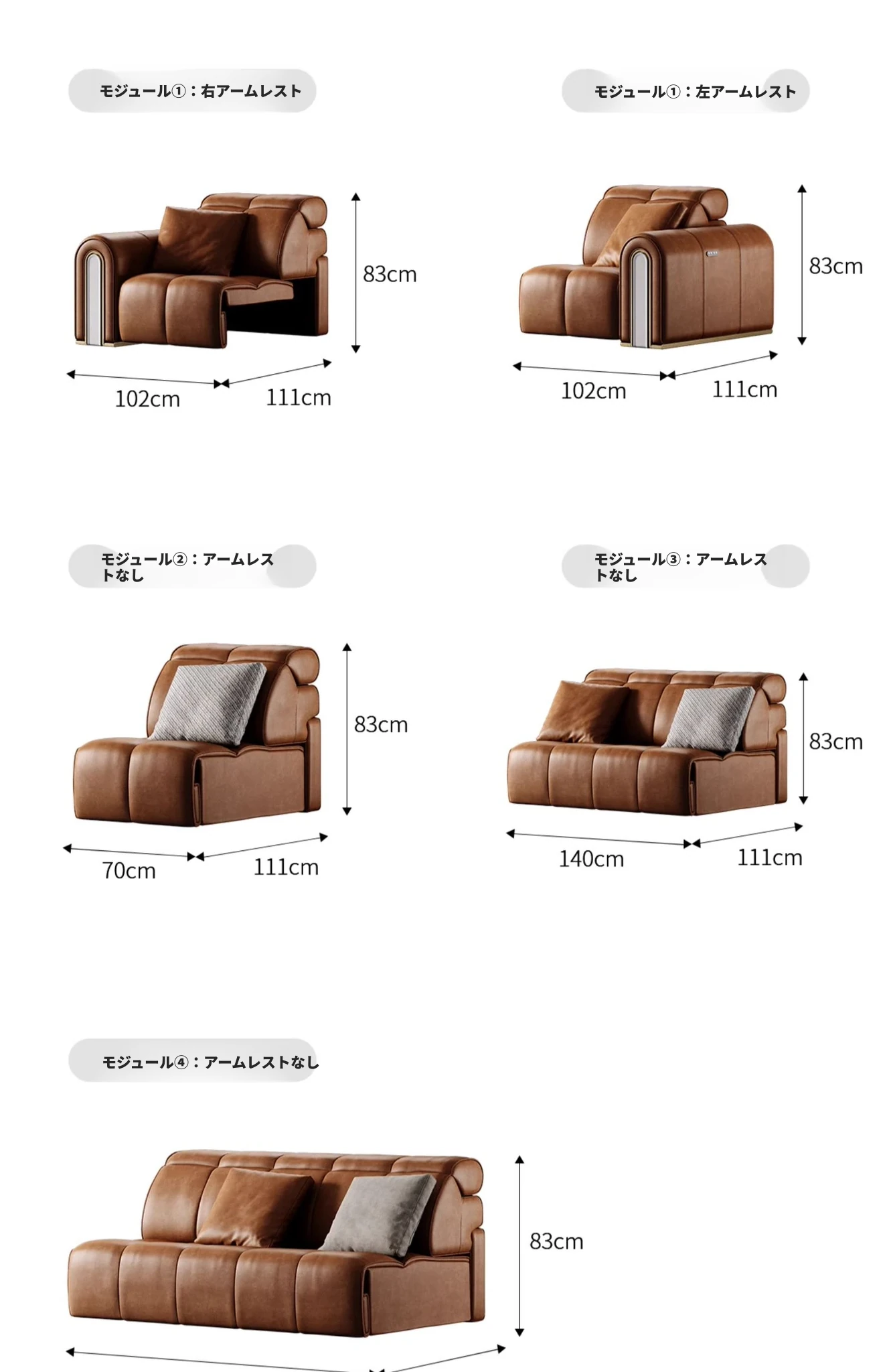 ケイソウ機能ソファ/モジュール①④①/S級半皮/カリアイスオニキス