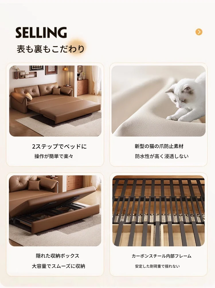 モダンミニマリストの猫爪デザイン!折りたたみ可能なソファベッド、小型アパートに最適。収納スペース付きで、機能性抜群。リビングルームにぴったりのスタイリッシュなアイテムです!
