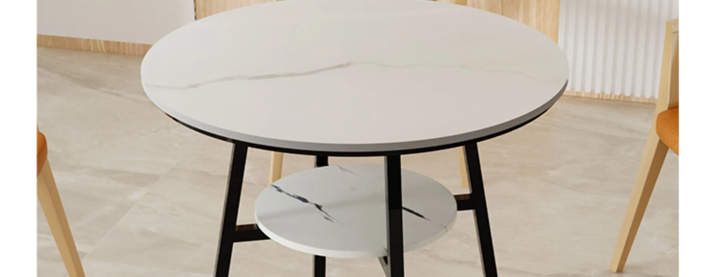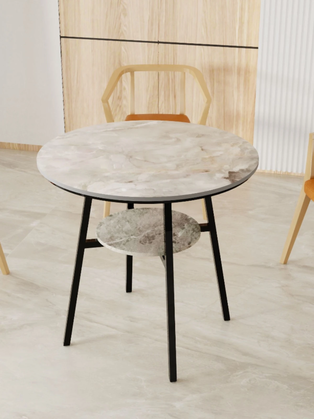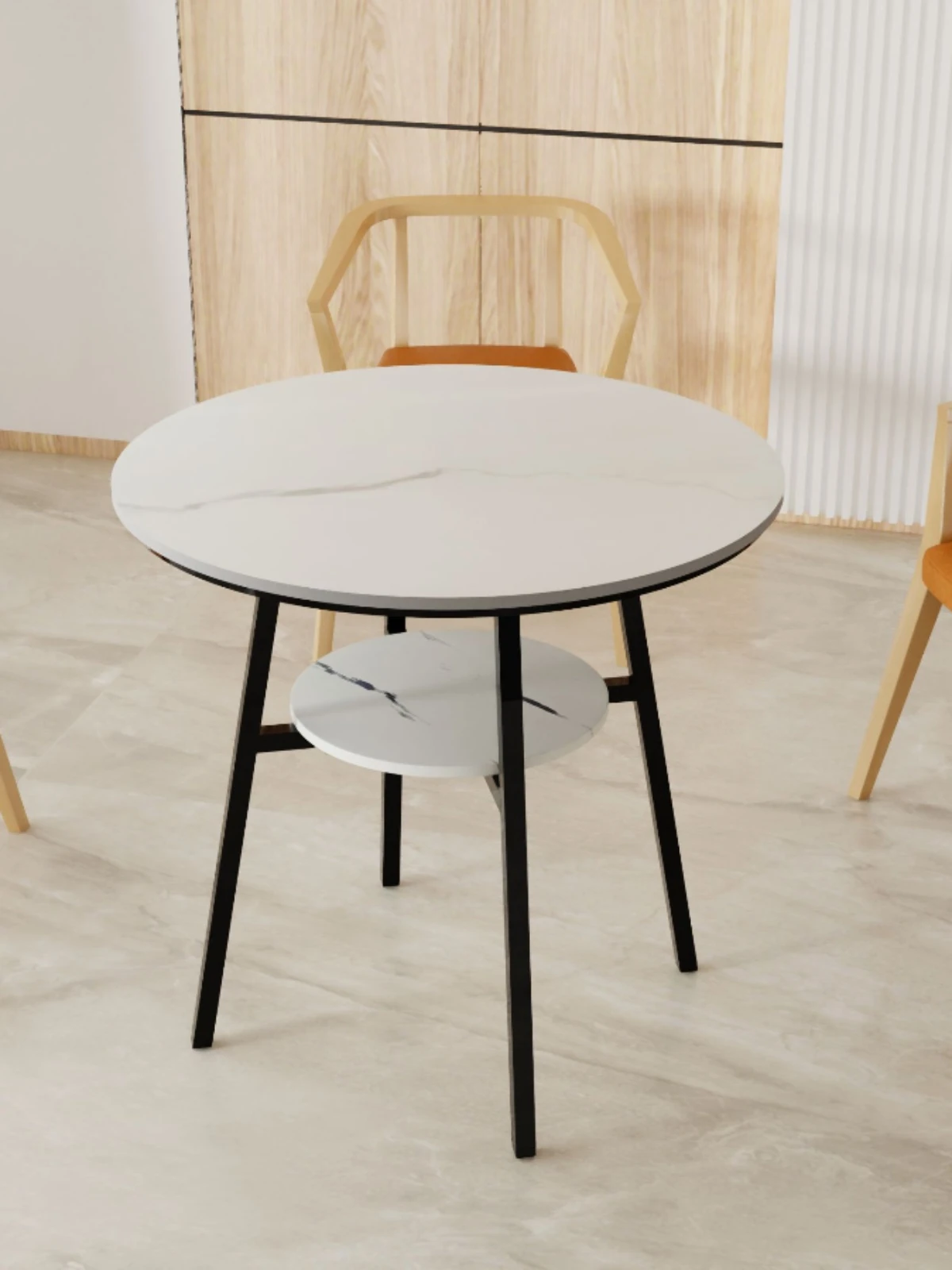 洗練されたデザインの軽奢岩板円形ダイニングテーブル - モダンでシンプル、小スペースにも最適な二層構造の家庭用テーブル、60cmの小型ラウンドテーブルで、スタイリッシュな食事空間を演出します。