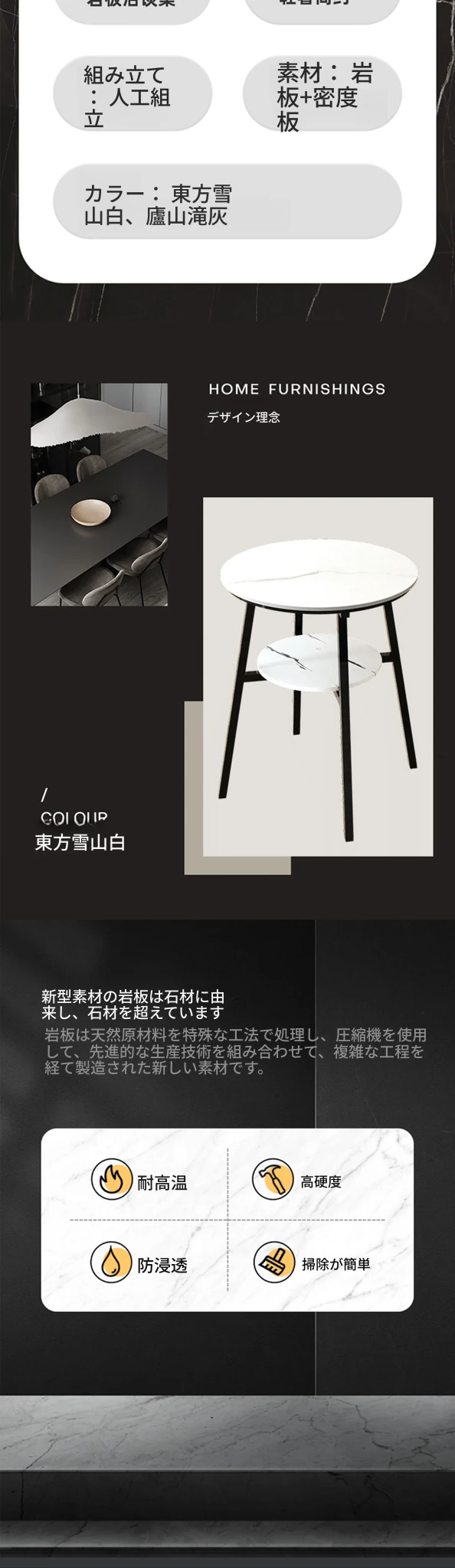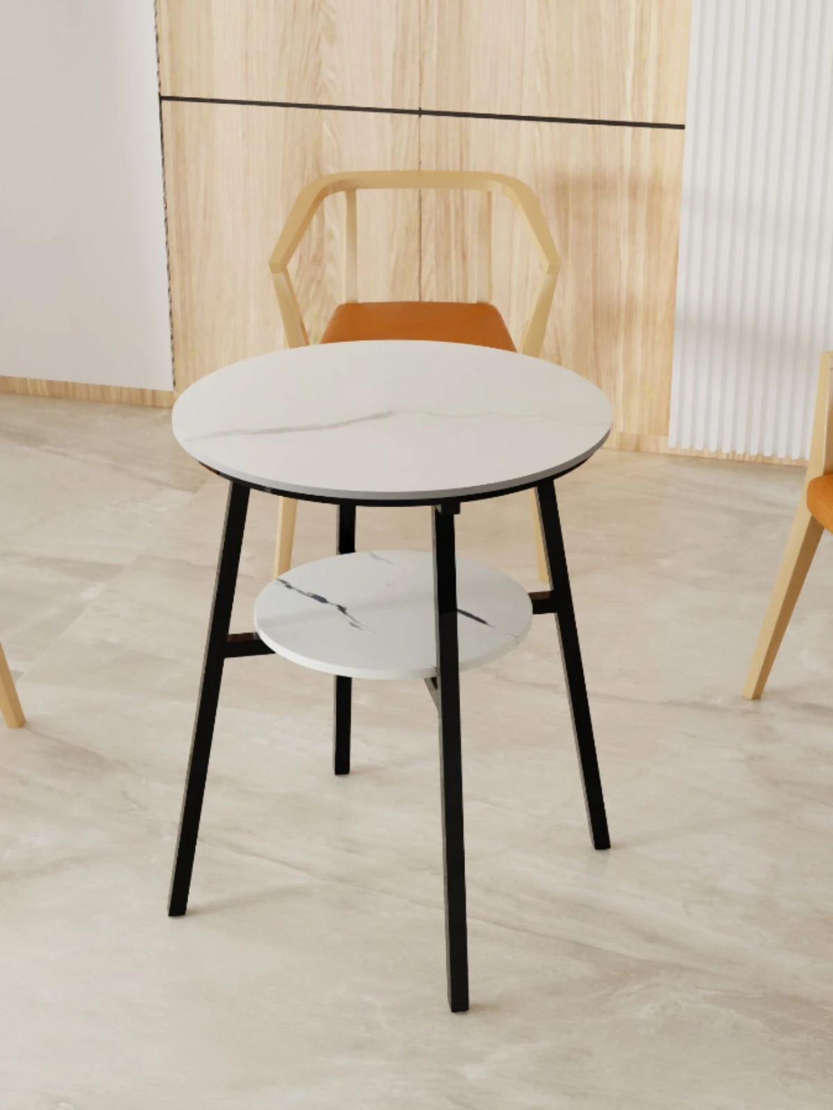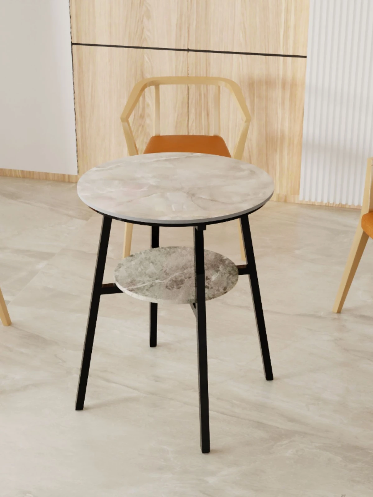 洗練されたデザインの軽奢岩板円形ダイニングテーブル - モダンでシンプル、小スペースにも最適な二層構造の家庭用テーブル、60cmの小型ラウンドテーブルで、スタイリッシュな食事空間を演出します。