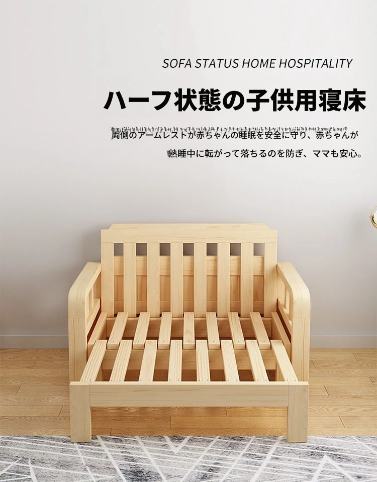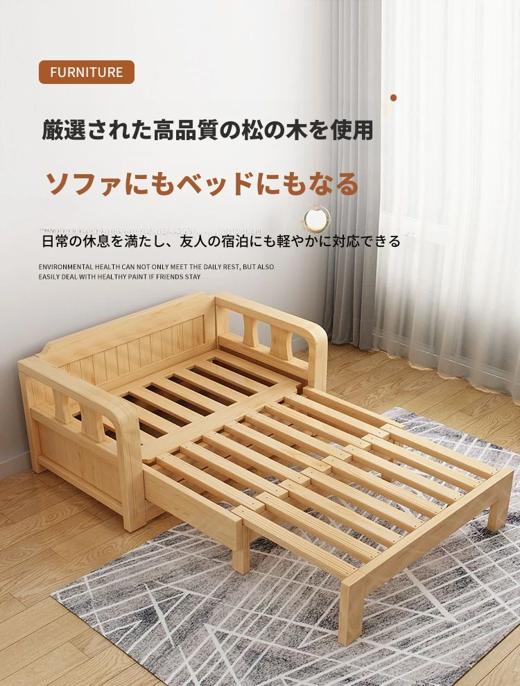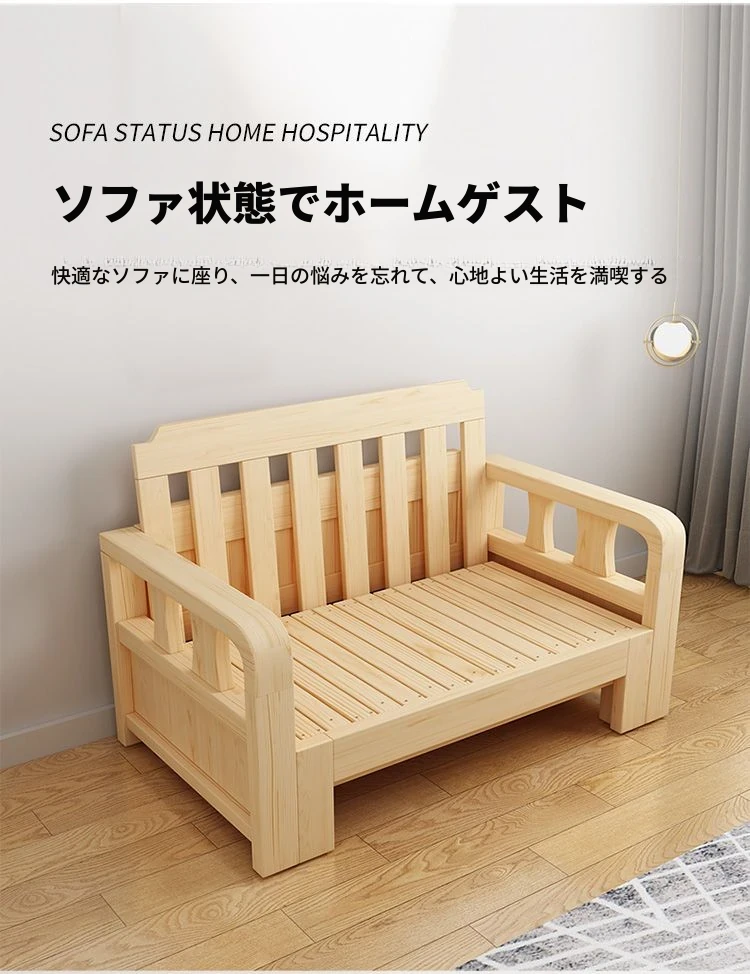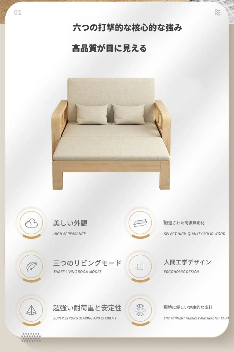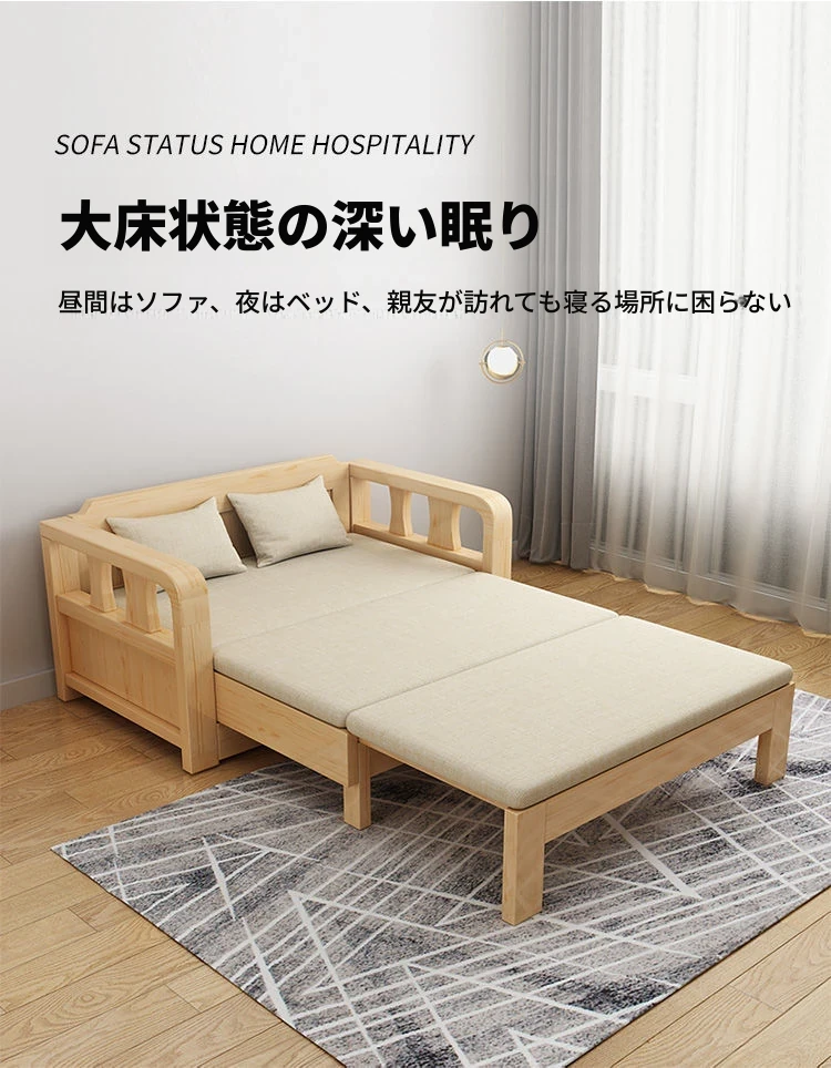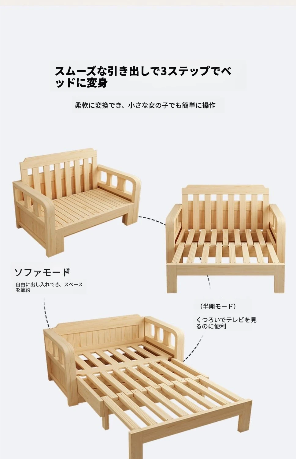 実木製ソファベッド|コンパクトな一人用|座る・寝る両方に対応|引き出し式で簡単収納|多機能折りたたみ伸縮ベッド|小さなお部屋にもぴったり!