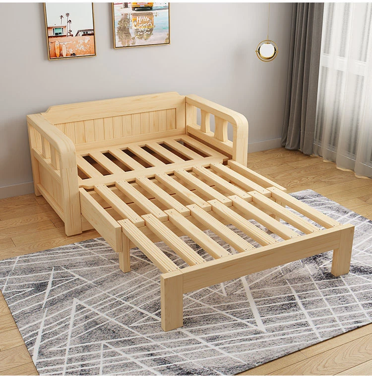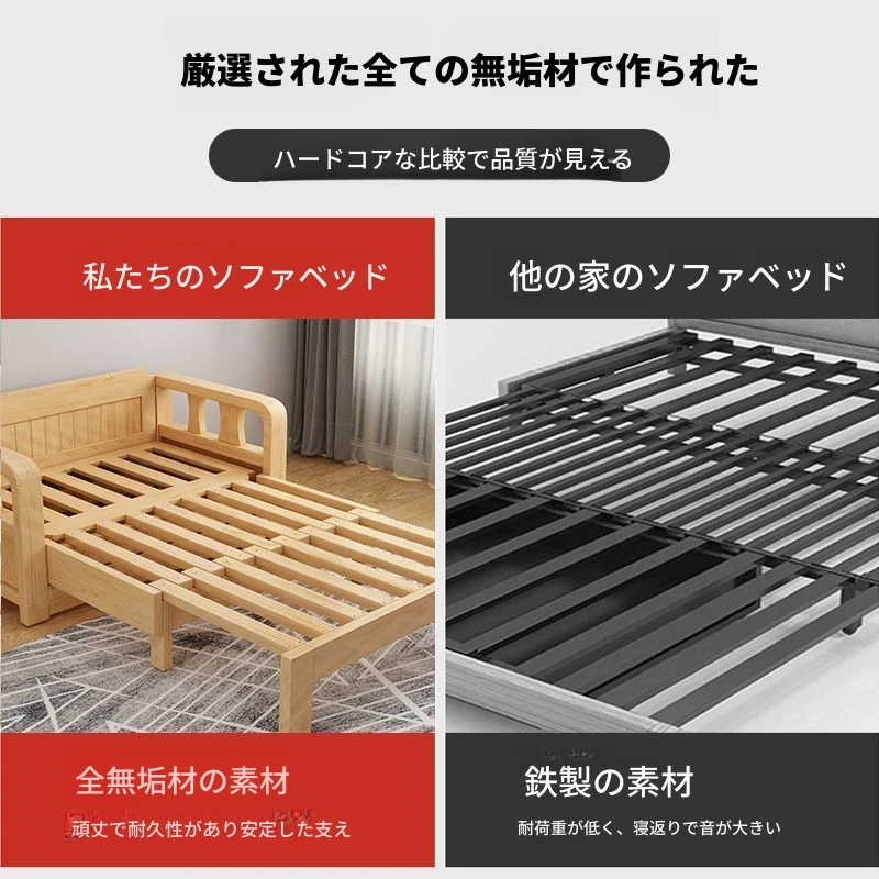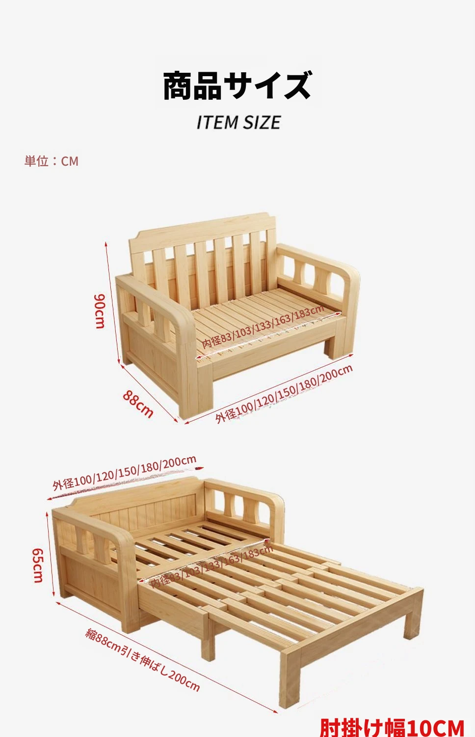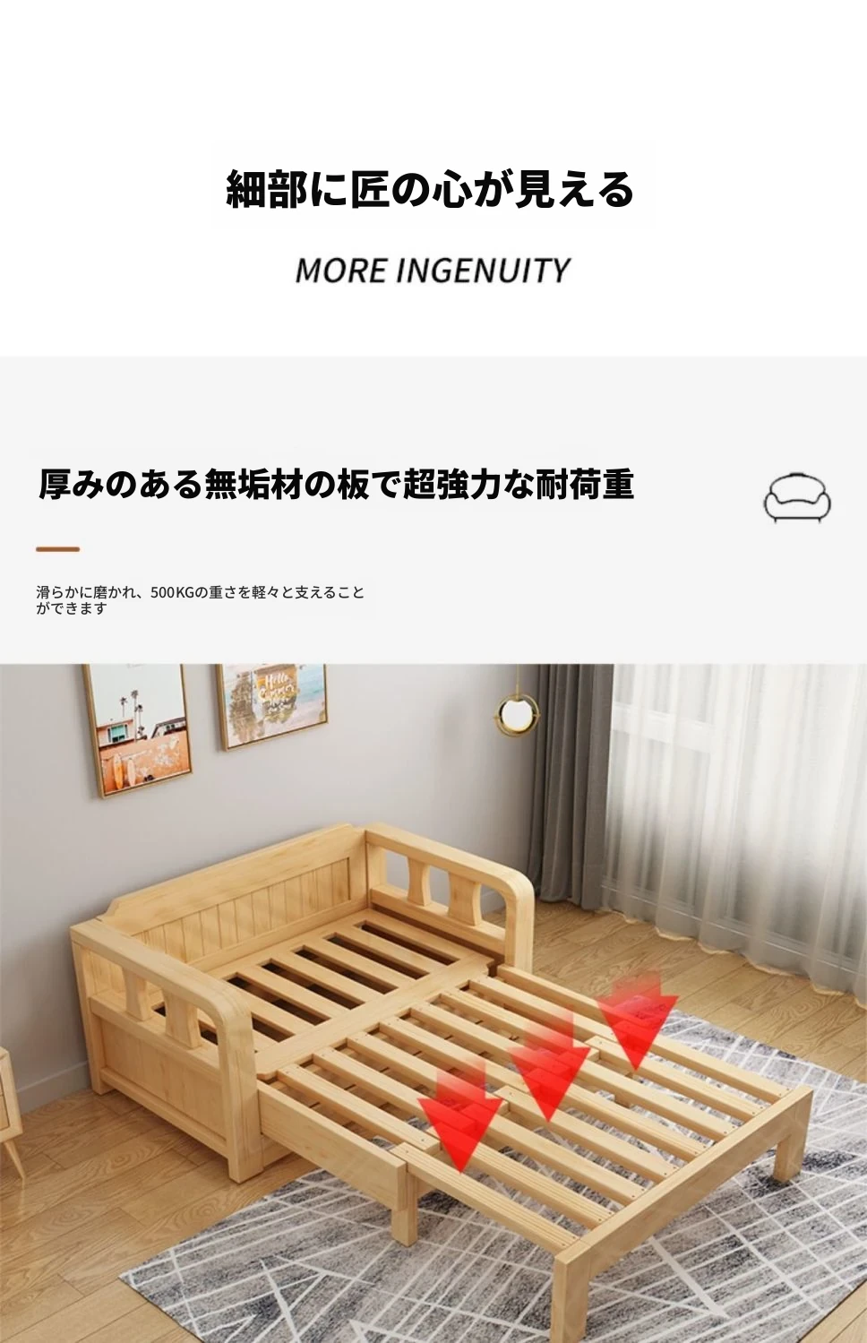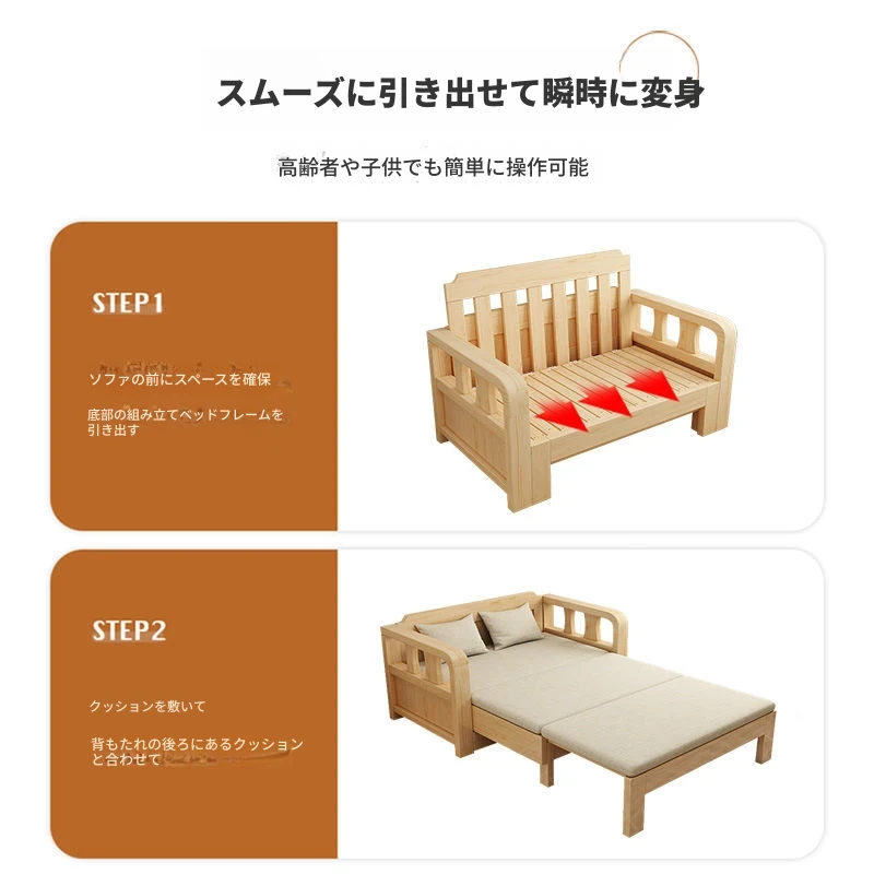 実木製ソファベッド|コンパクトな一人用|座る・寝る両方に対応|引き出し式で簡単収納|多機能折りたたみ伸縮ベッド|小さなお部屋にもぴったり!