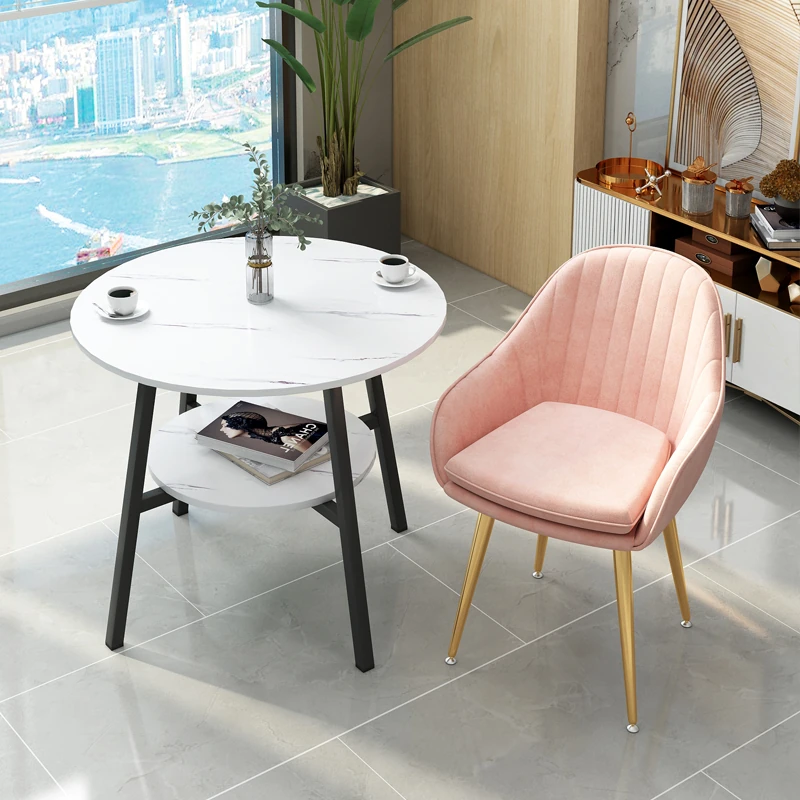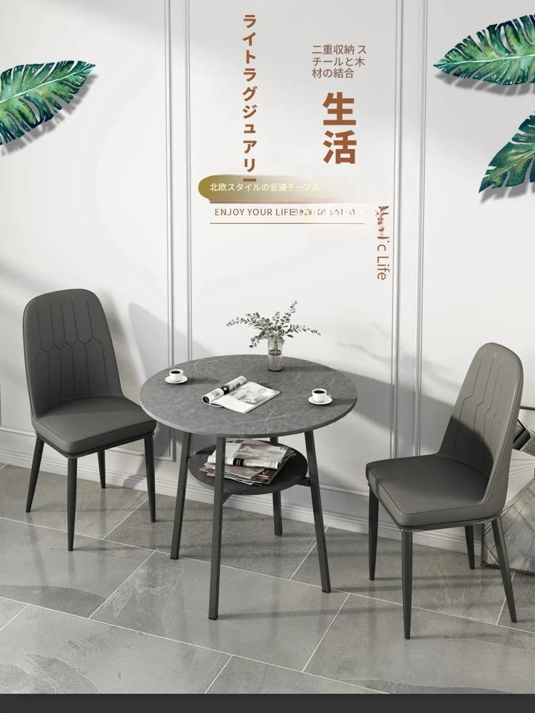 北欧風の洽談椅子とダブルレイヤーのリラックスコーヒーテーブルセット - ビジネスミーティングに最適な軽やかなラグジュアリー、人気のバルコニーにぴったり!