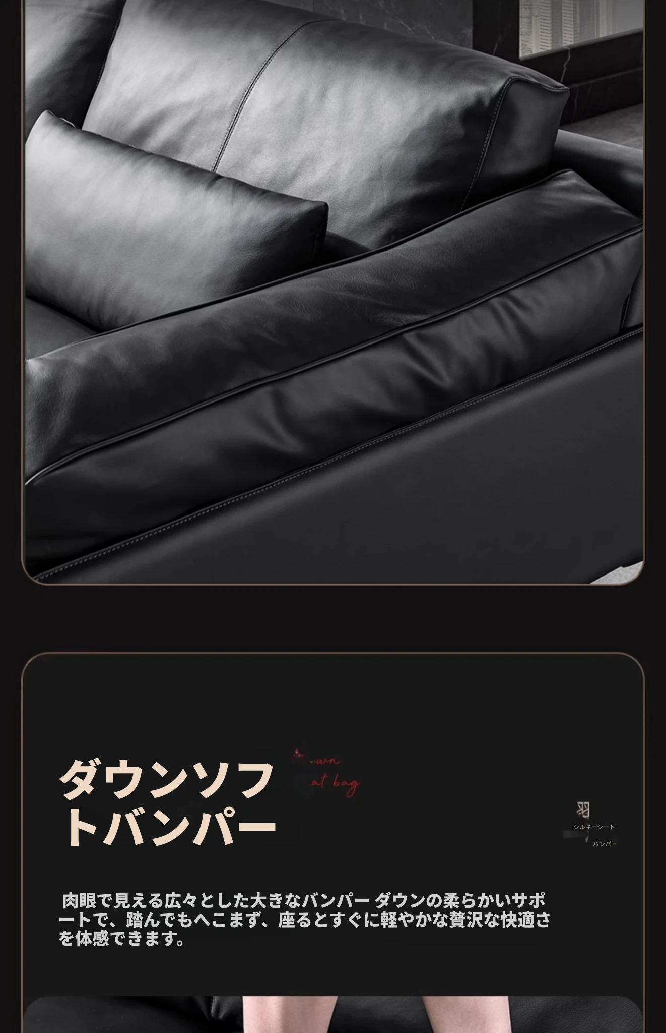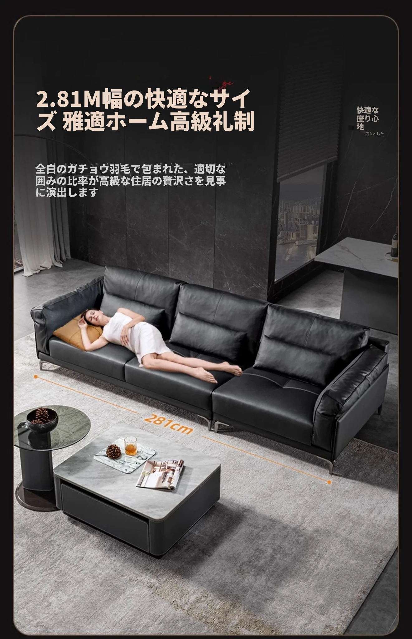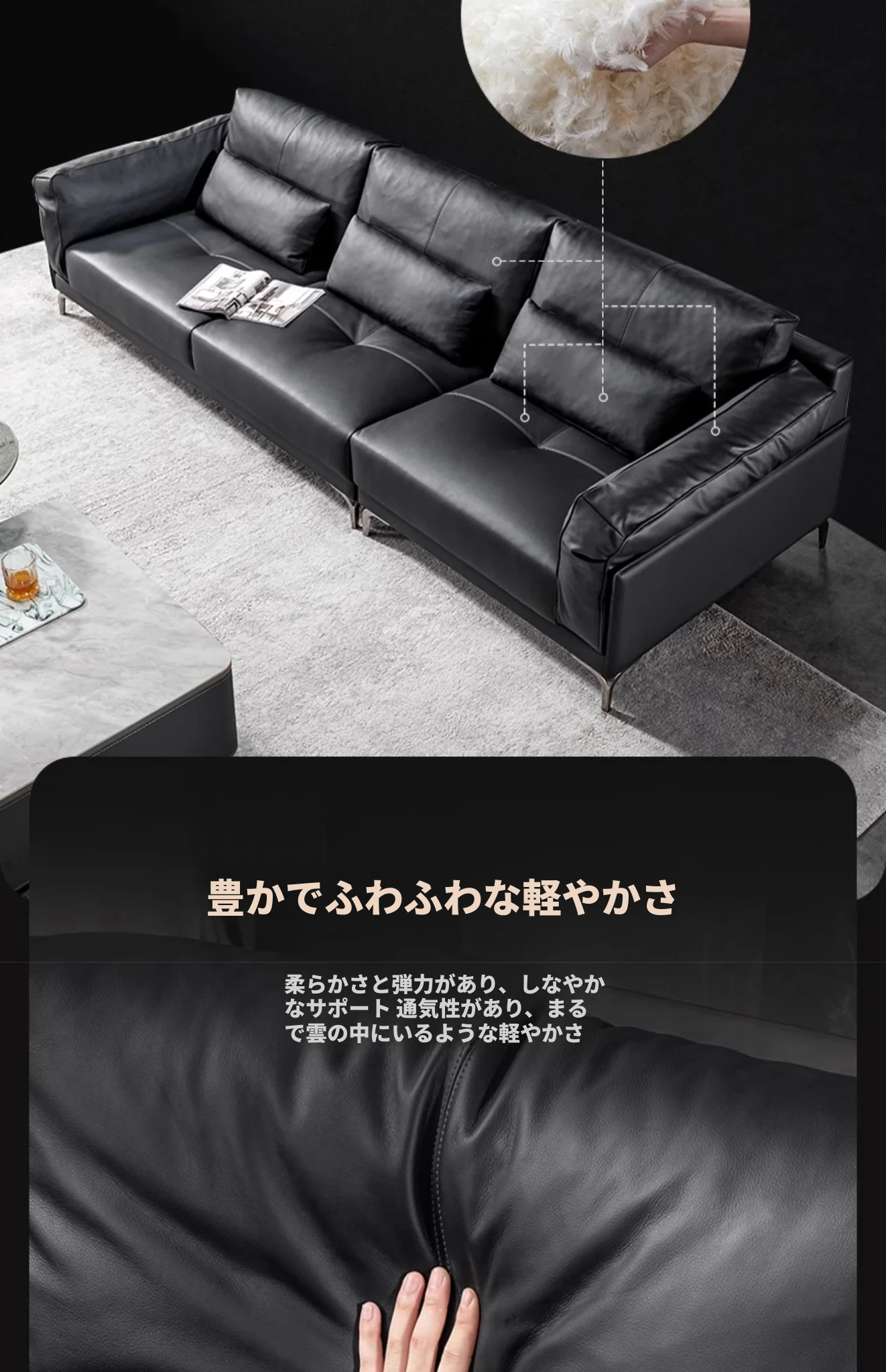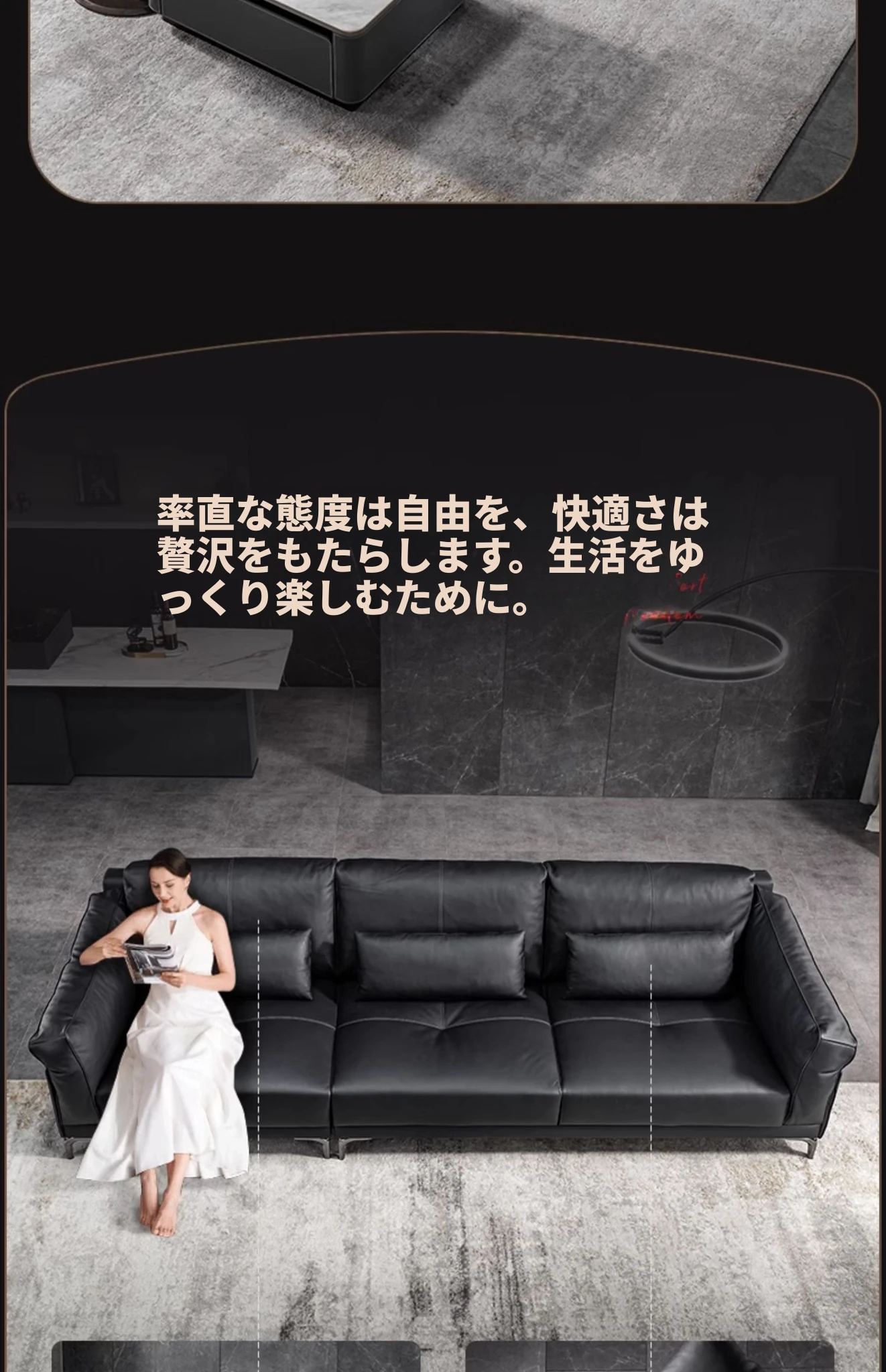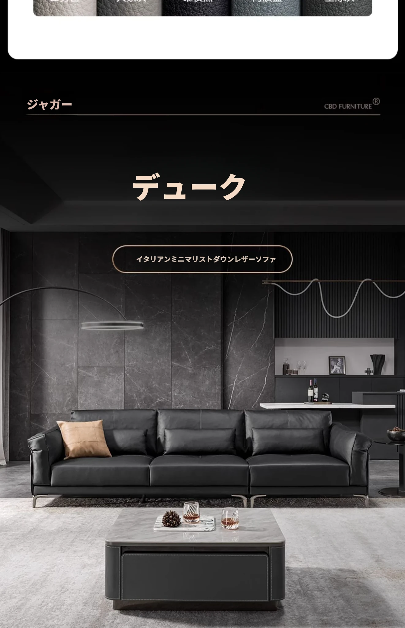 CBD高級本革ソファ|イタリアンミニマリズムの大空間用リビング直置きソファ|トップグレード牛革使用、デザイン性と快適性を両立したデュークシリーズ!