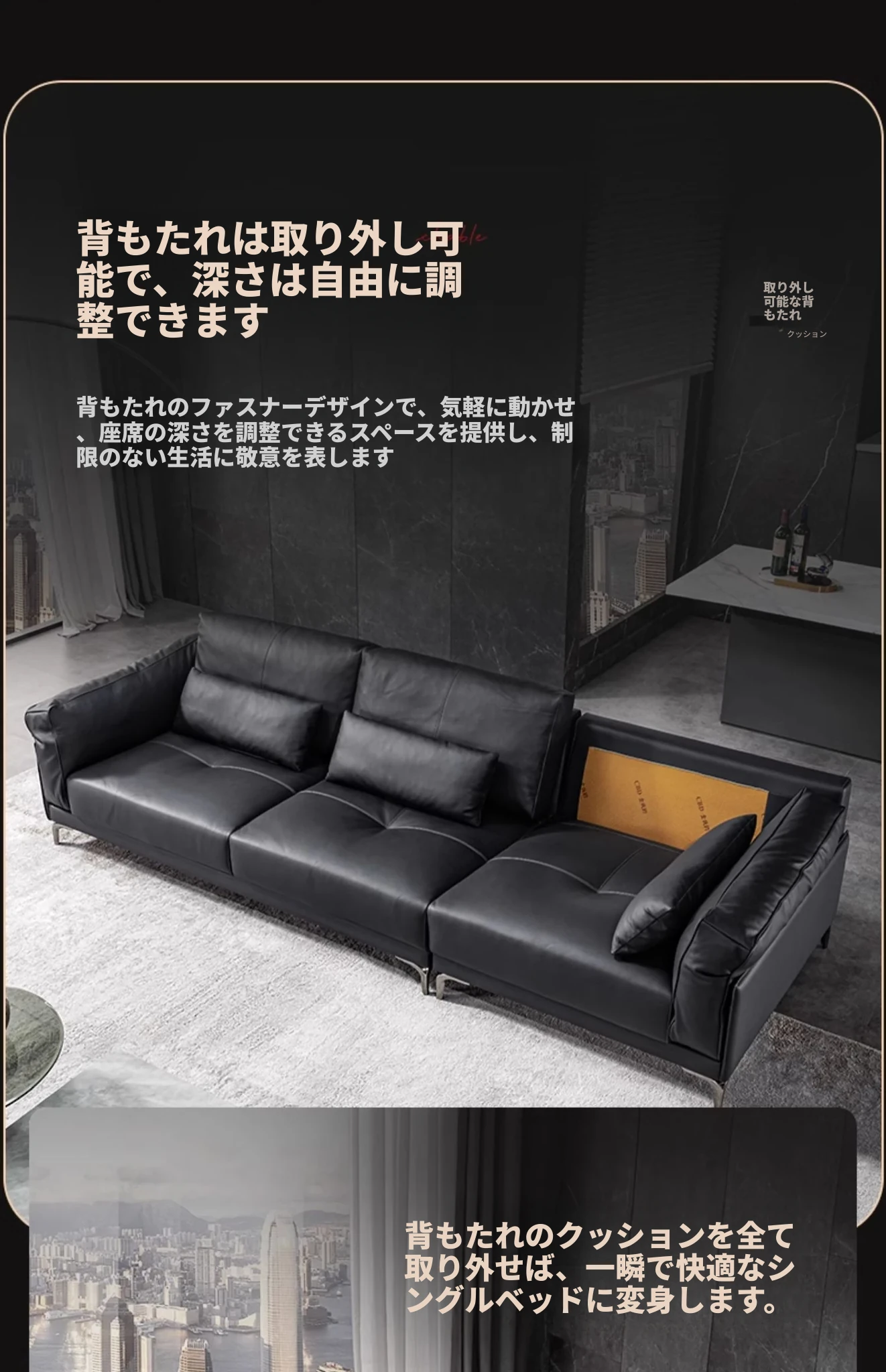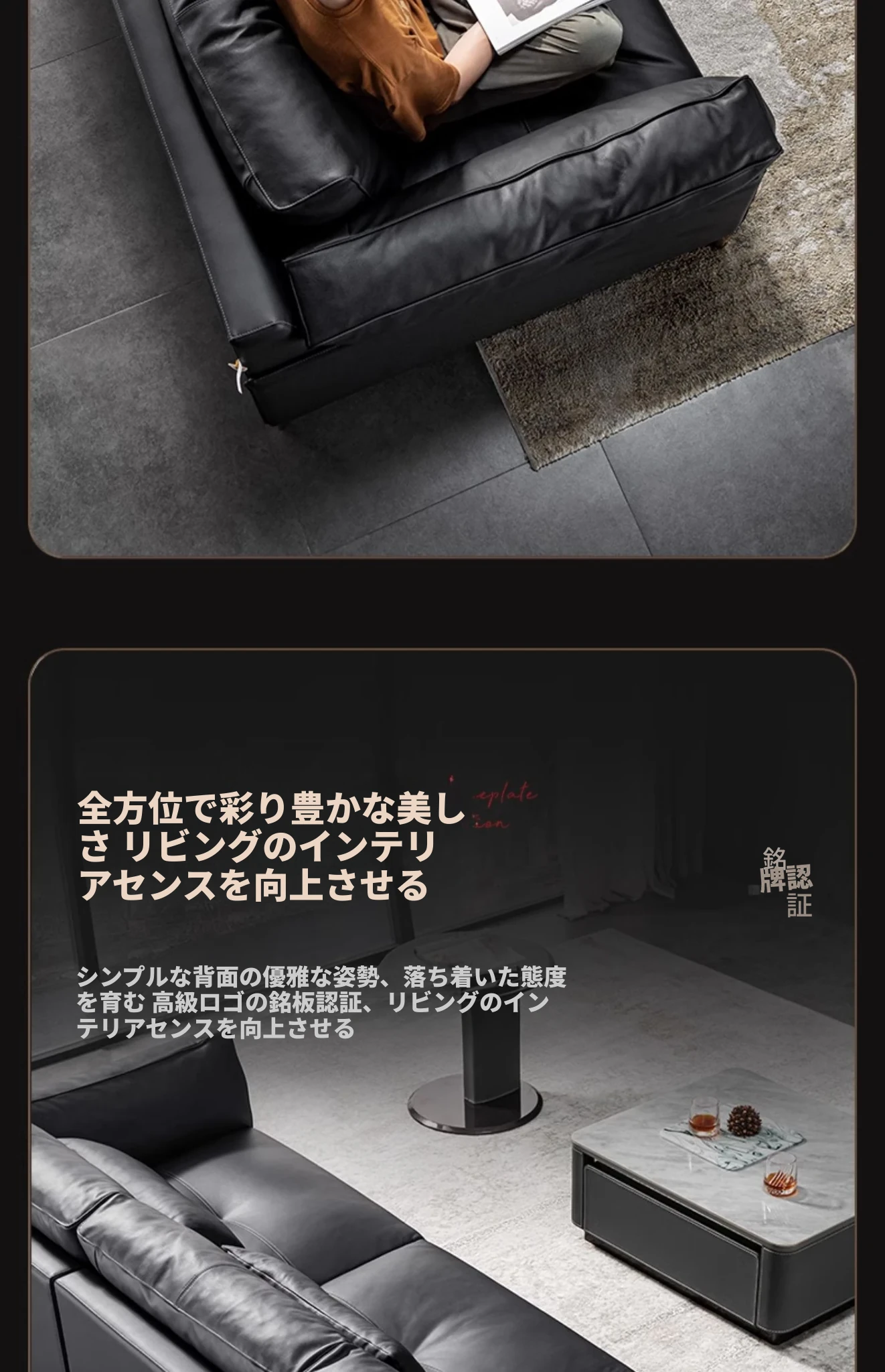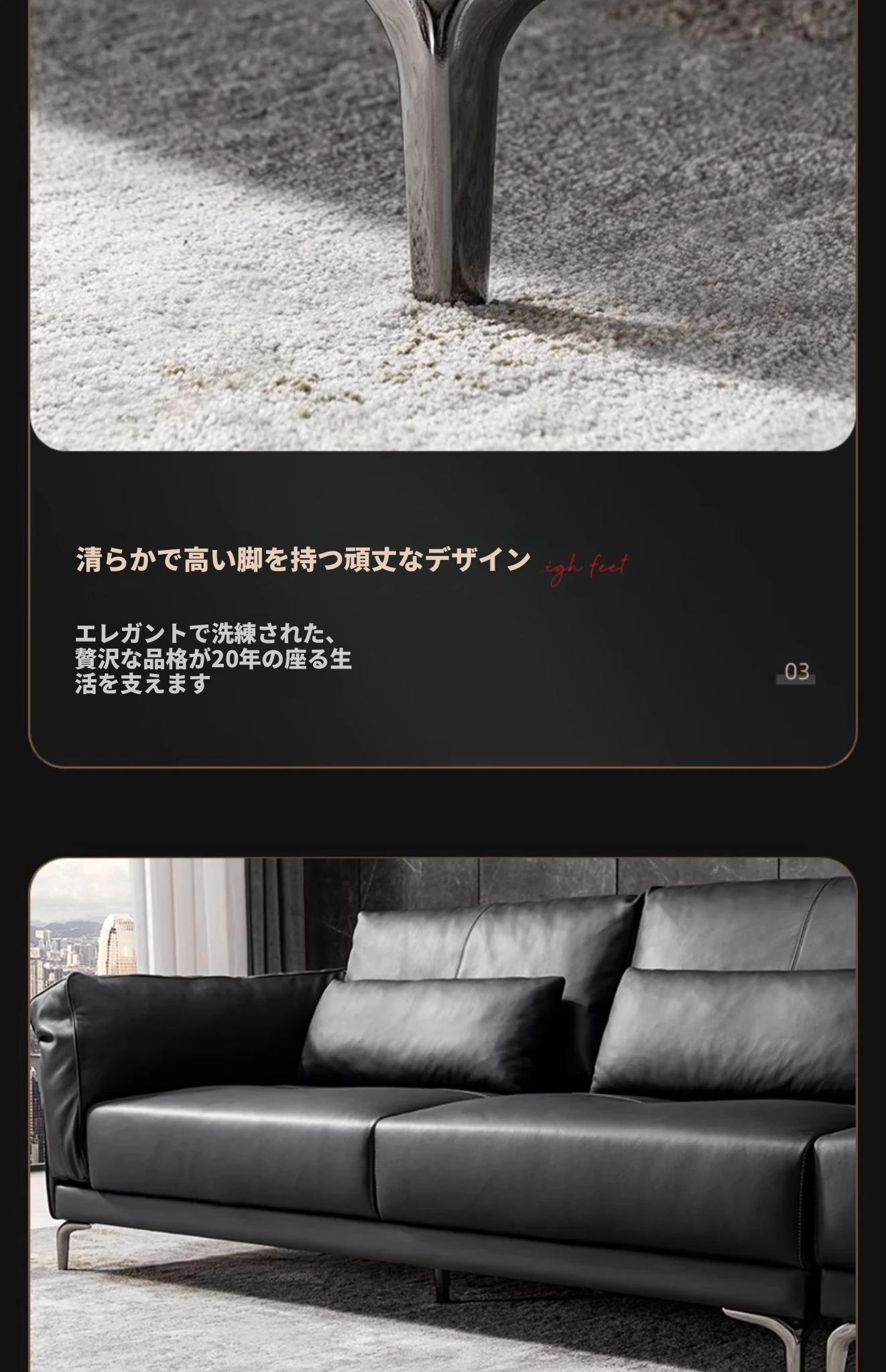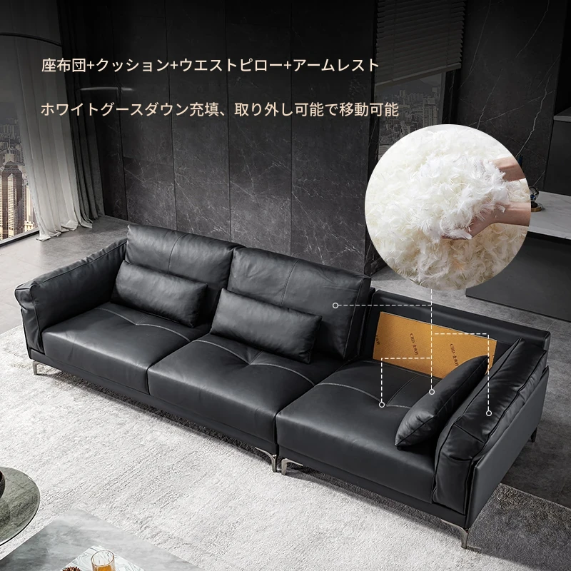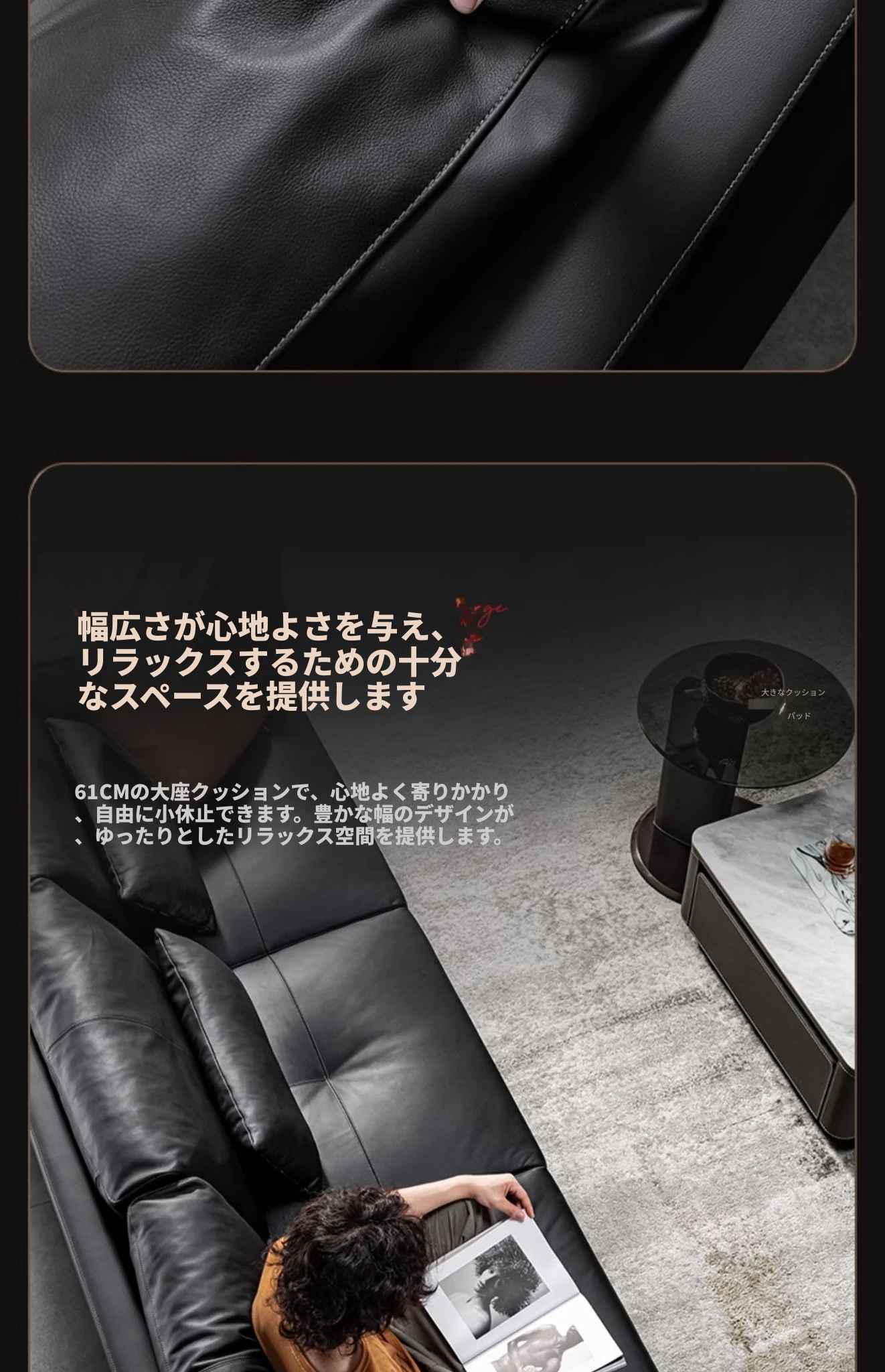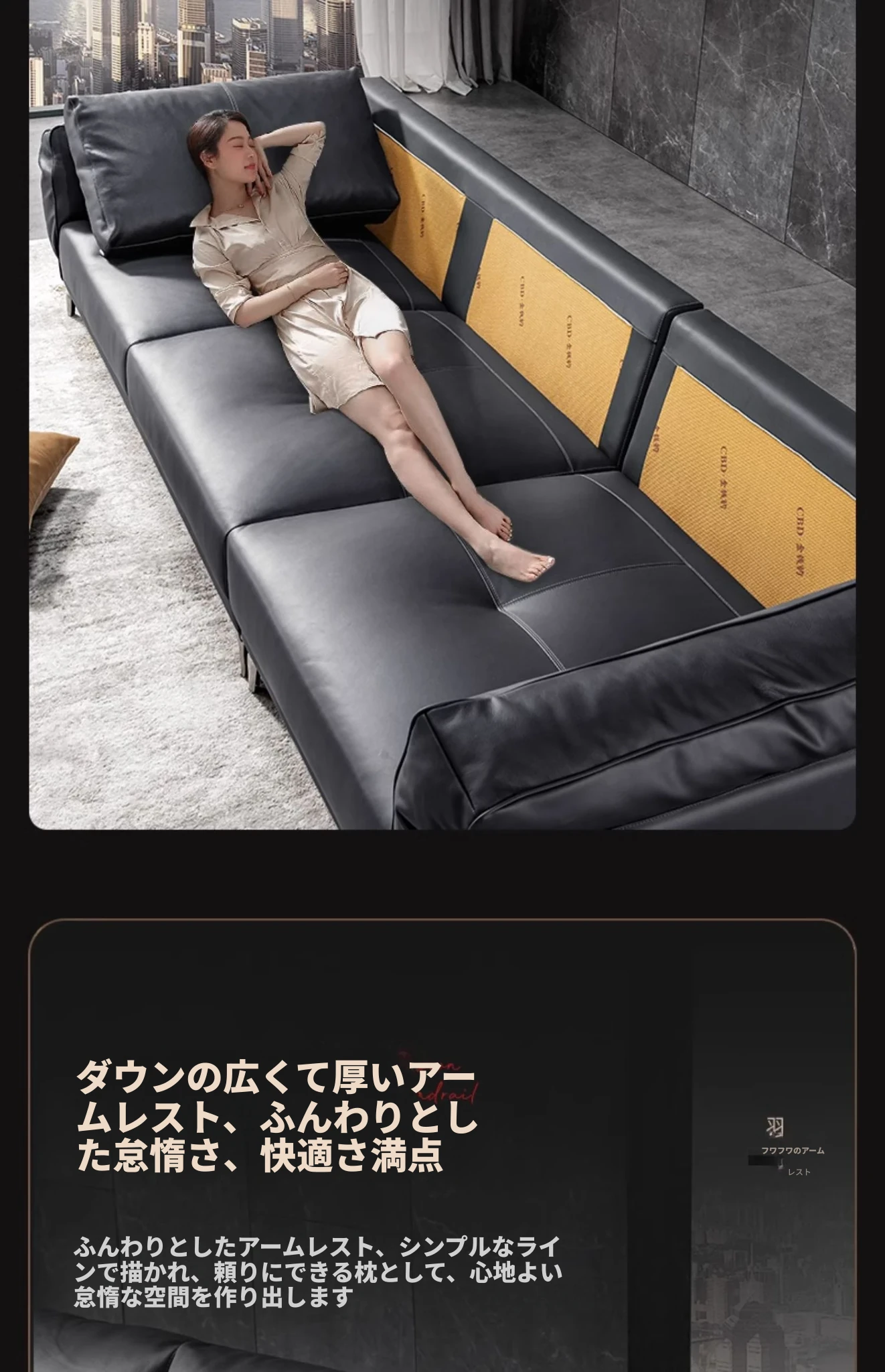 CBD高級本革ソファ|イタリアンミニマリズムの大空間用リビング直置きソファ|トップグレード牛革使用、デザイン性と快適性を両立したデュークシリーズ!