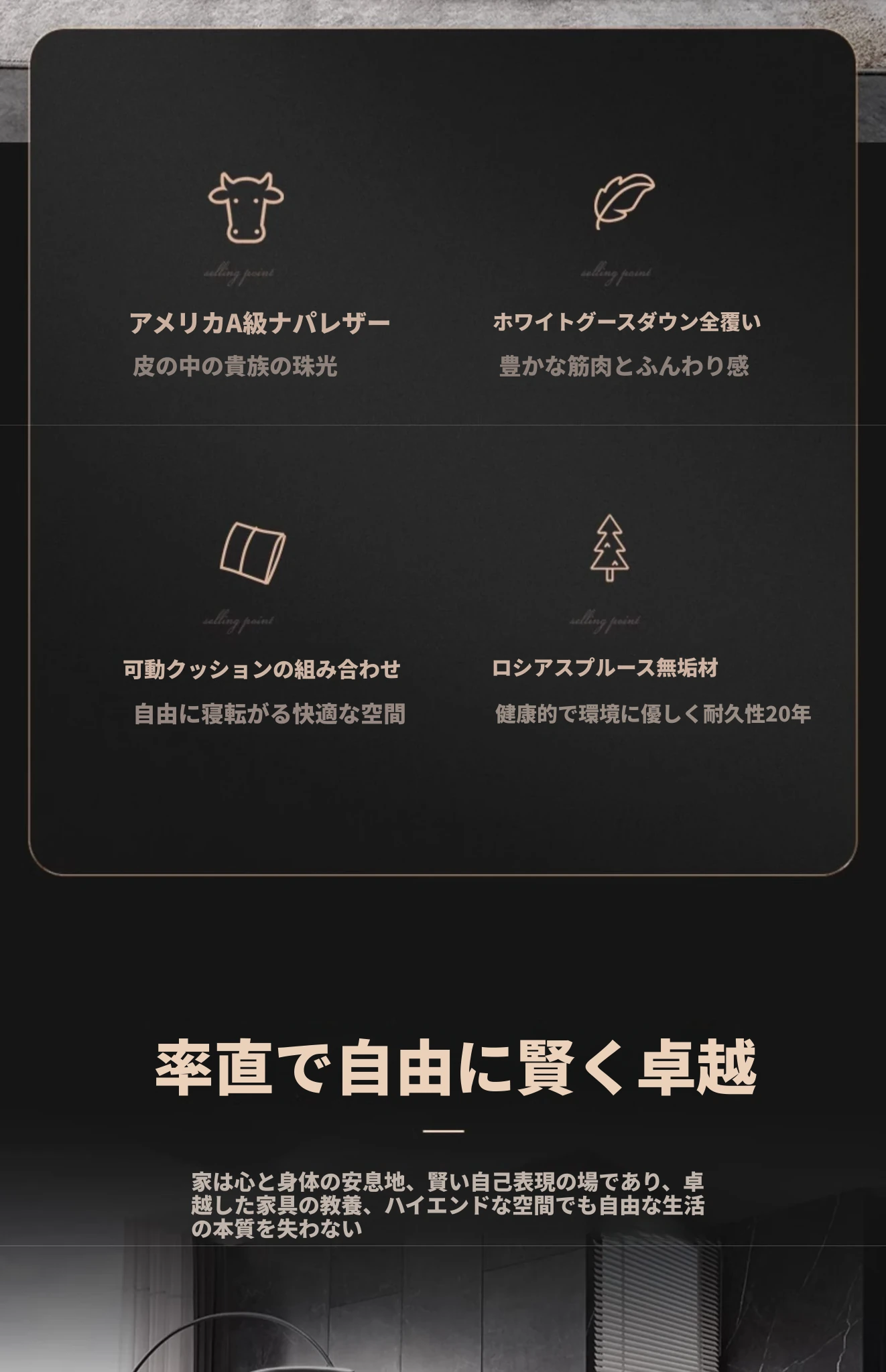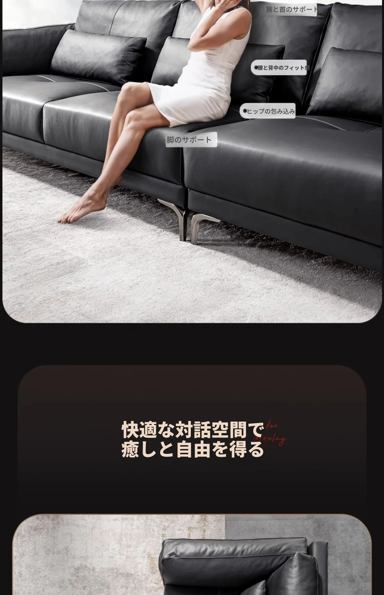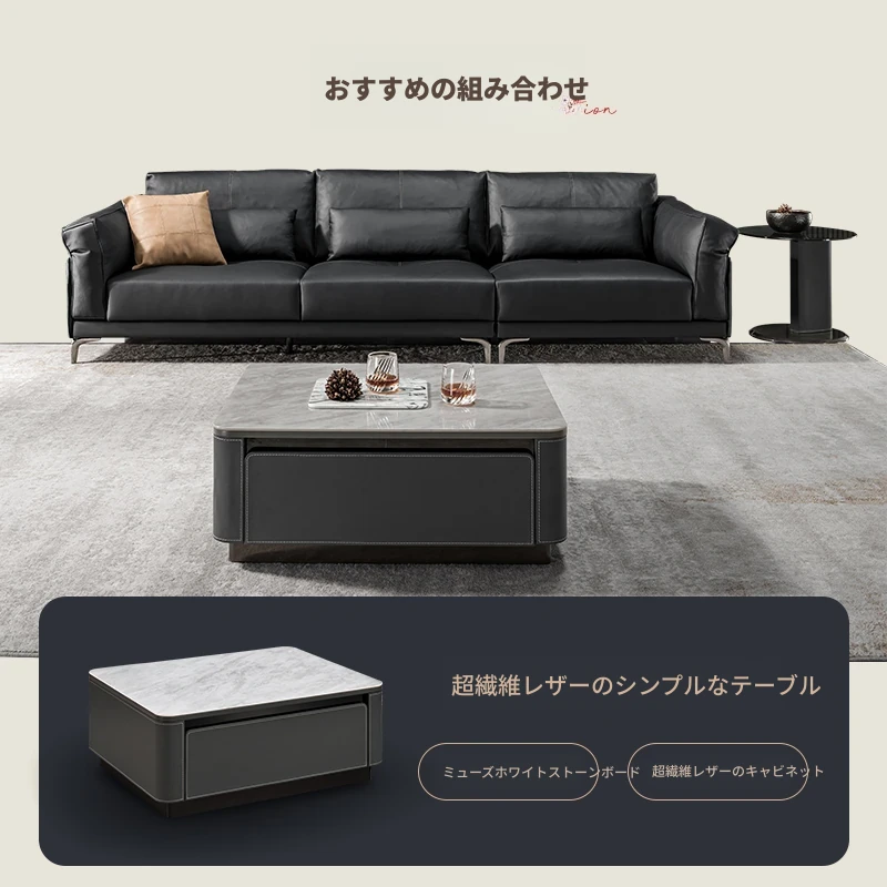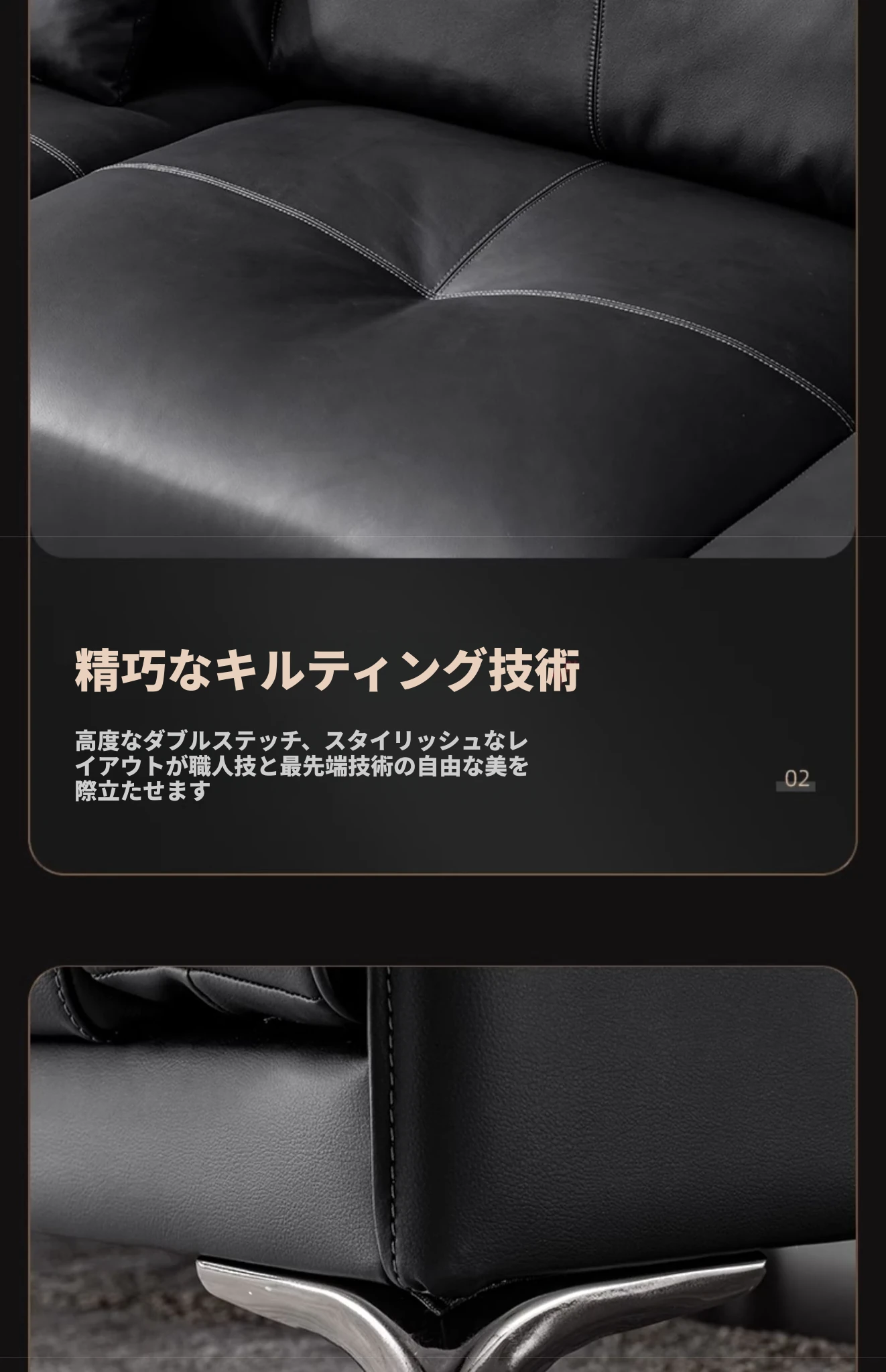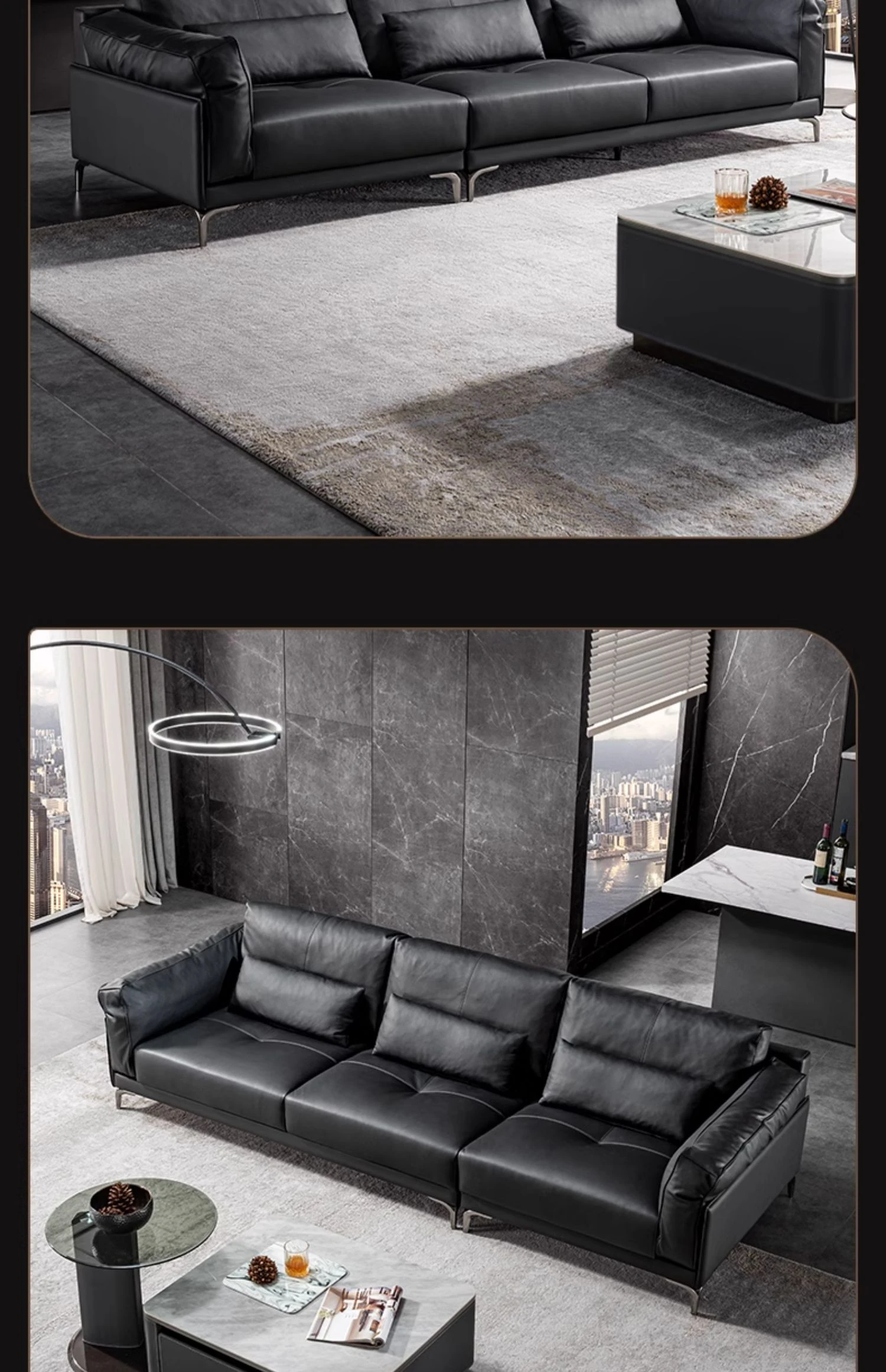 CBD高級本革ソファ|イタリアンミニマリズムの大空間用リビング直置きソファ|トップグレード牛革使用、デザイン性と快適性を両立したデュークシリーズ!