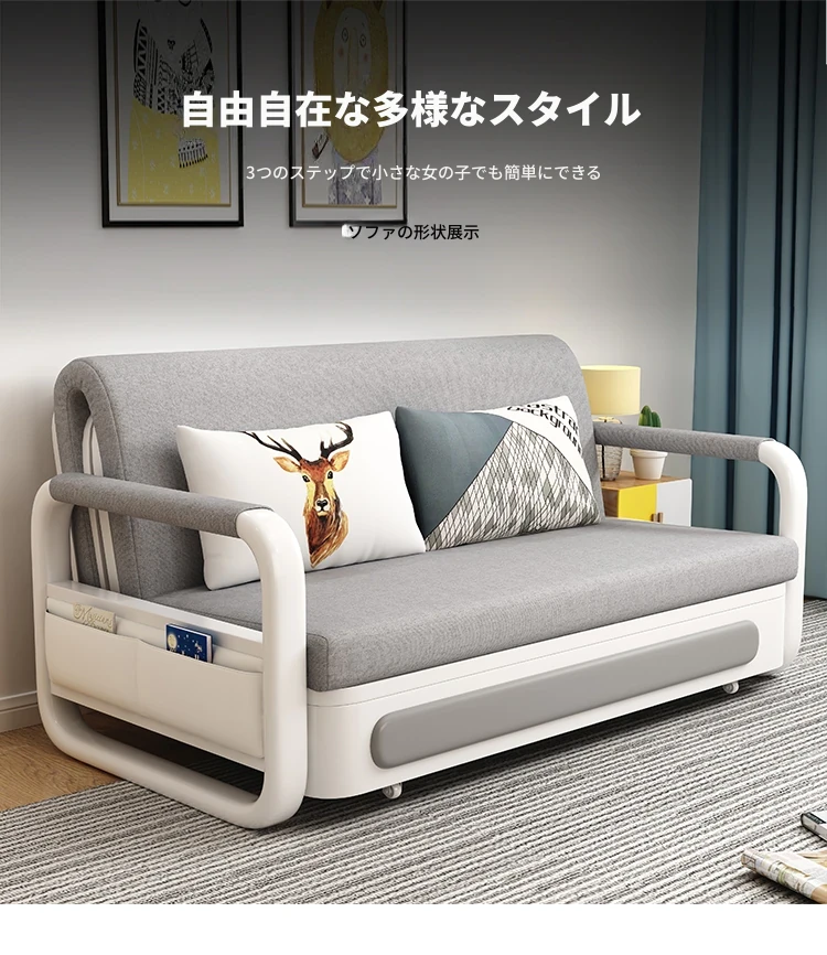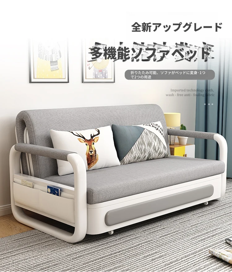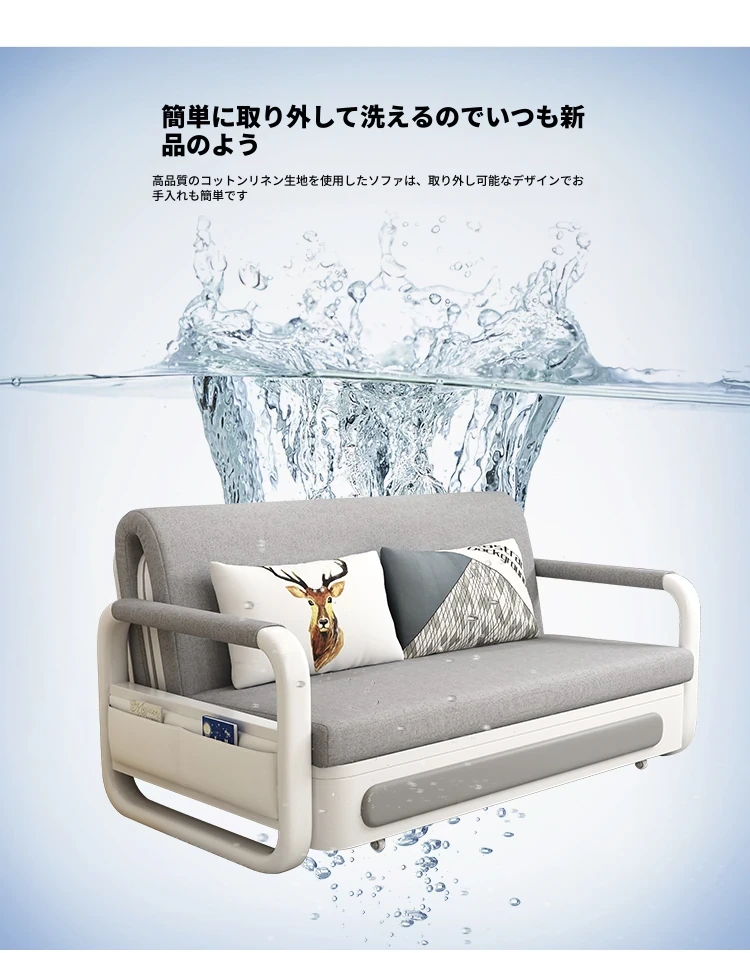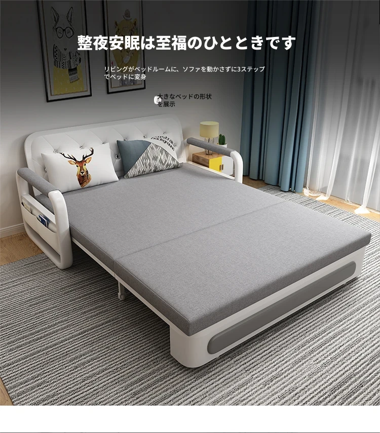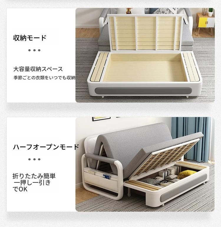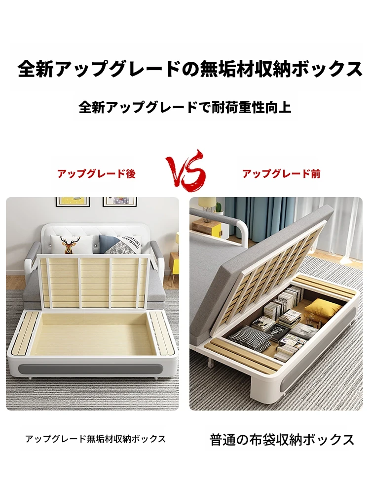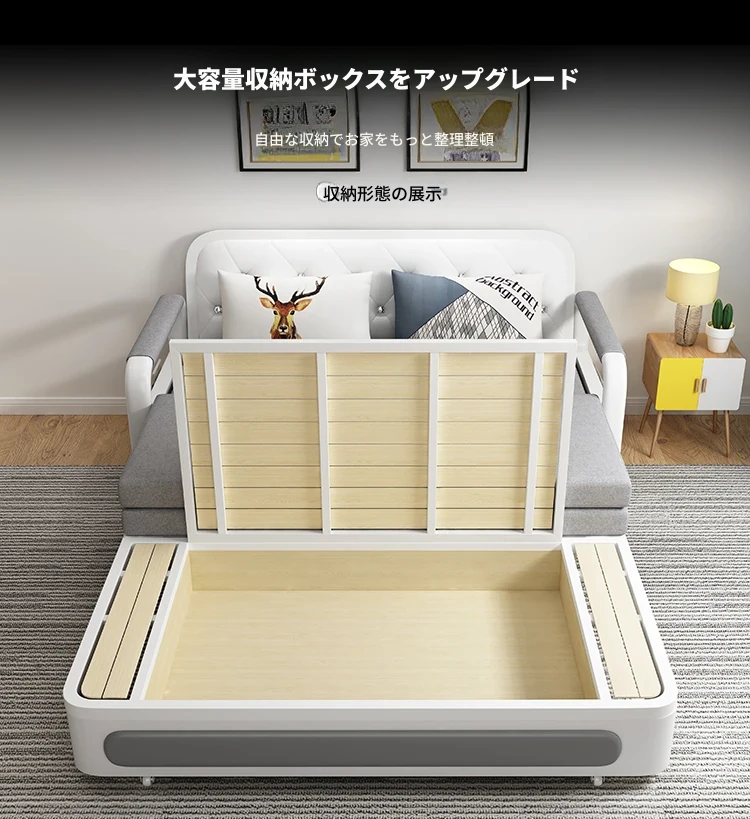 新作!多機能折りたたみソファベッド・アップグレード版 木製収納ボックス付き 一人用・二人用 小スペース対応のスライド式二用途ベッド