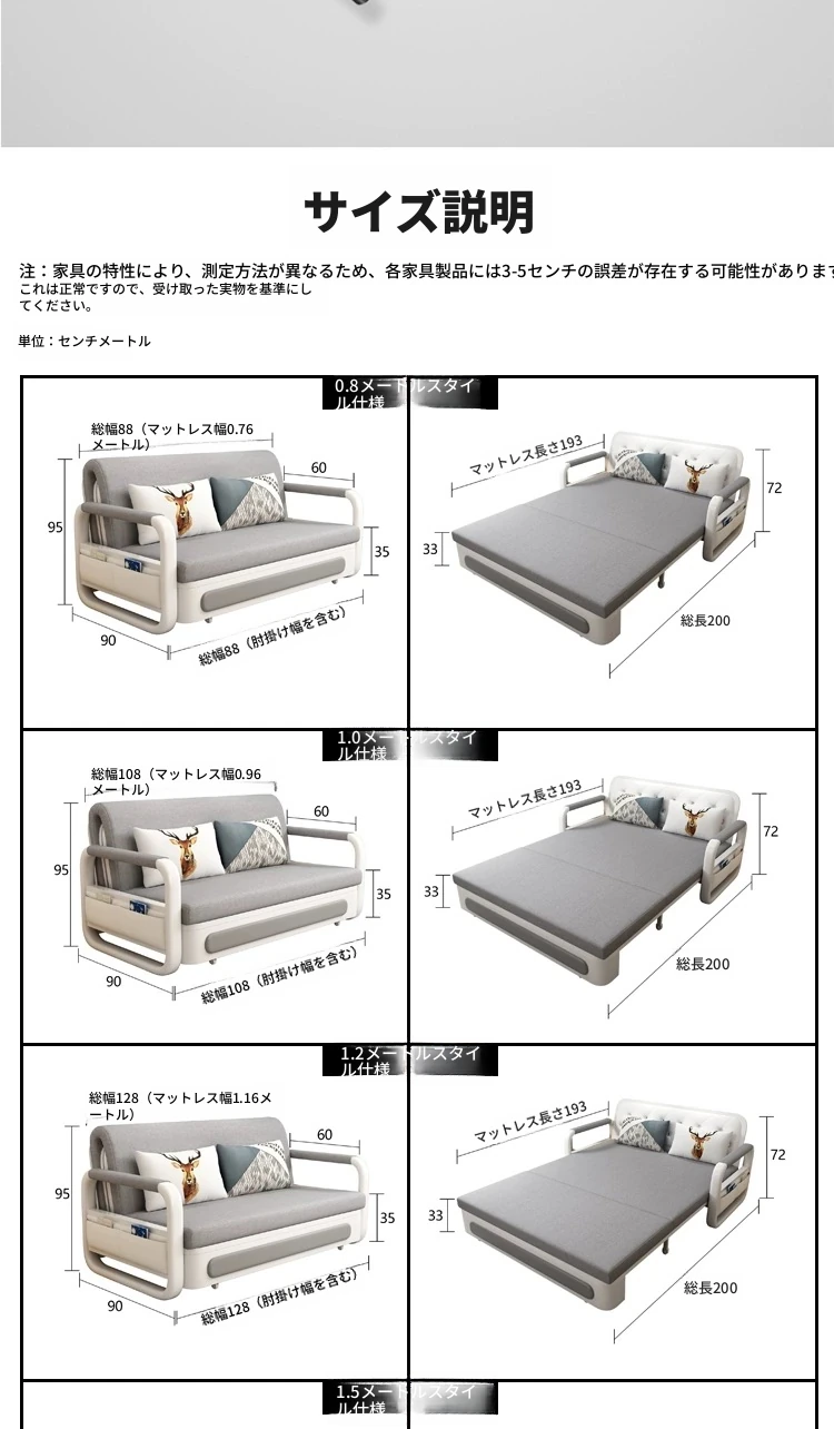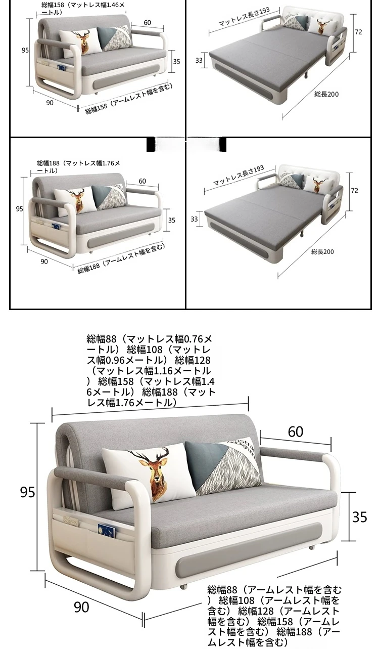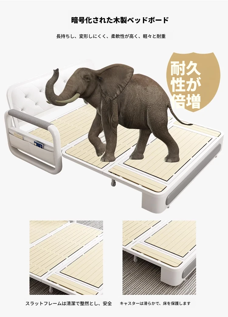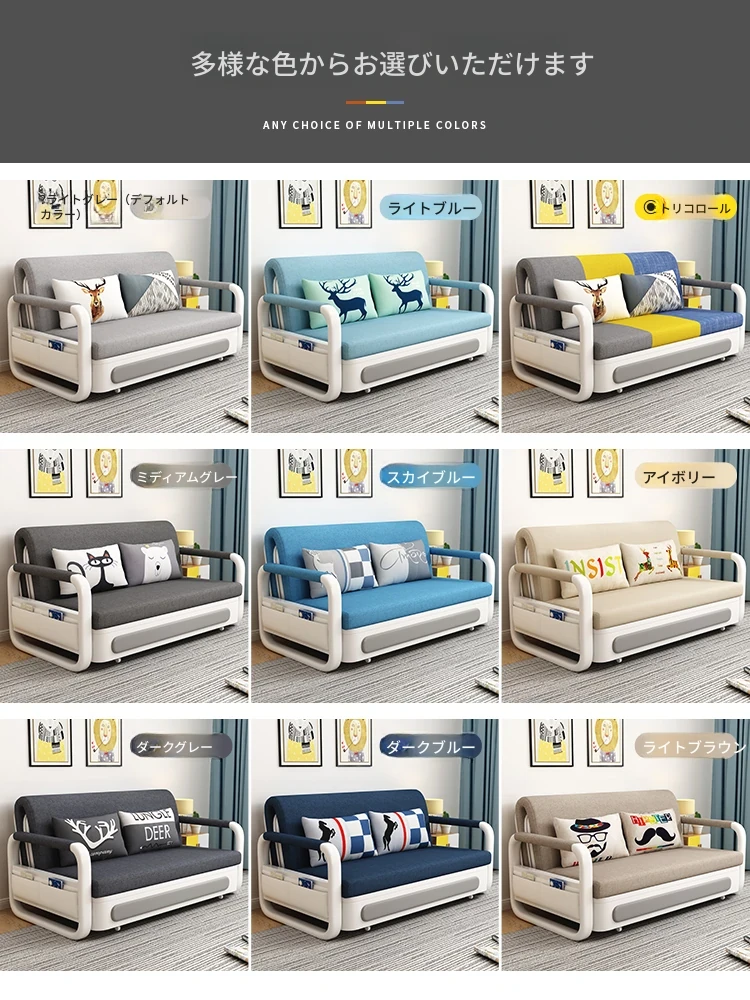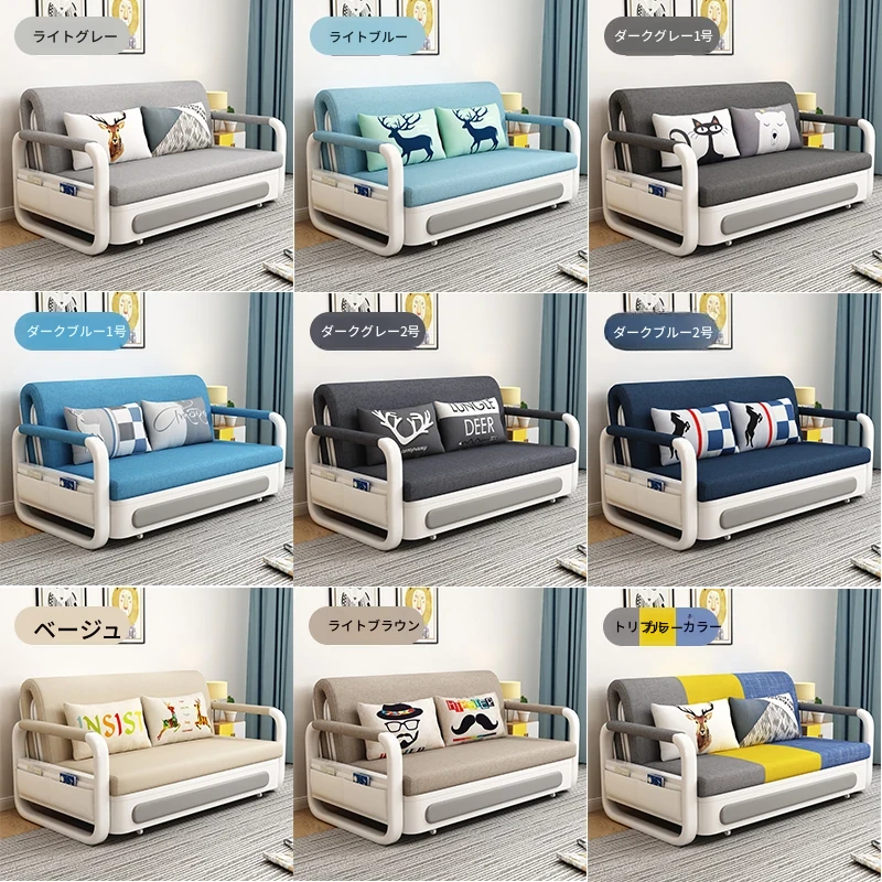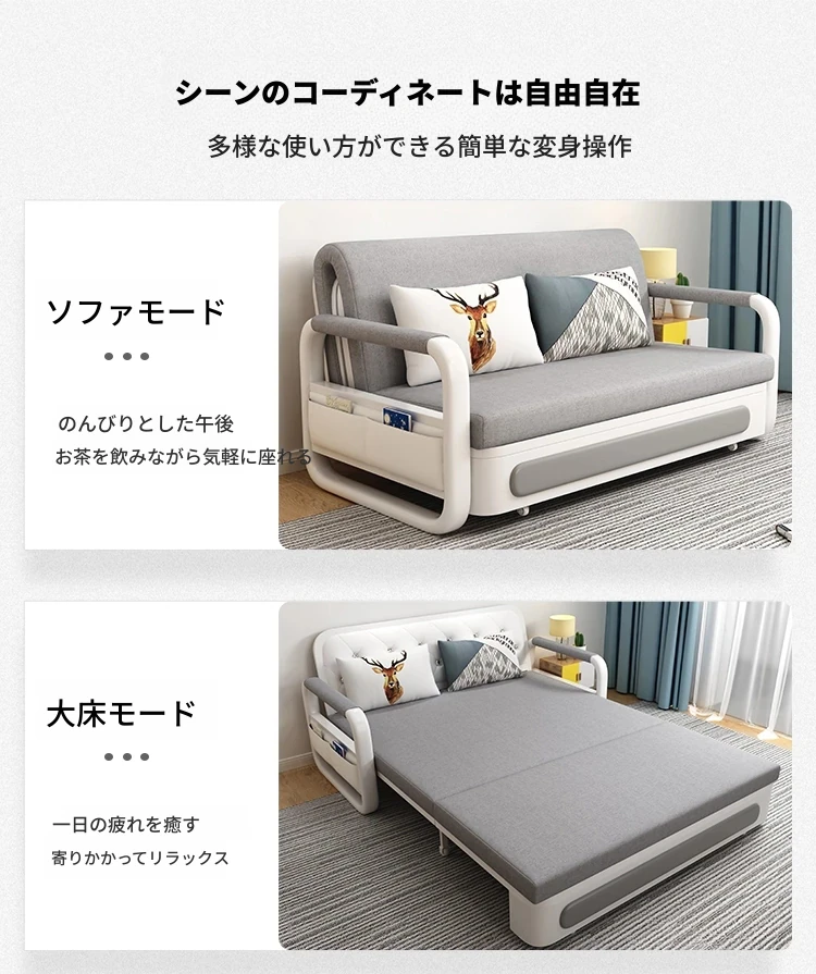 新作!多機能折りたたみソファベッド・アップグレード版 木製収納ボックス付き 一人用・二人用 小スペース対応のスライド式二用途ベッド