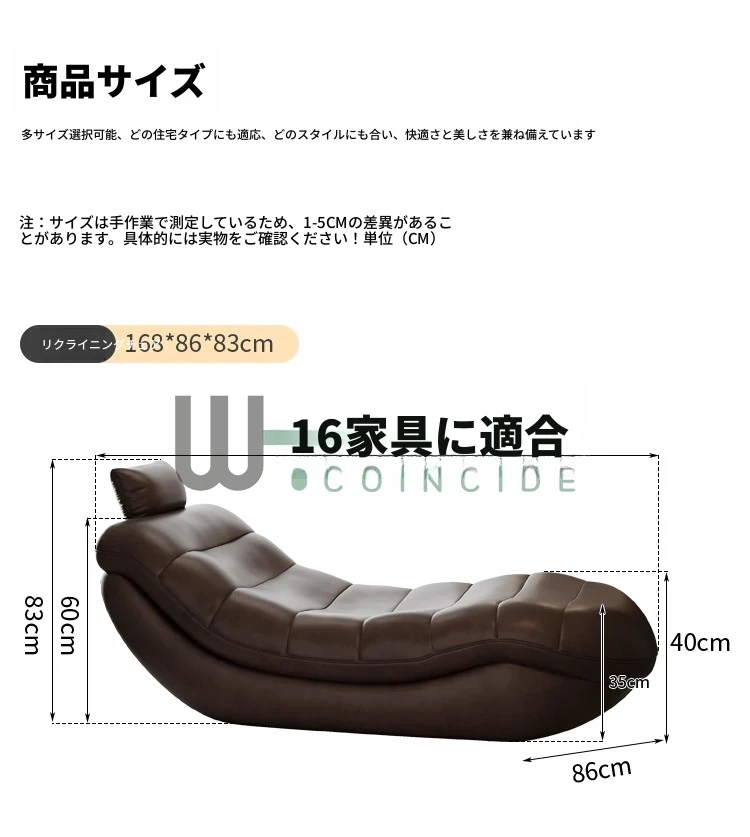 168x86cm●ココアブラウン【輸入厚手2.3mm・ピエール本革】